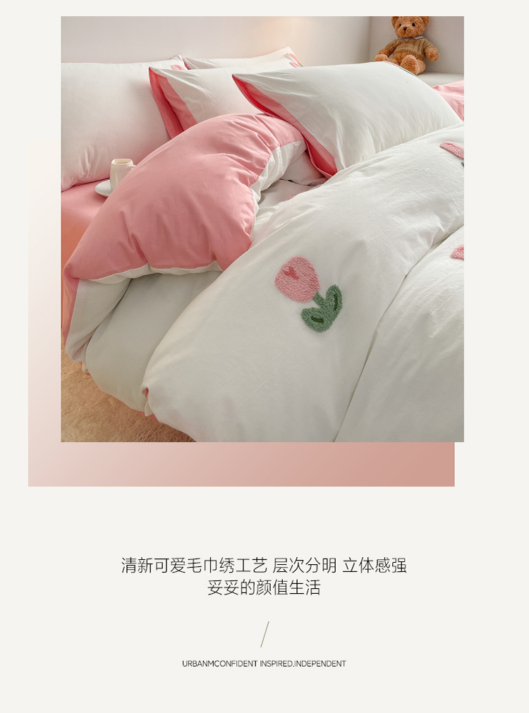 商品名称:雅居纺 2023新款全棉毛巾绣四件套 小红花