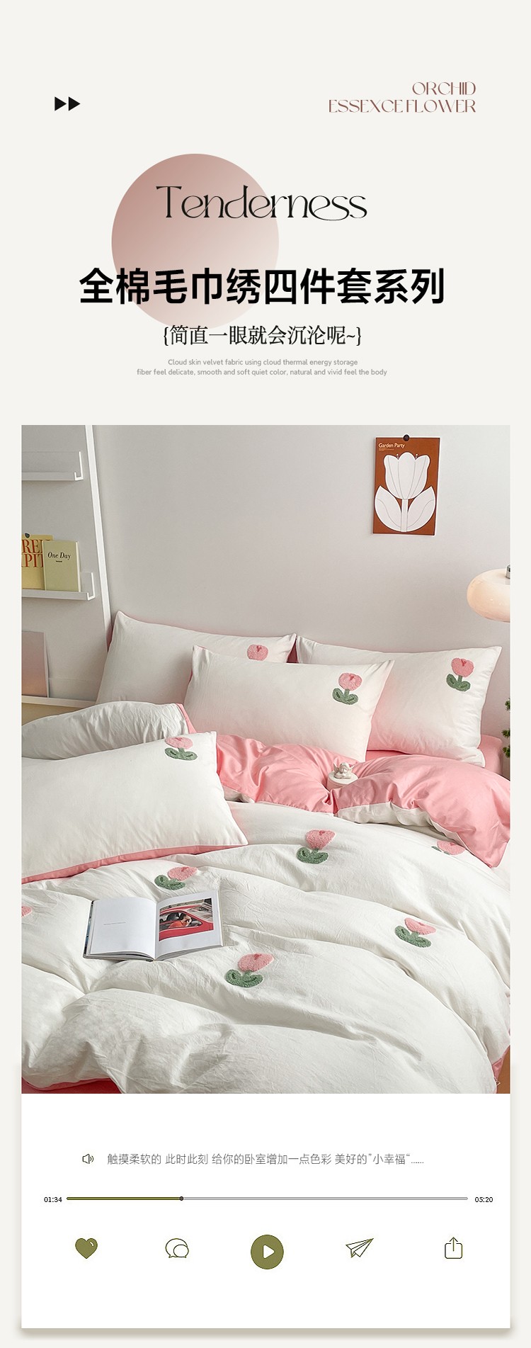 雅居纺 2023新款全棉毛巾绣四件套 小红花