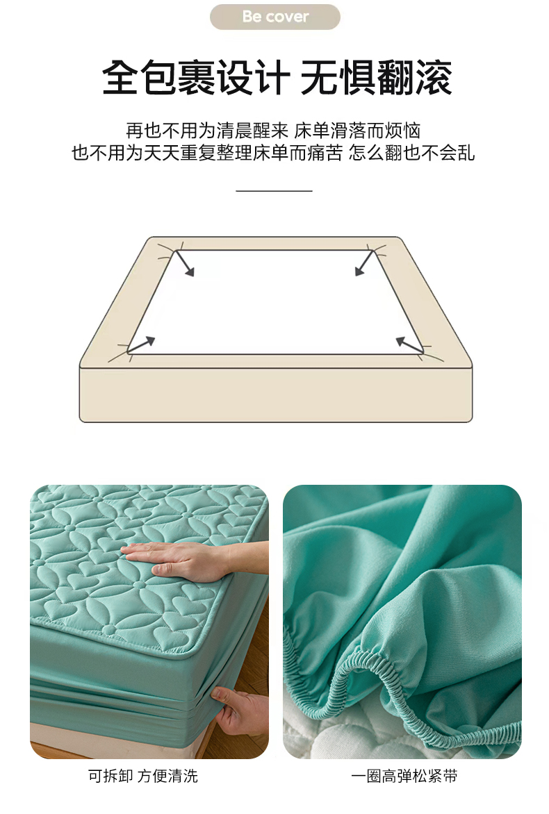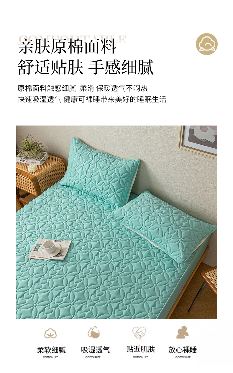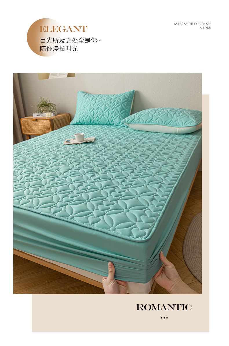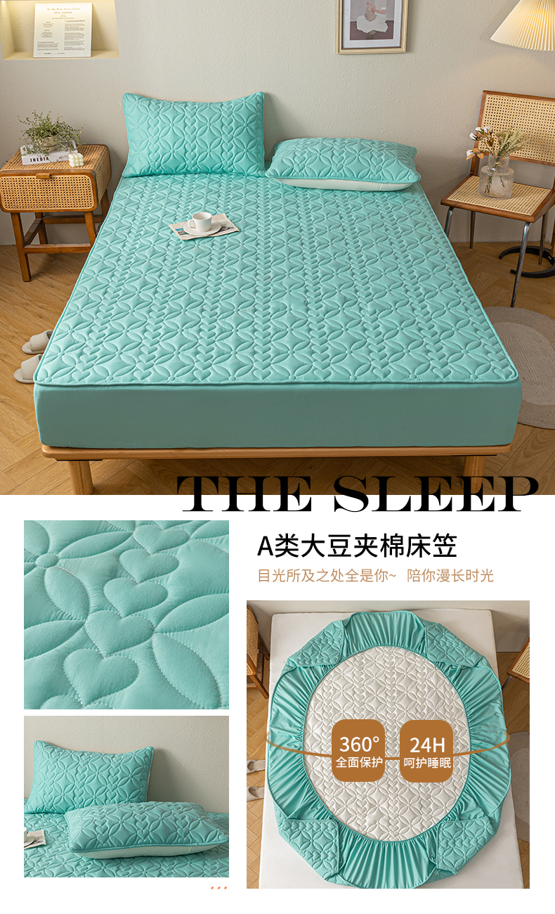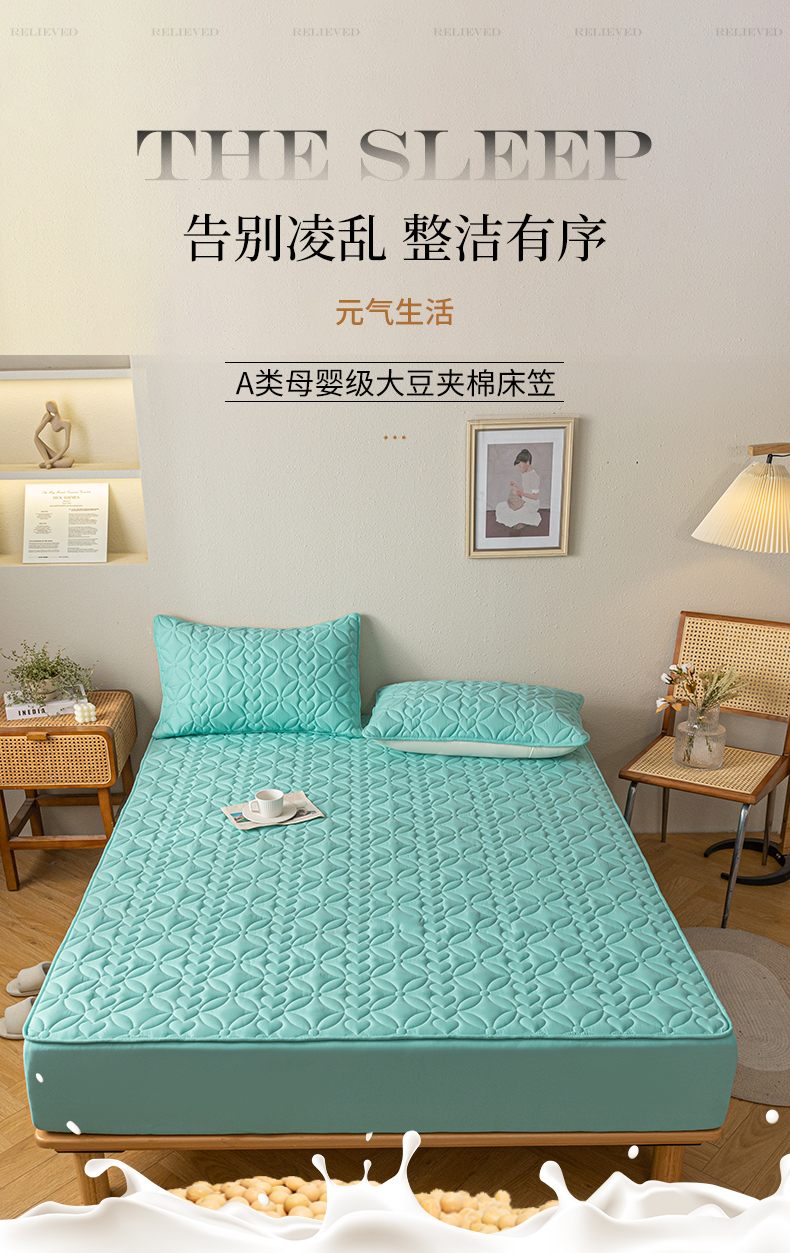 • 91家纺网 家纺一手货源 找家纺 鑫钰 2023新款A类母婴级大豆夹棉床笠 圆梦-薄荷绿