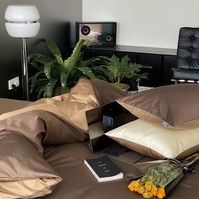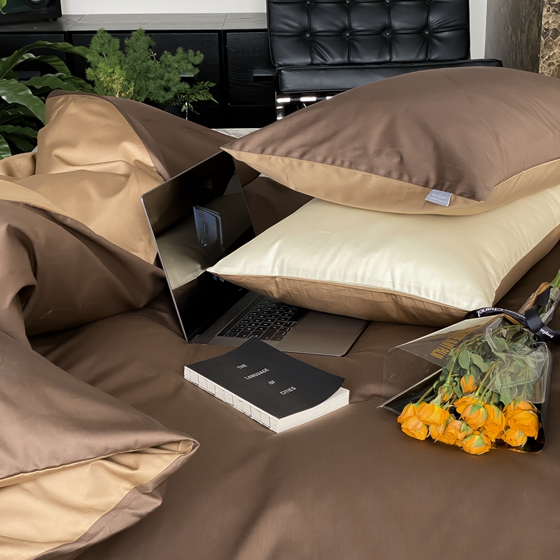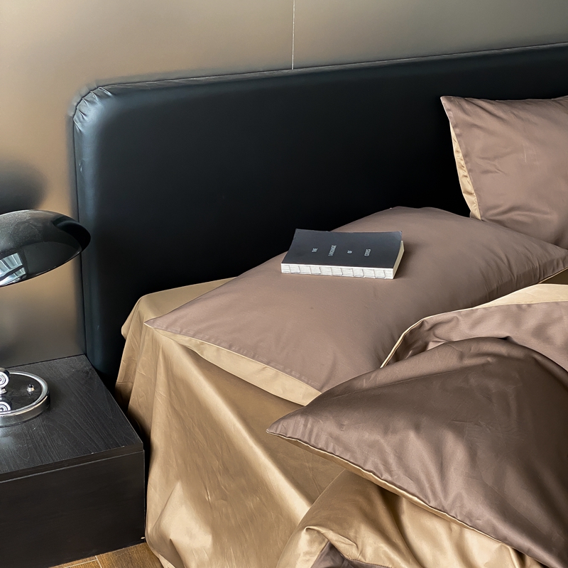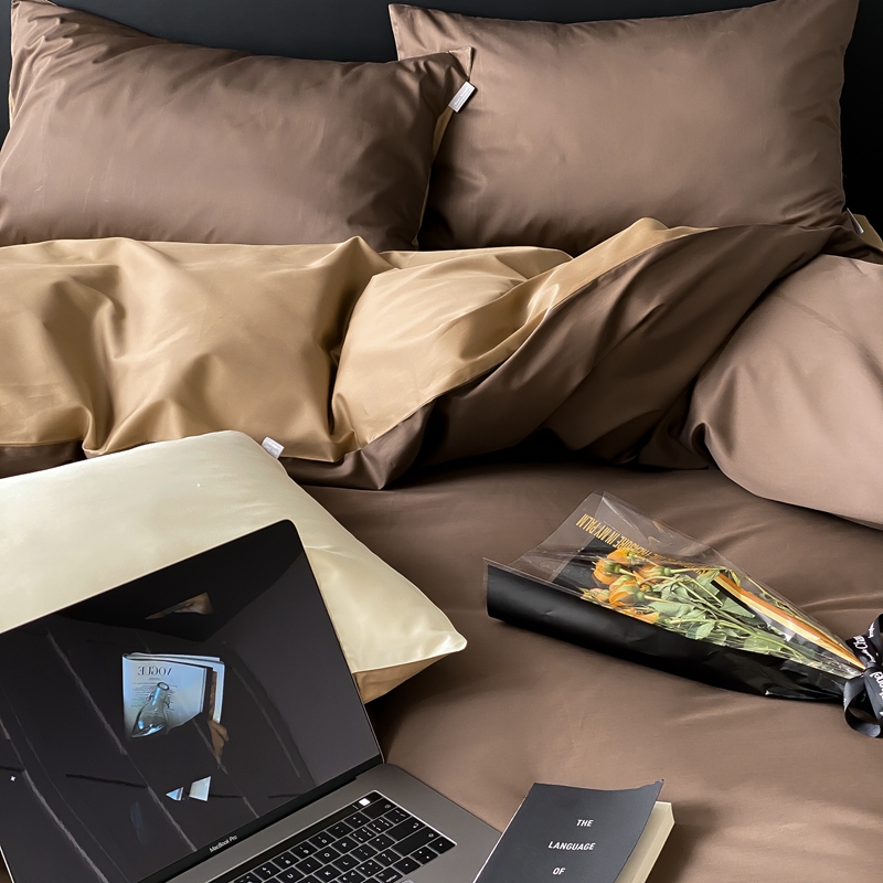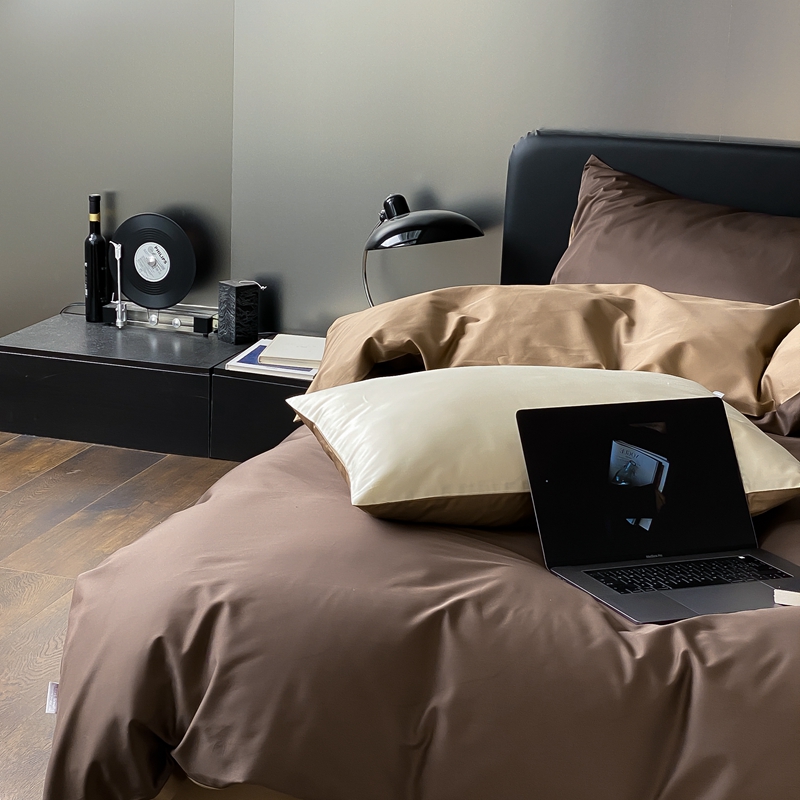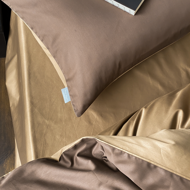 梦享生活家居 2023新款100支长绒棉贡缎双拼四件套 摩卡棕