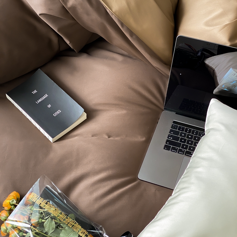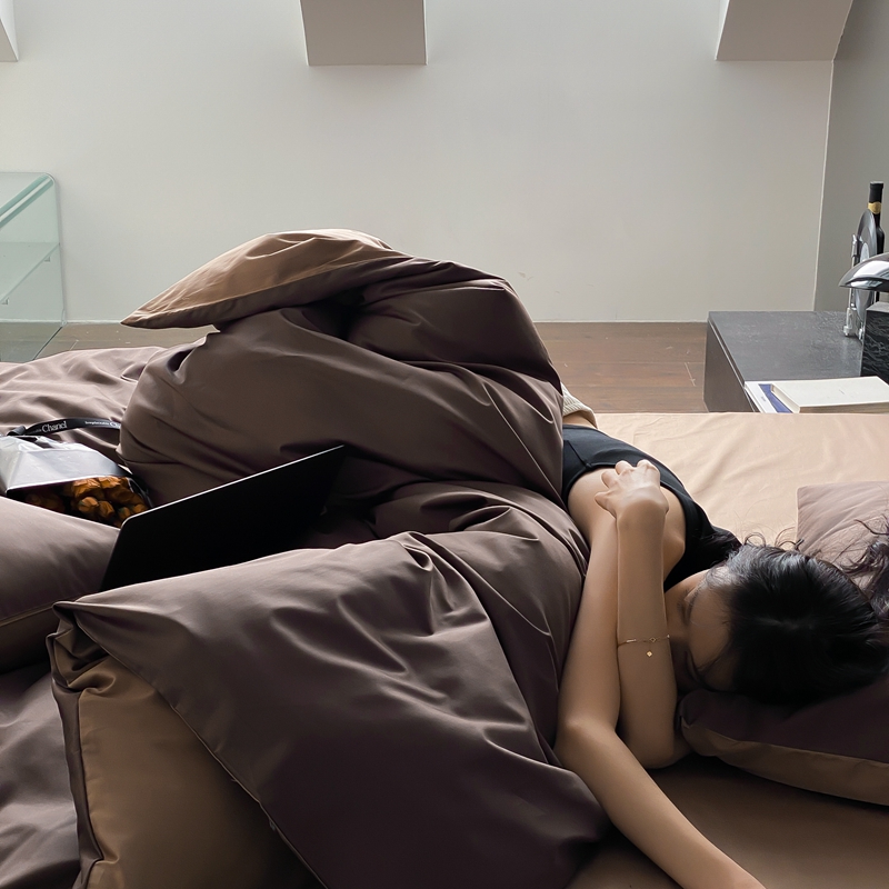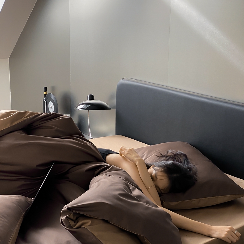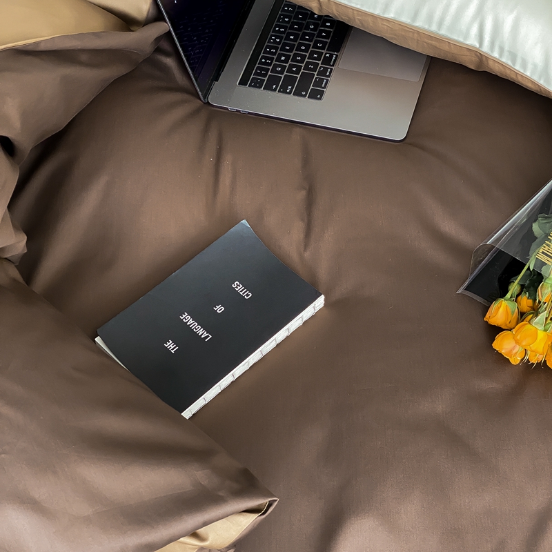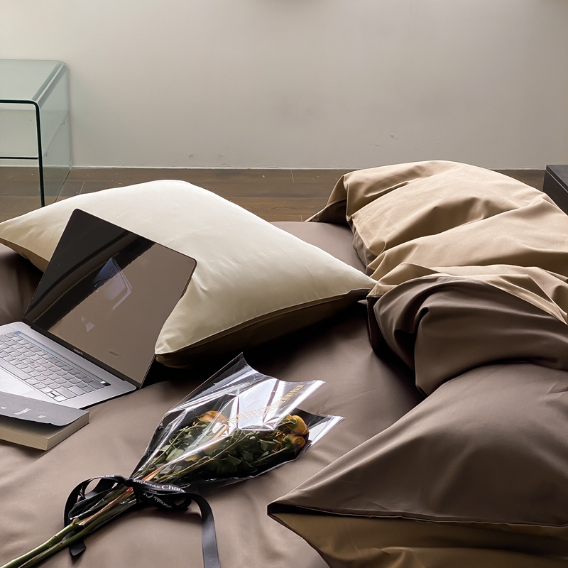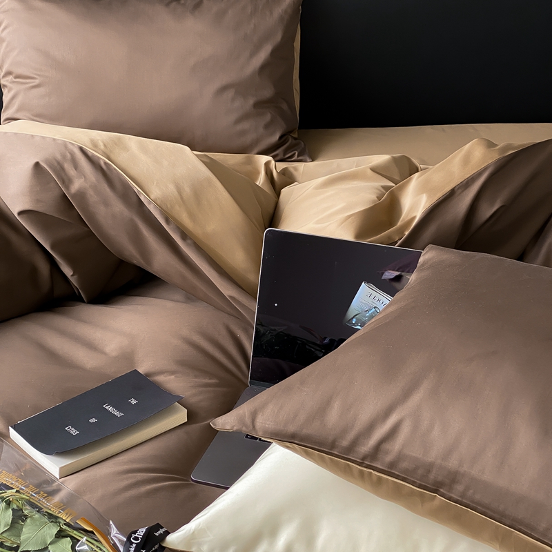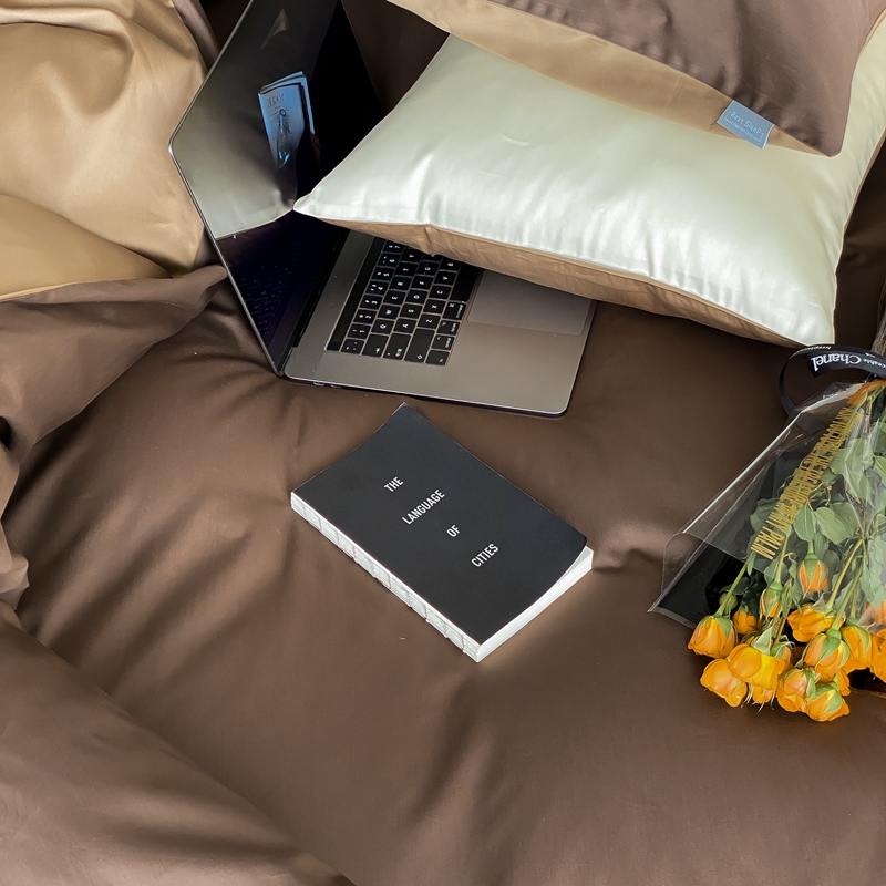 梦享生活家居 2023新款100支长绒棉贡缎双拼四件套 摩卡棕