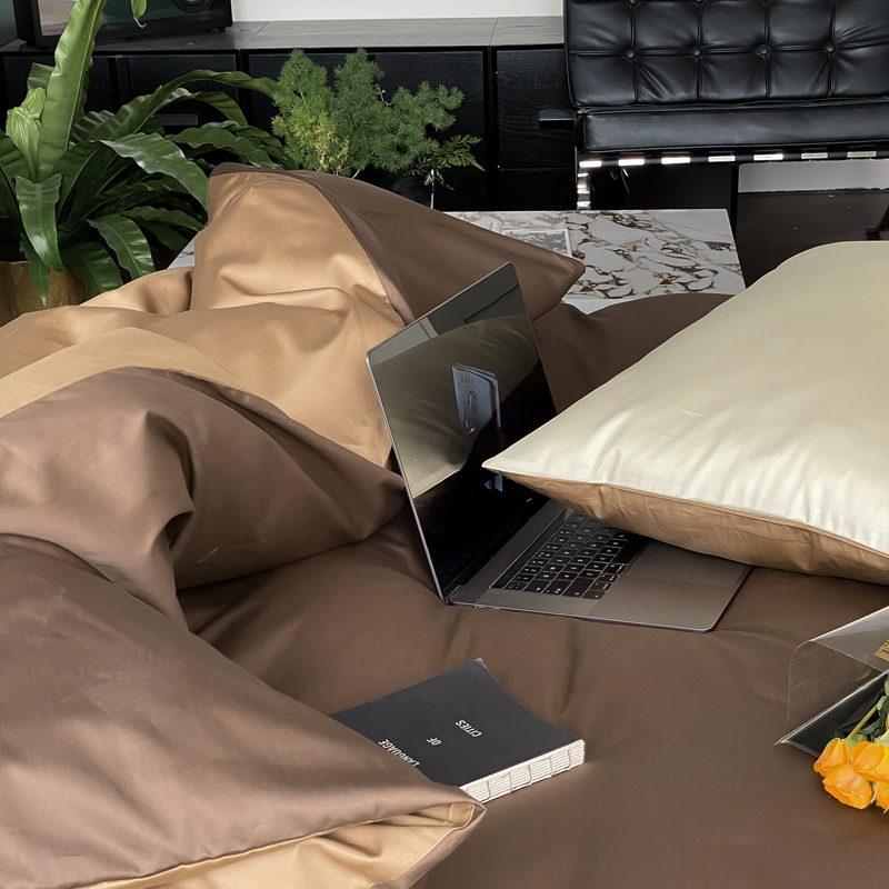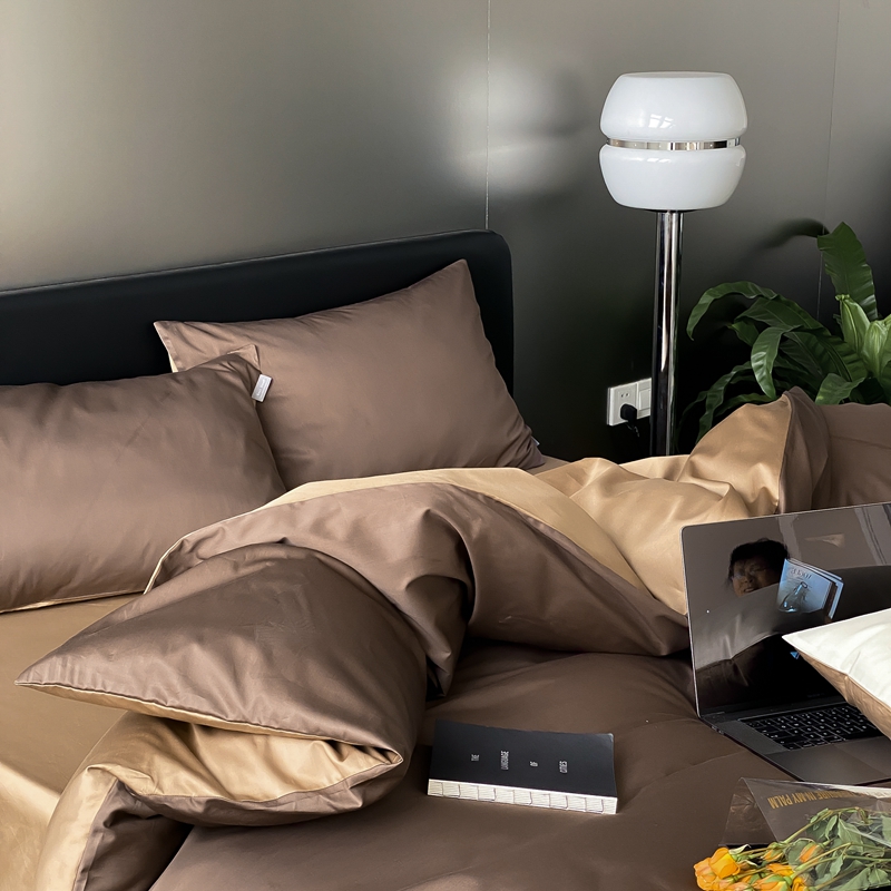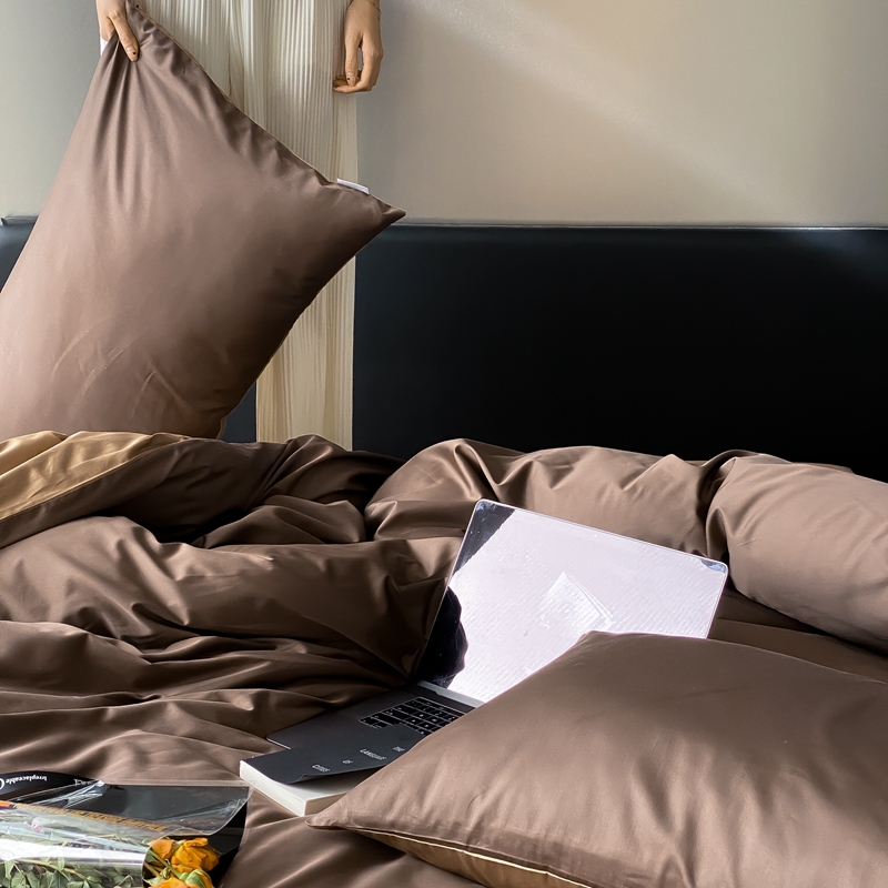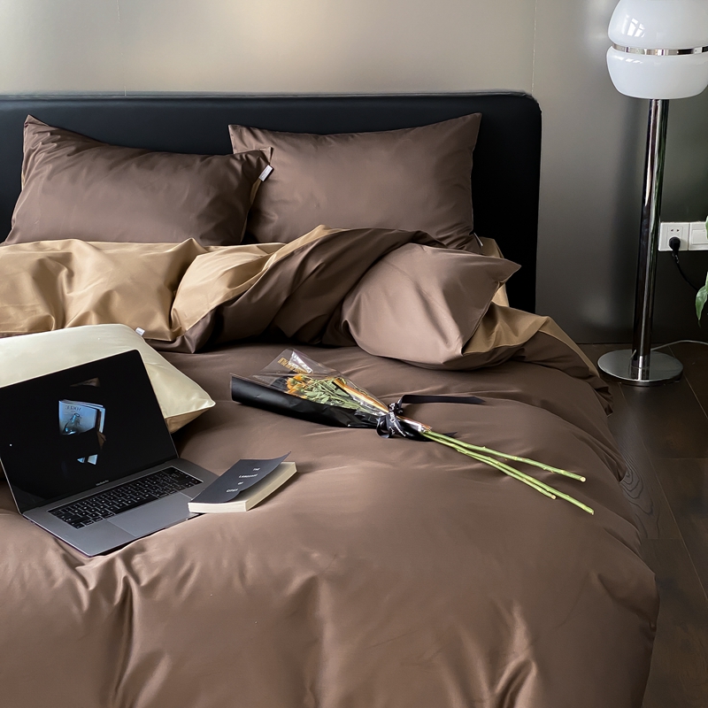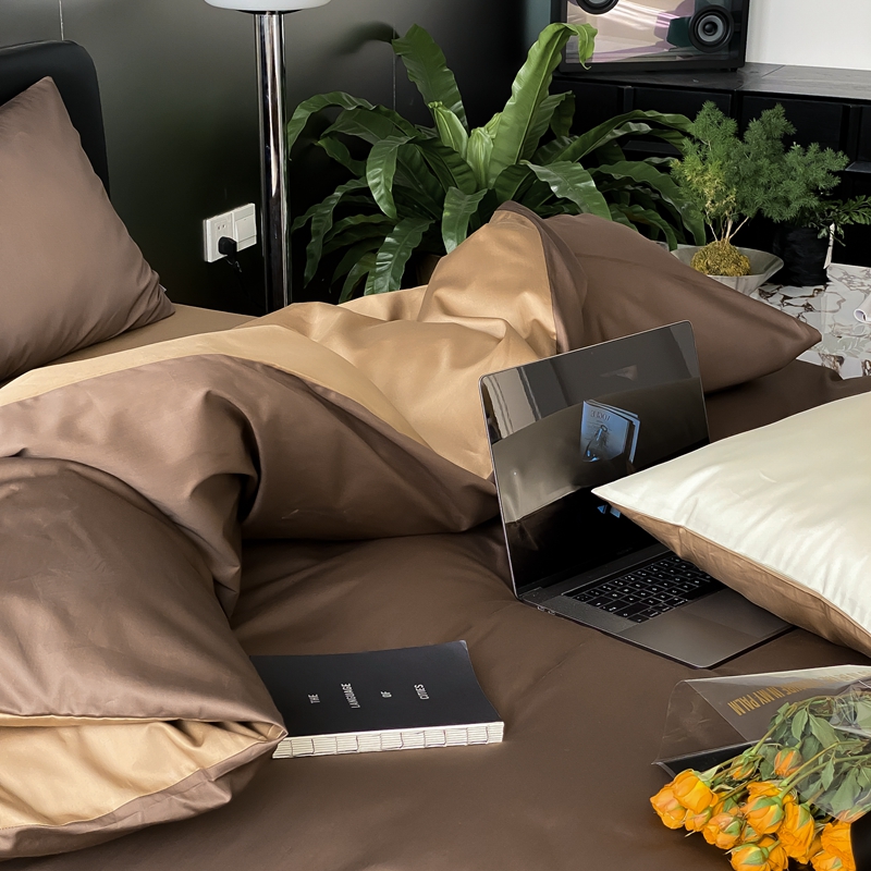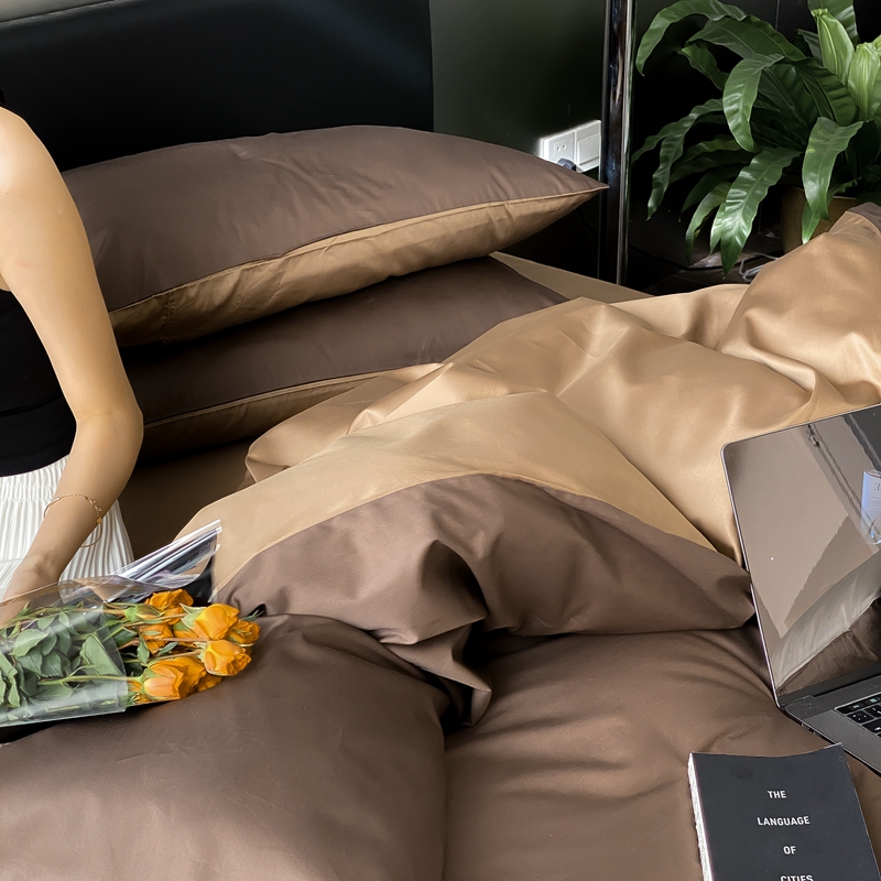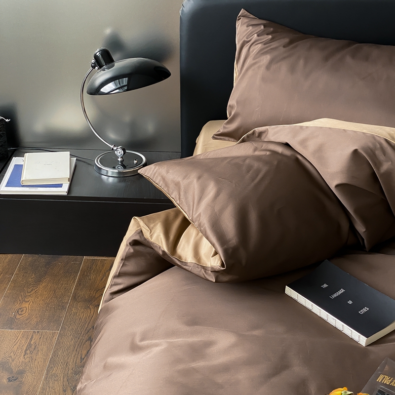 商品名称:梦享生活家居 2023新款100支长绒棉贡缎双拼四件套 摩卡棕