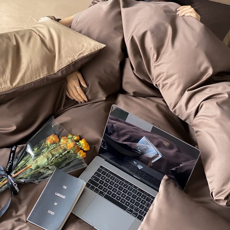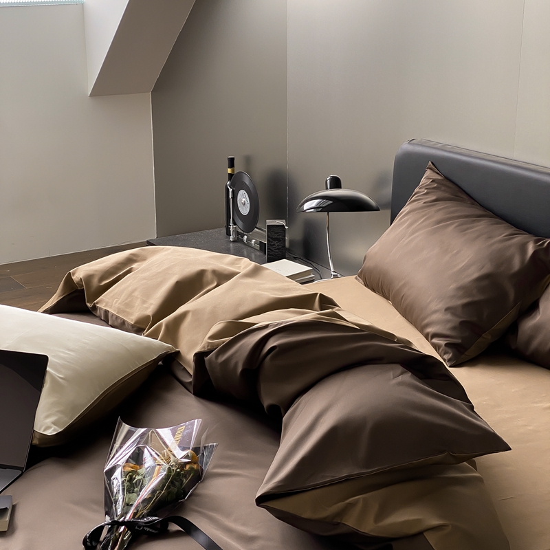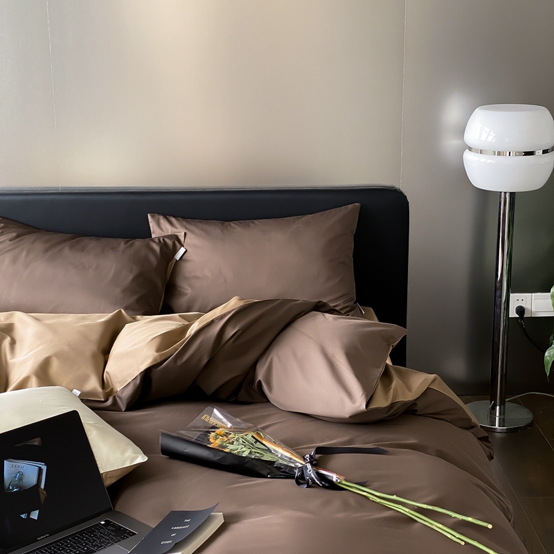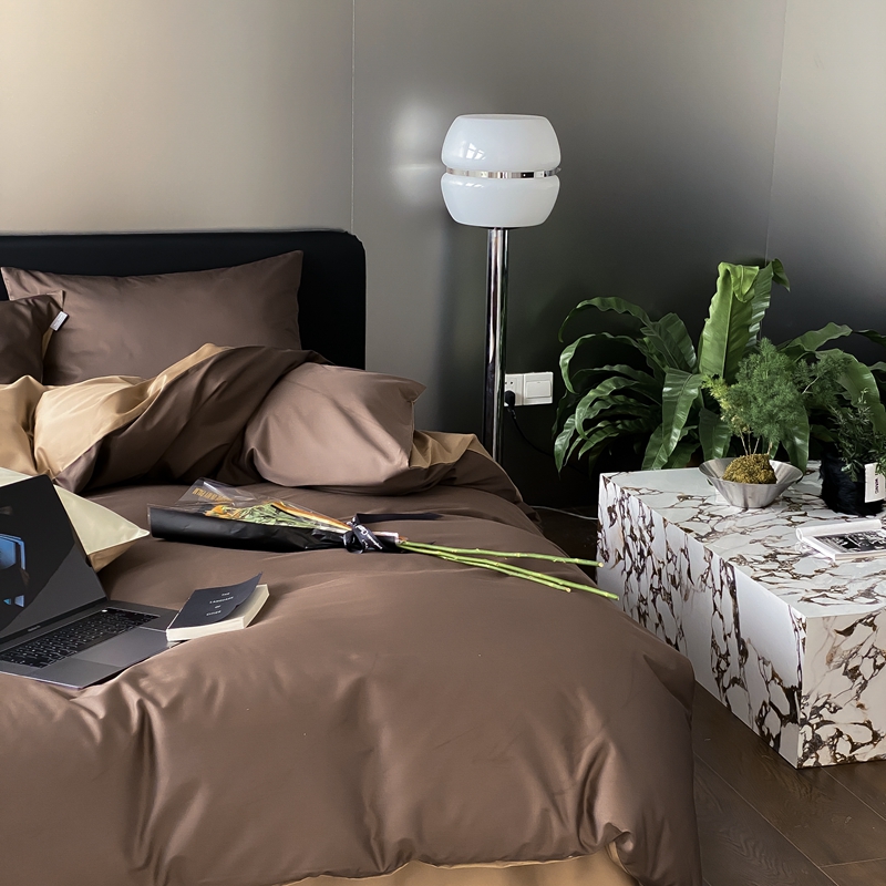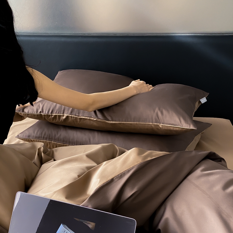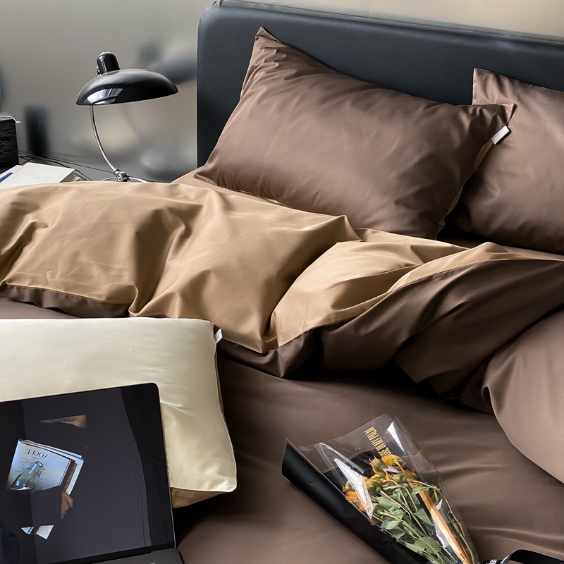 商品名称:梦享生活家居 2023新款100支长绒棉贡缎双拼四件套 摩卡棕