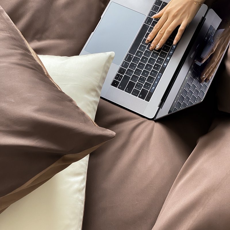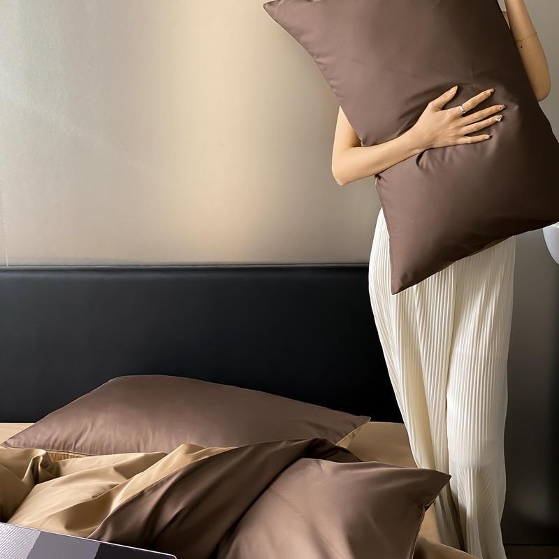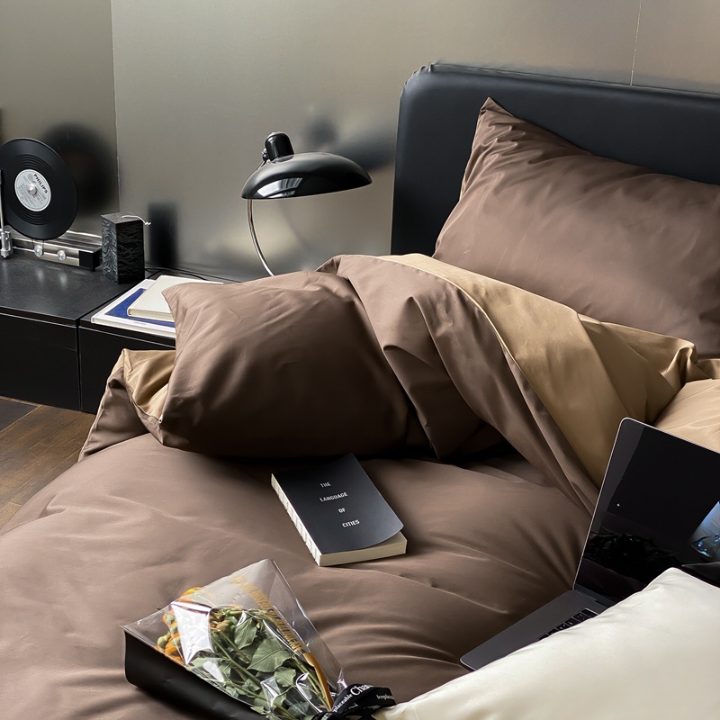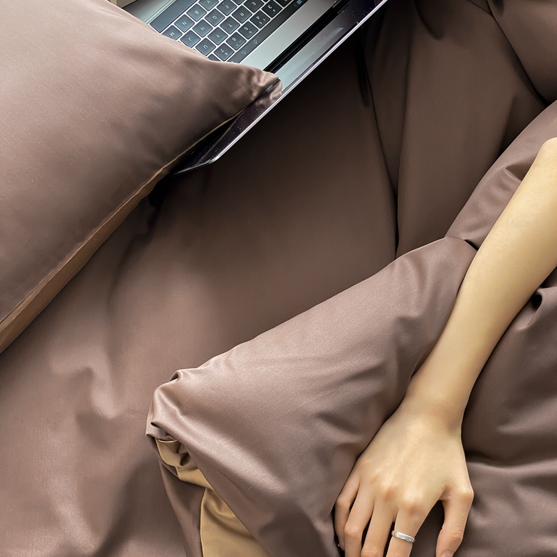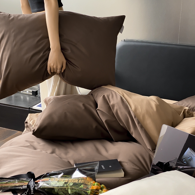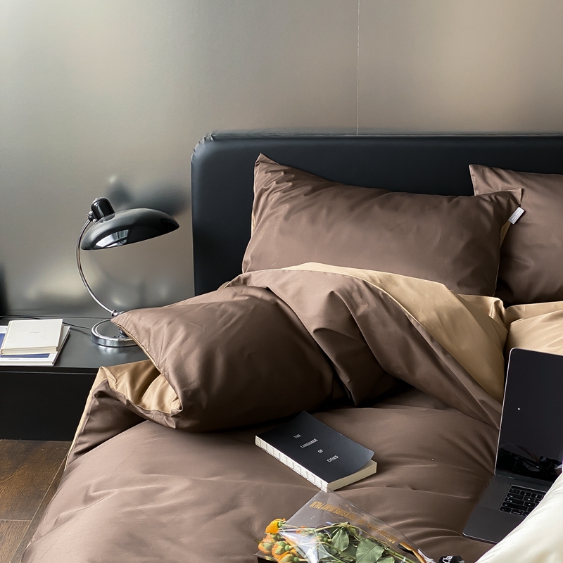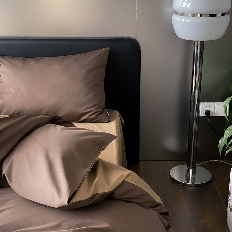 商品名称:梦享生活家居 2023新款100支长绒棉贡缎双拼四件套 摩卡棕