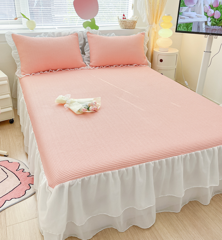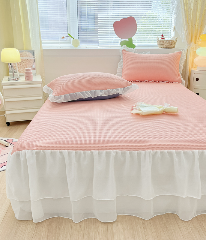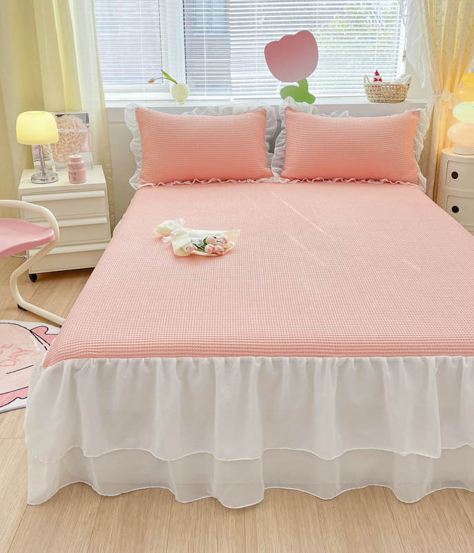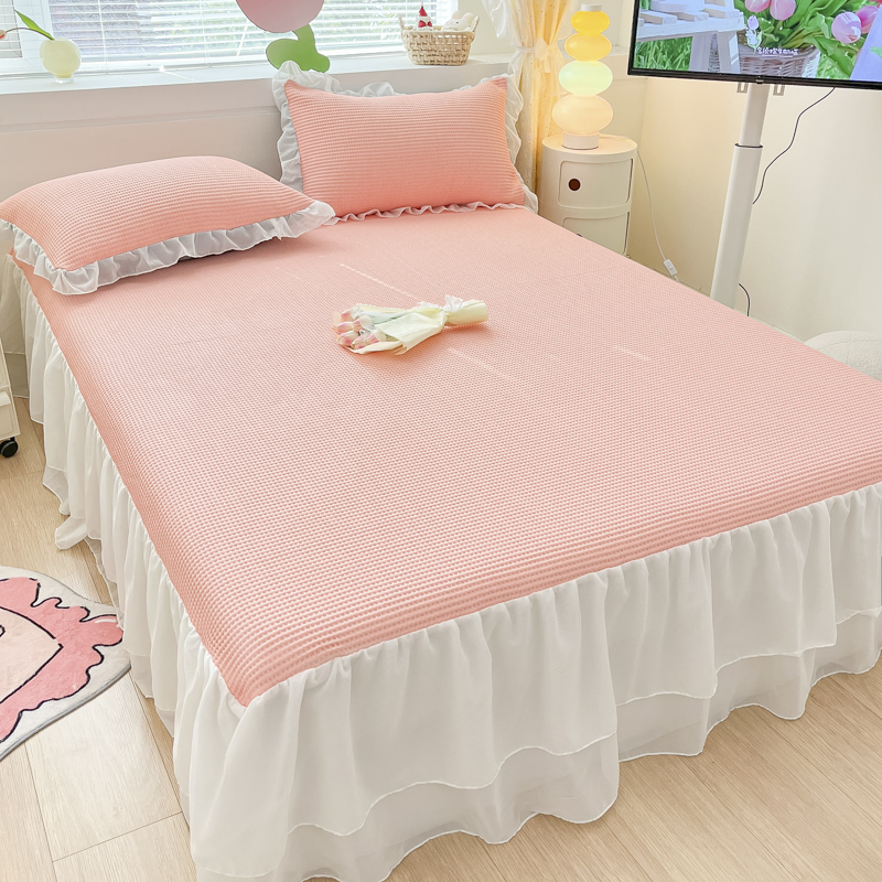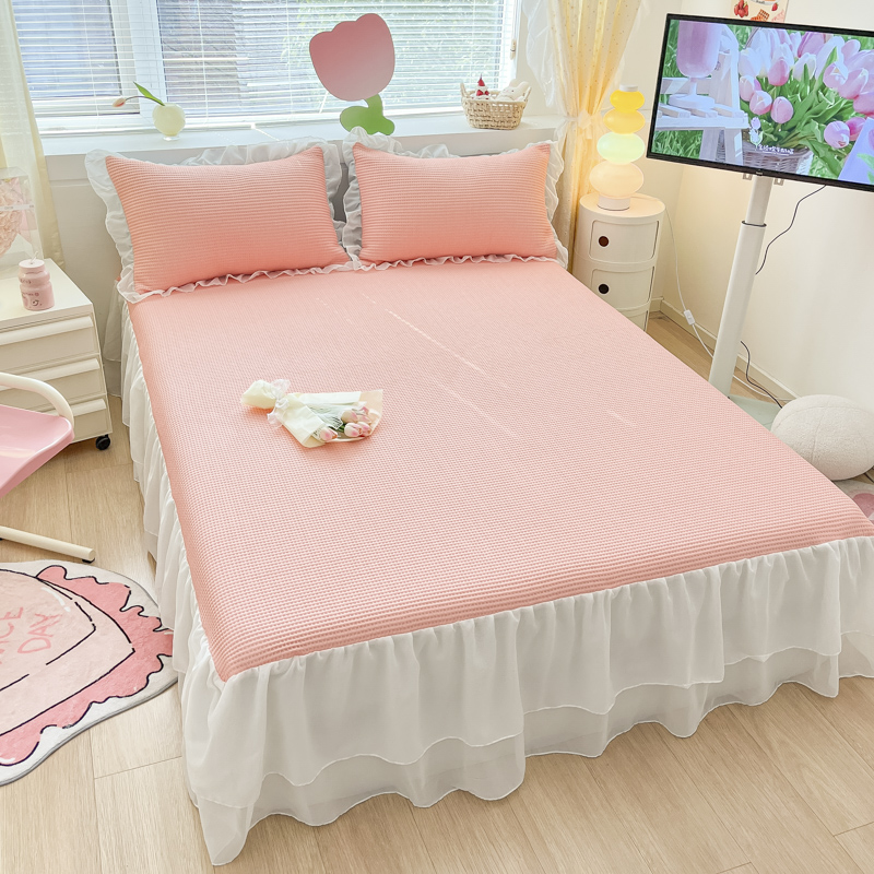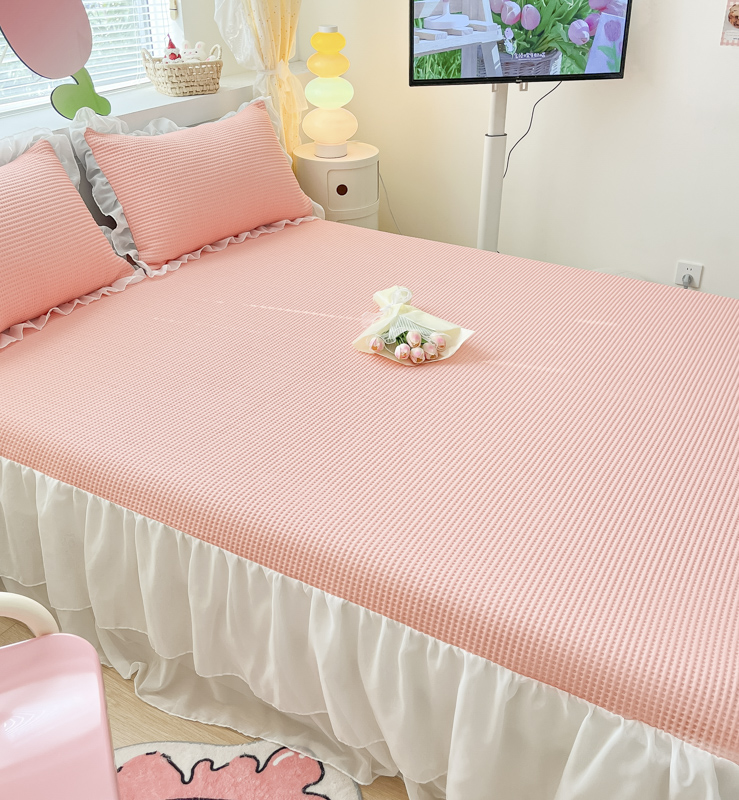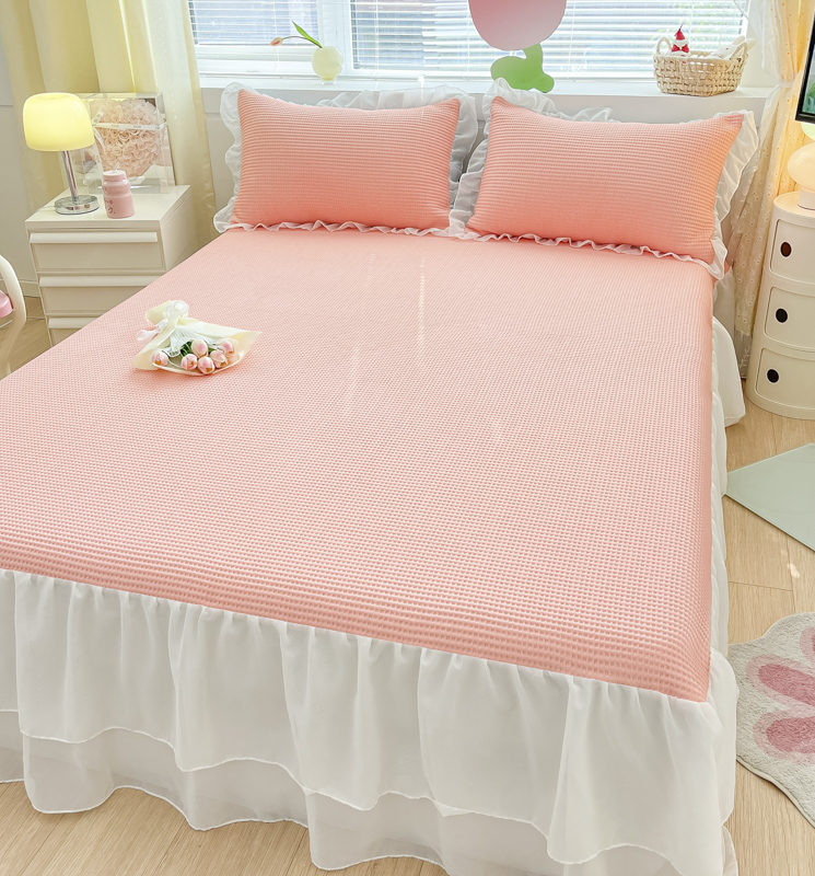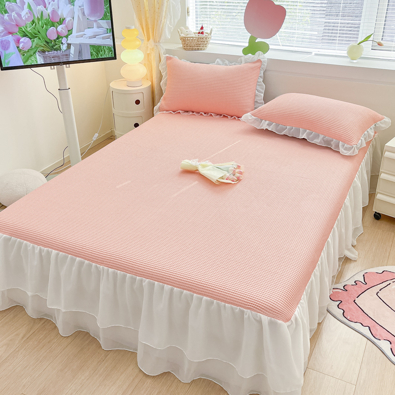 同田 2023新款凉豆豆床裙款凉席冰丝凉感豆豆席 萝莉粉