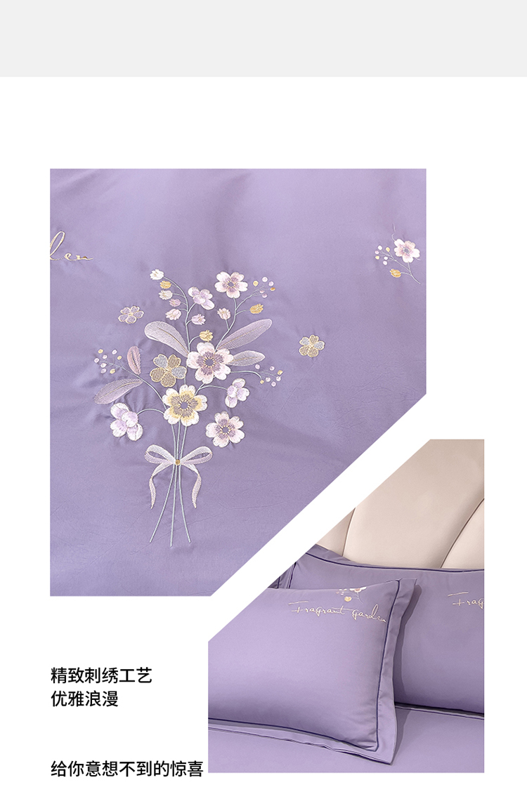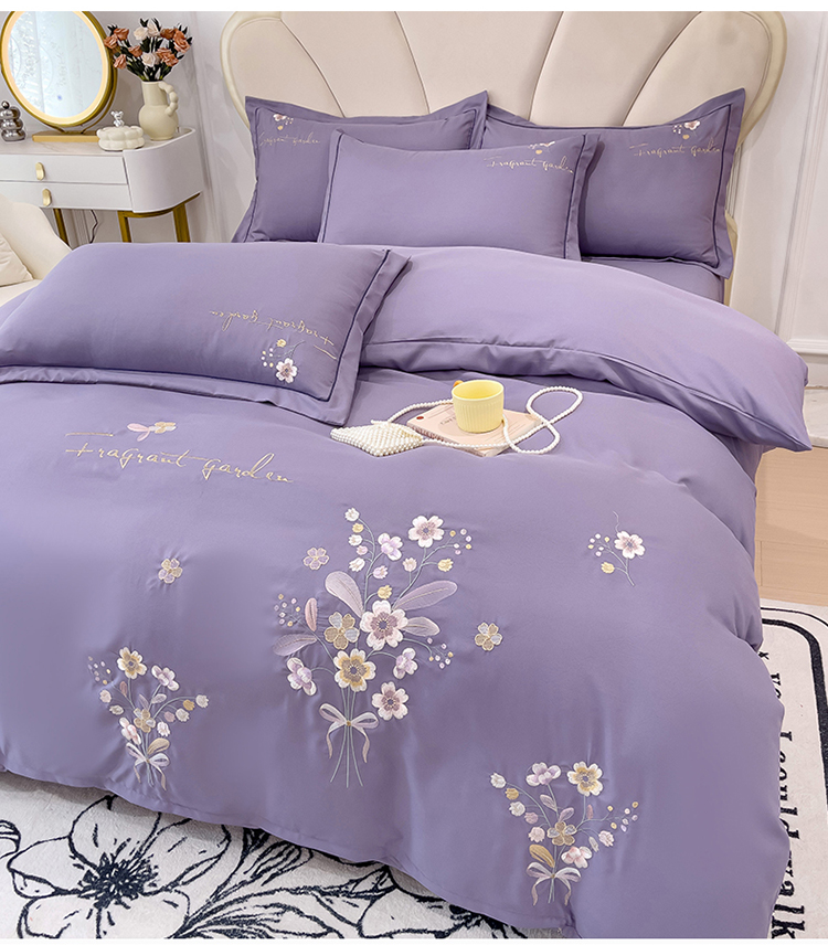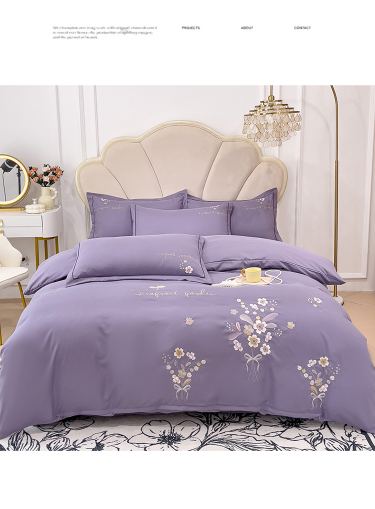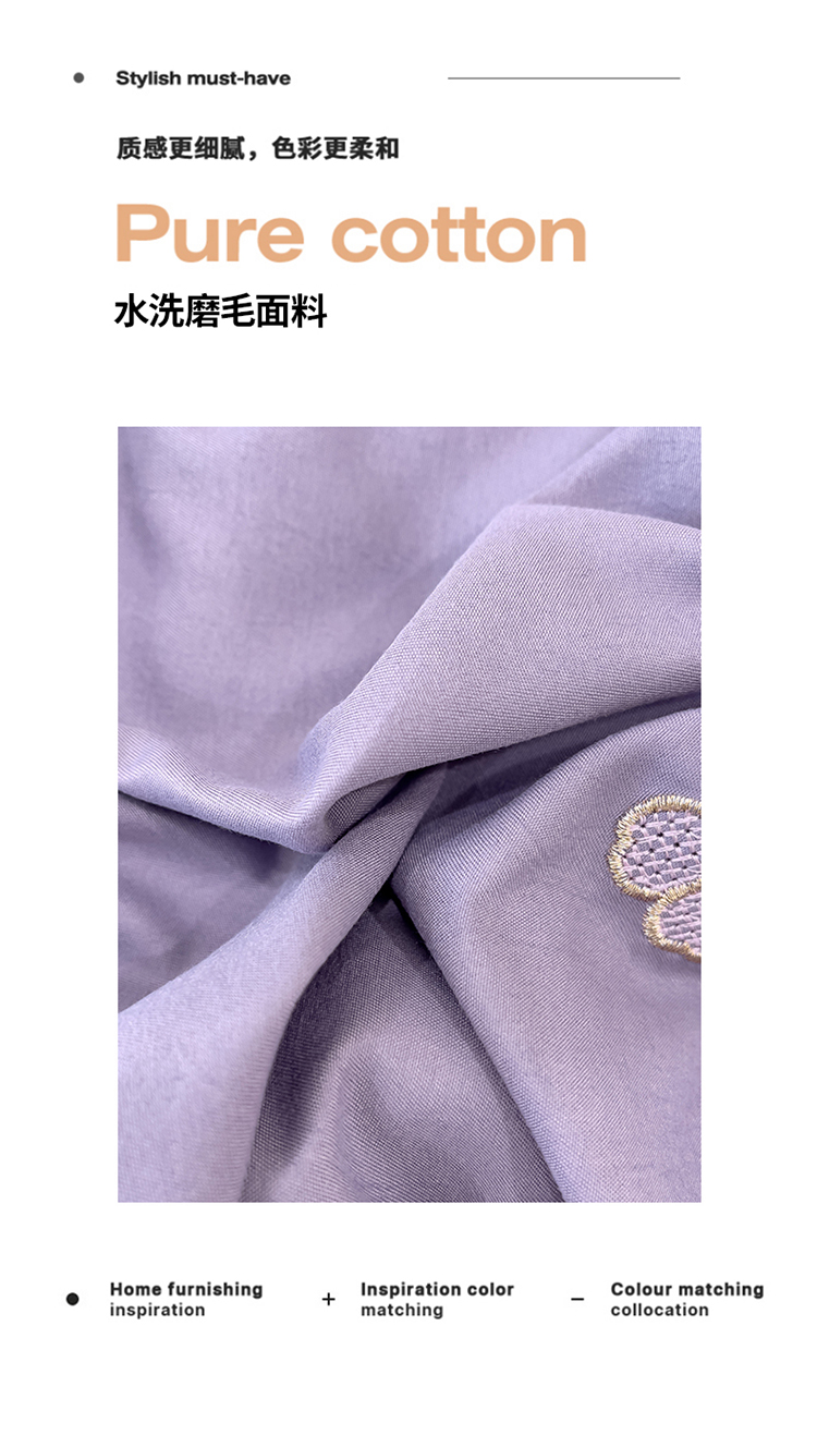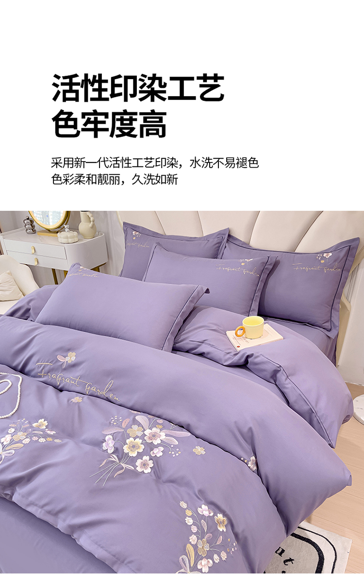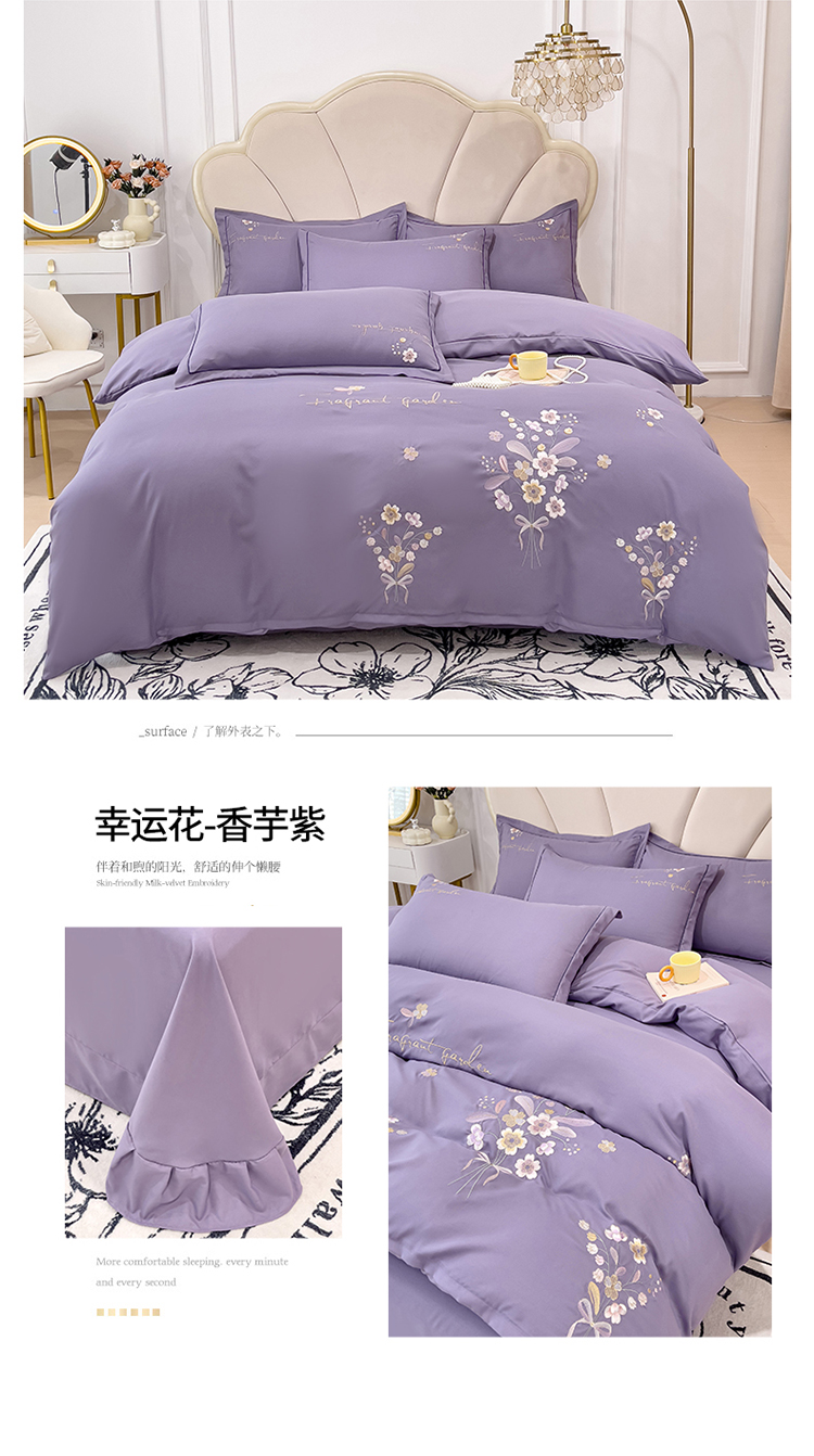 商品名称:金米诺 2024新款水洗磨毛刺绣四件套 幸运花-香芋紫