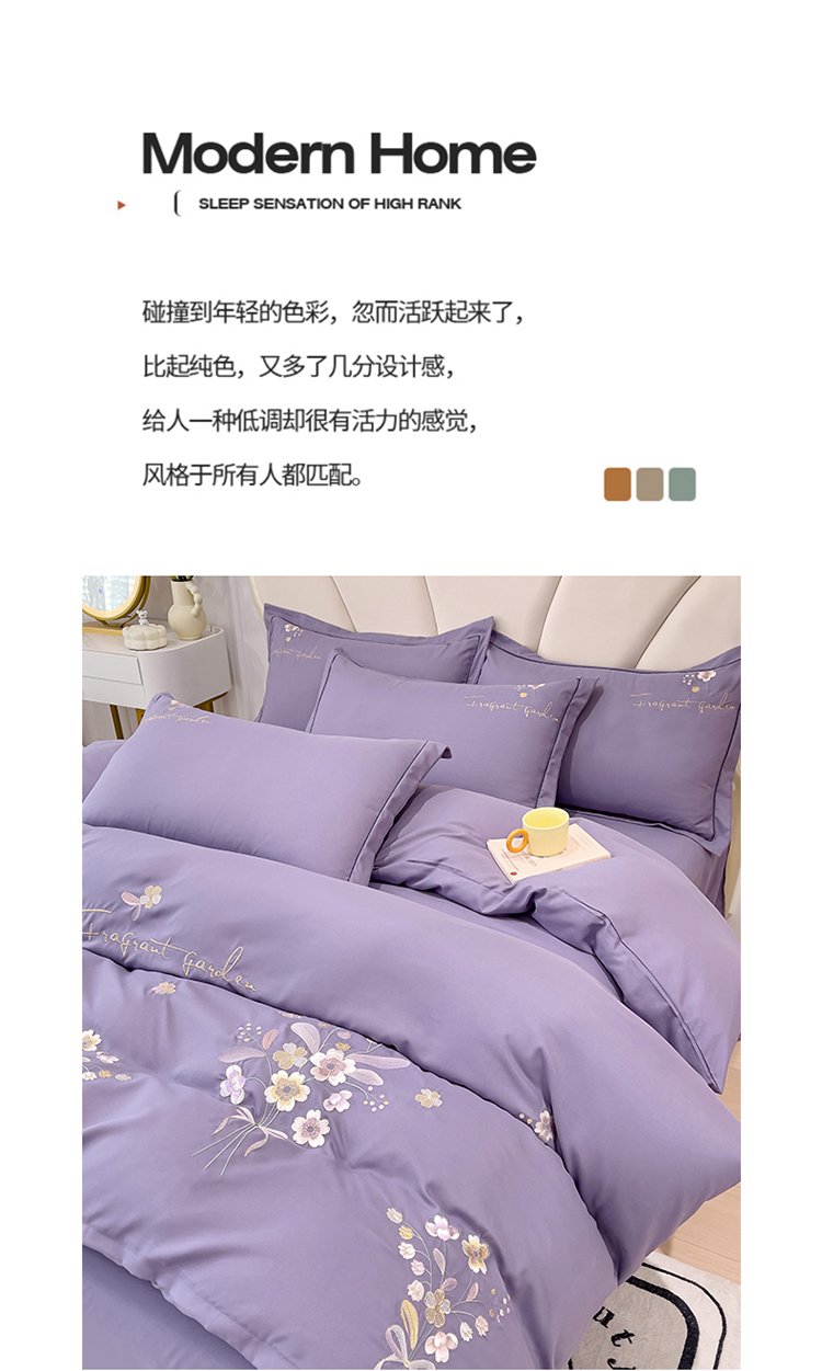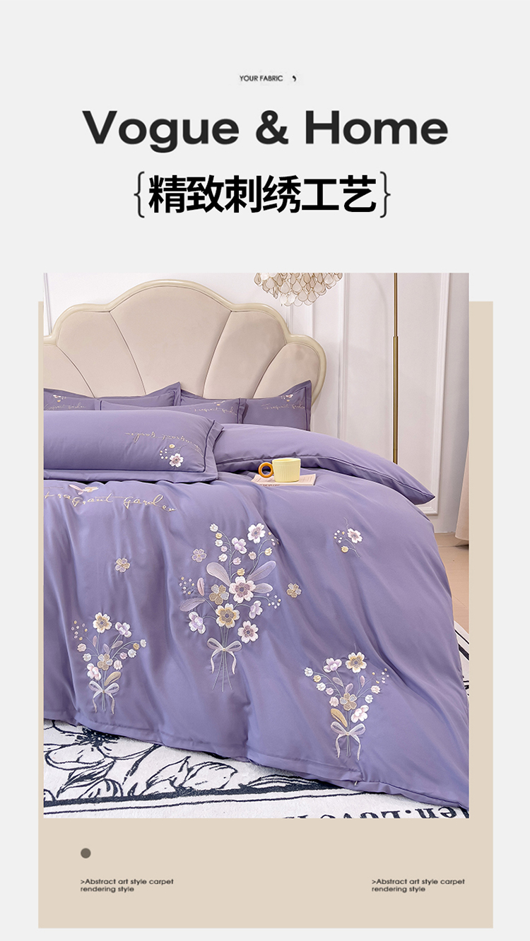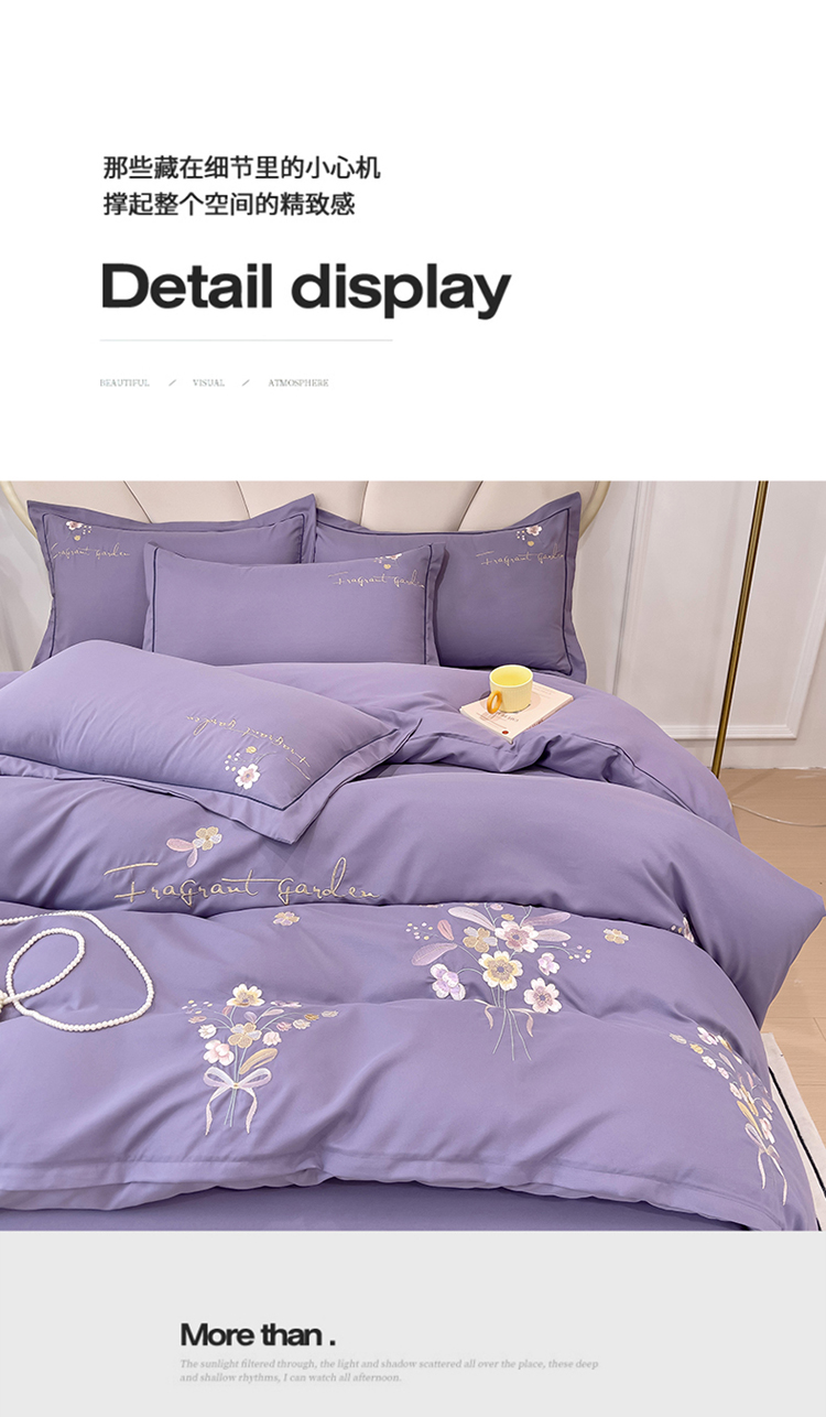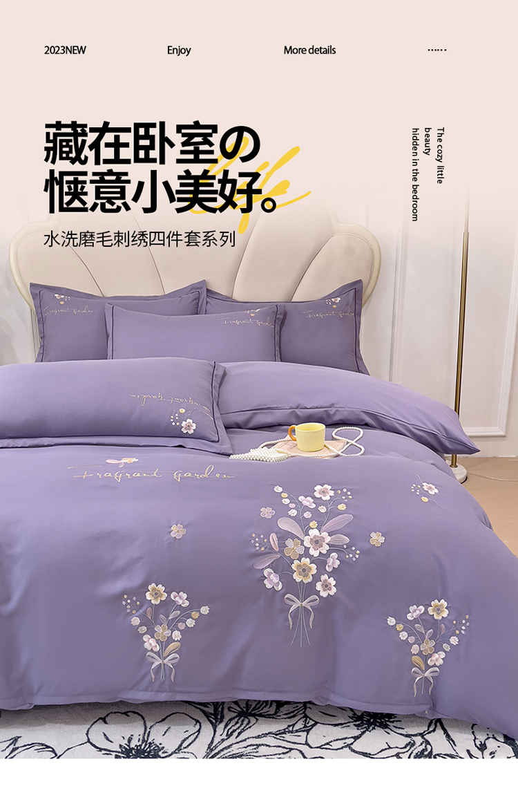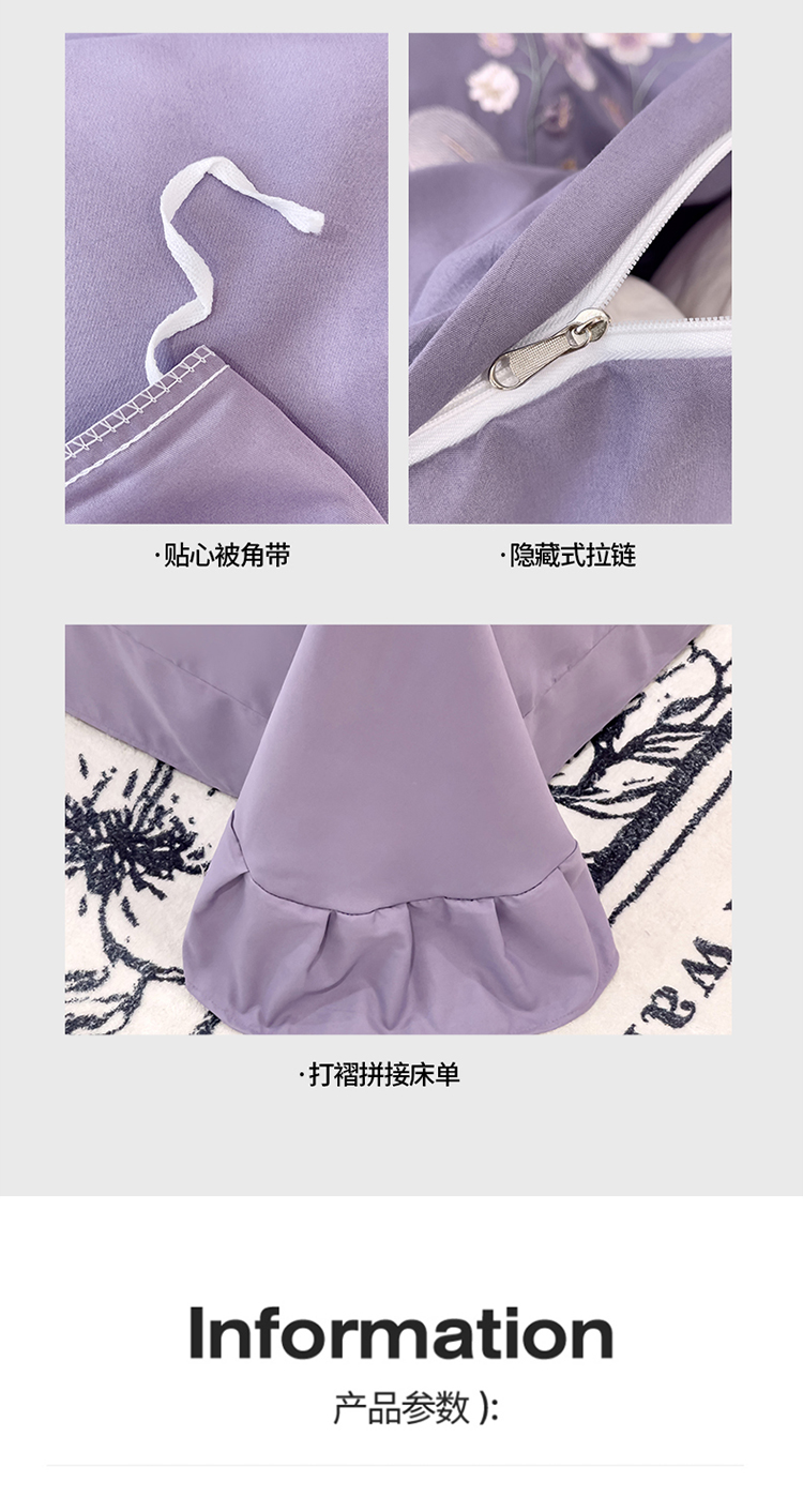 商品名称:金米诺 2024新款水洗磨毛刺绣四件套 幸运花-香芋紫
