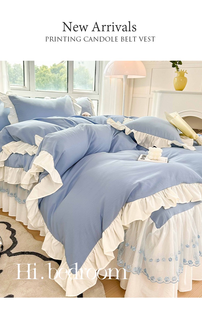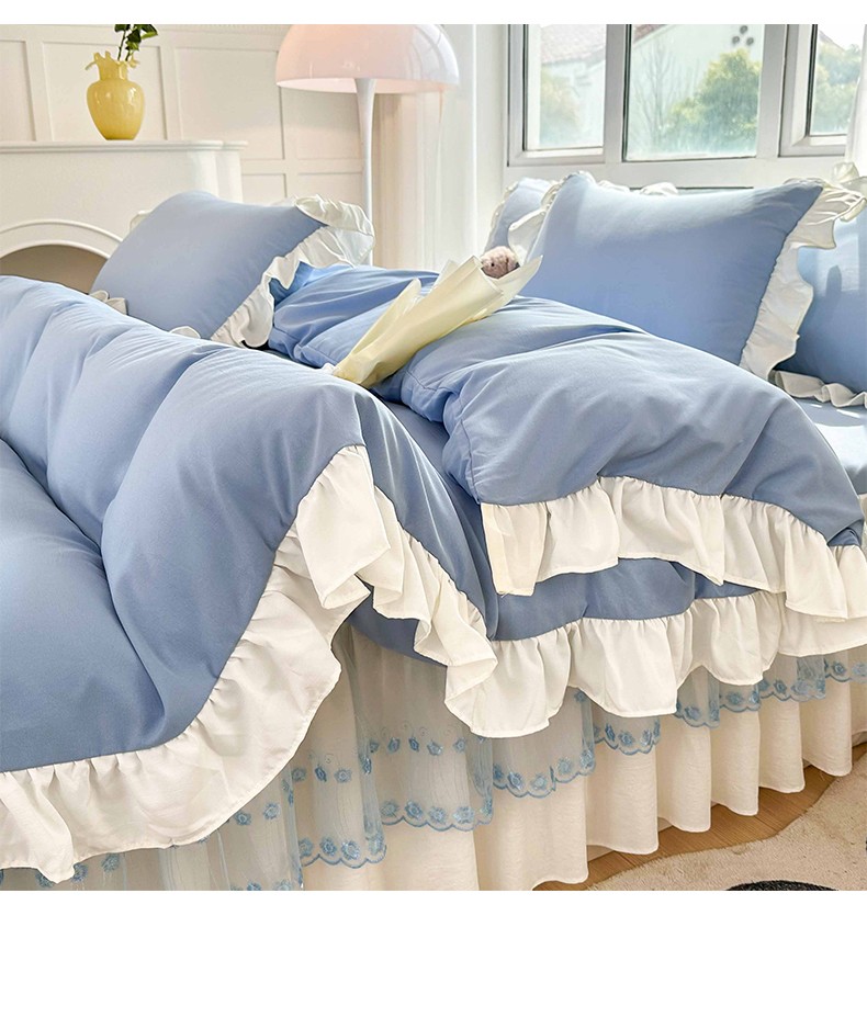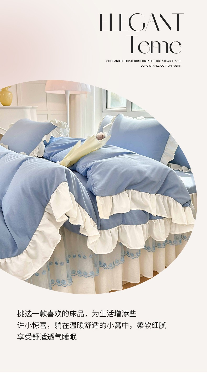 商品名称:言熙居 2023新款A类清新风床裙四件套 碧柔蓝