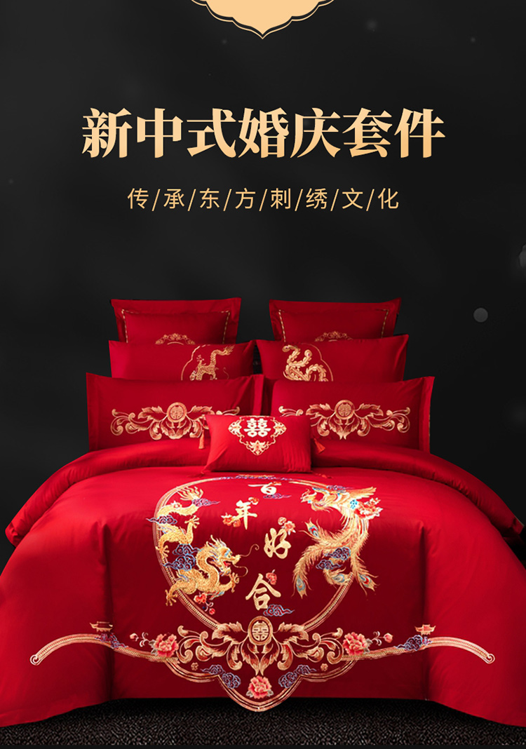 (总)慕她 202560S长绒棉刺绣婚庆四件套-龙凤良缘,龙凤良缘
