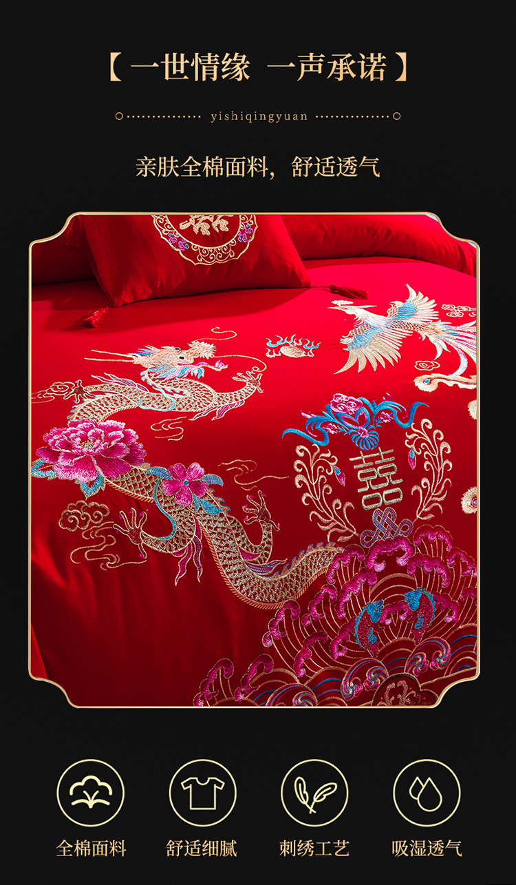 (总)慕她 202560S长绒棉刺绣婚庆四件套-龙凤良缘,龙凤良缘