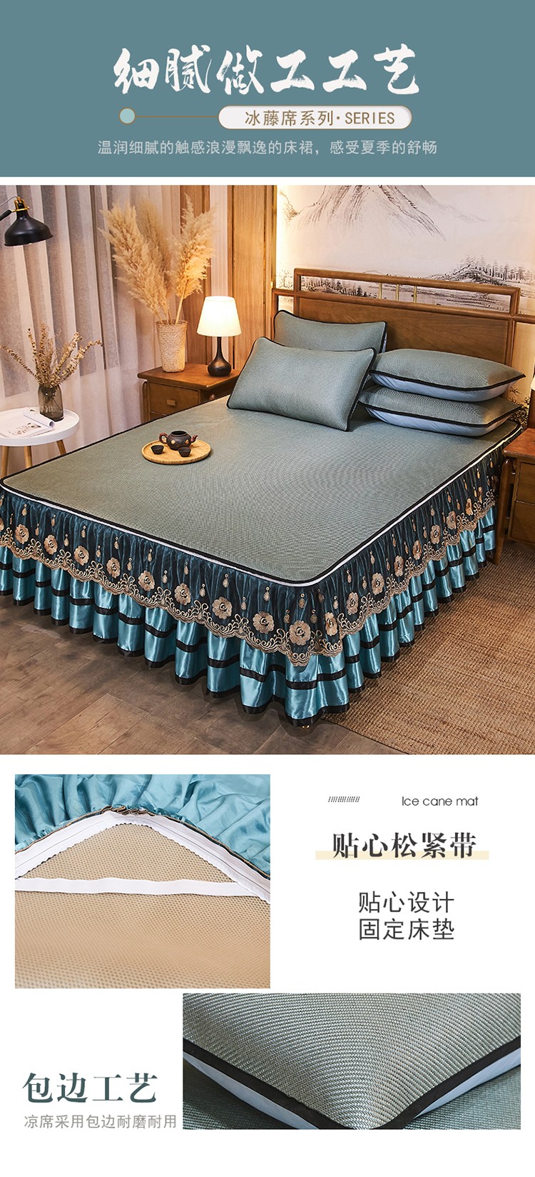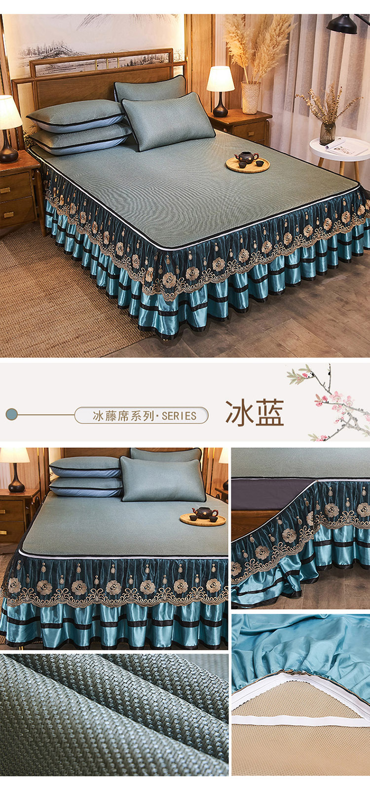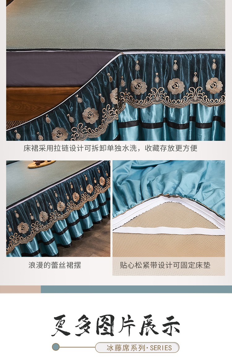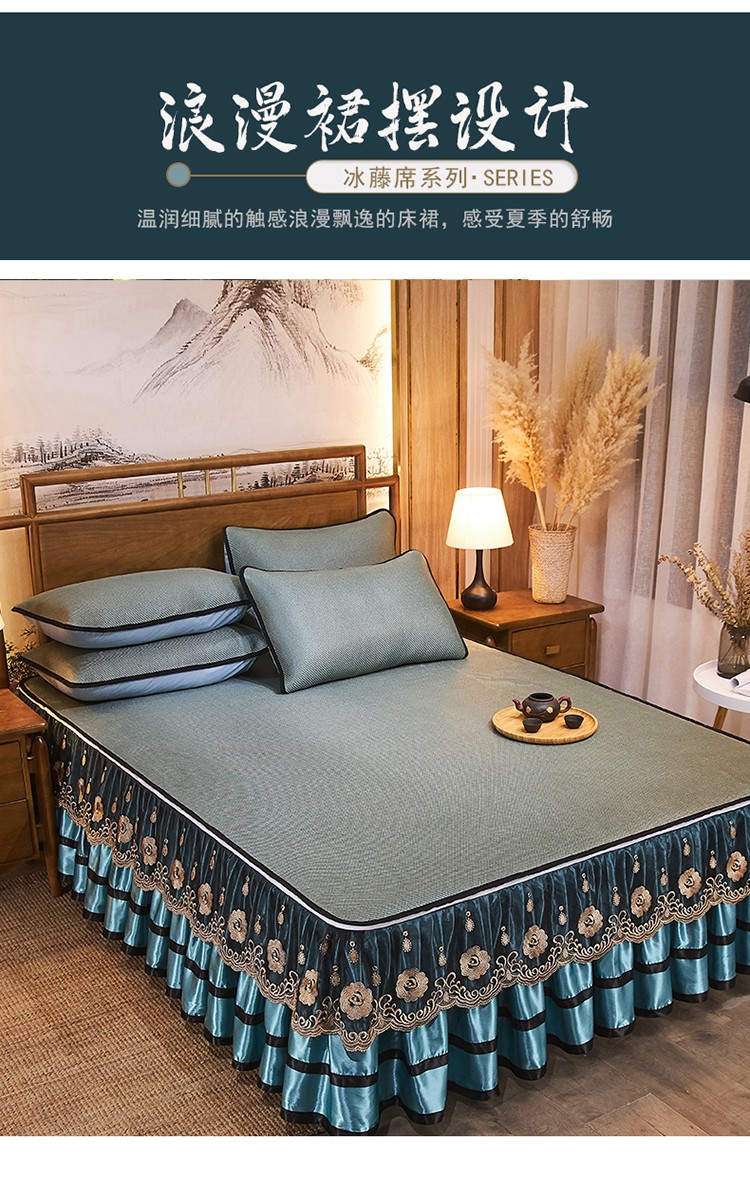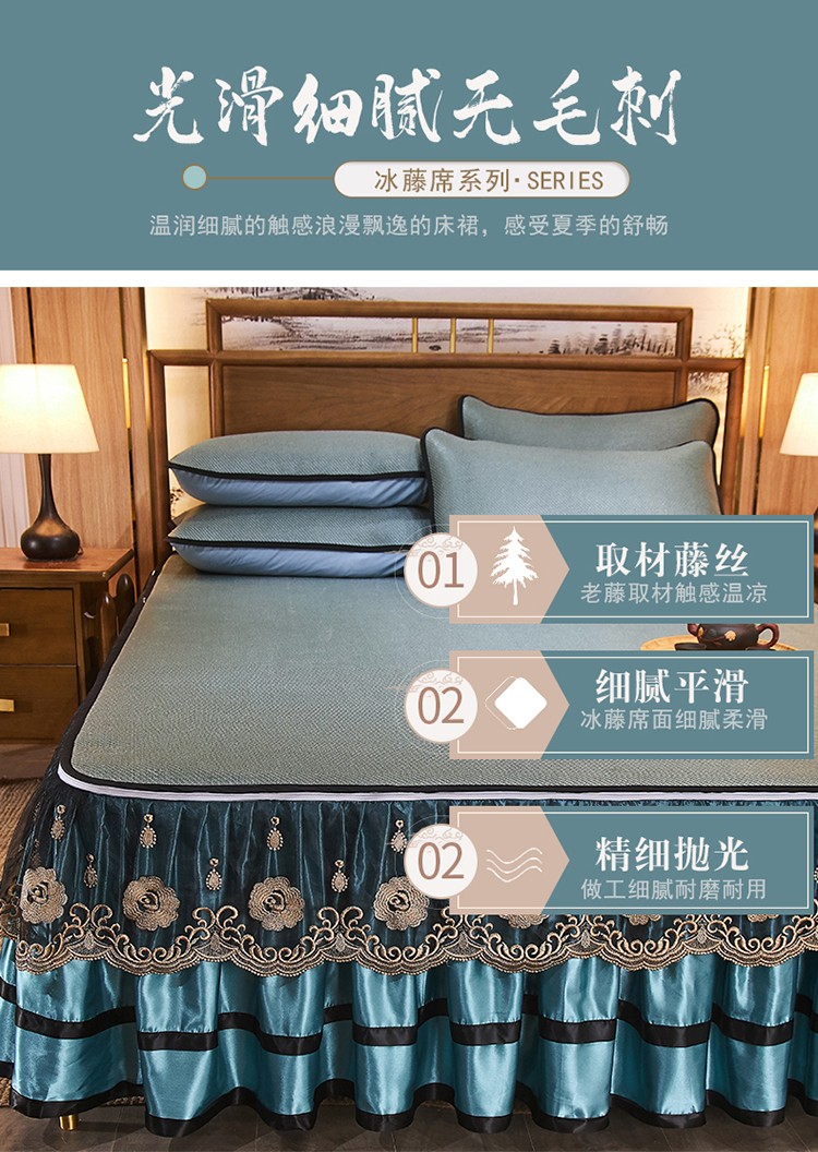 商品名称:恋尚 2024新款冰藤软凉席床裙款三件套(可脱卸) 玉芙-冰蓝