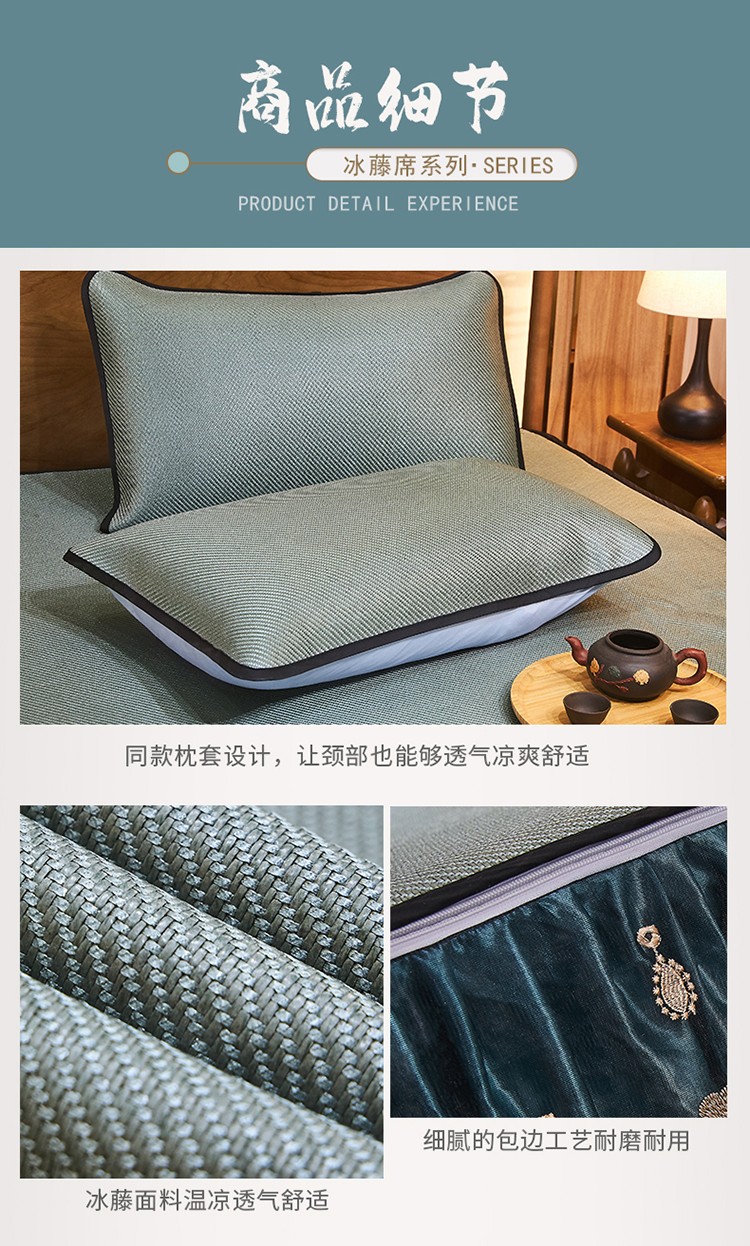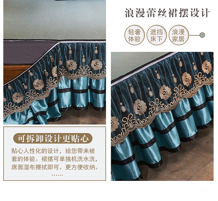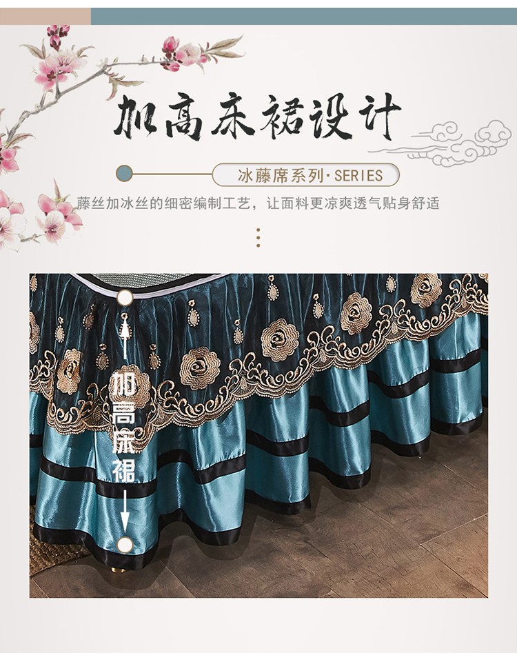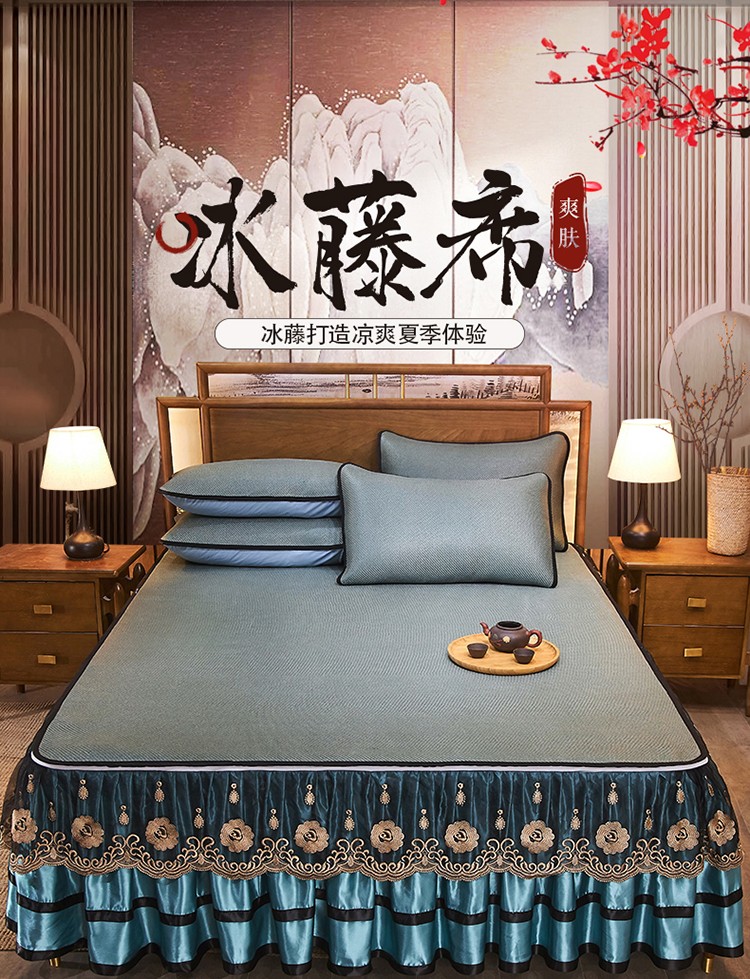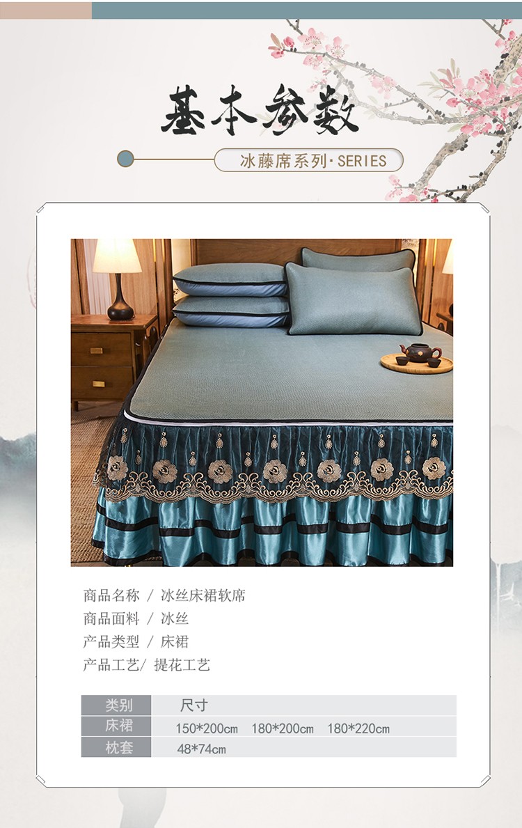 商品名称:恋尚 2024新款冰藤软凉席床裙款三件套(可脱卸) 玉芙-冰蓝