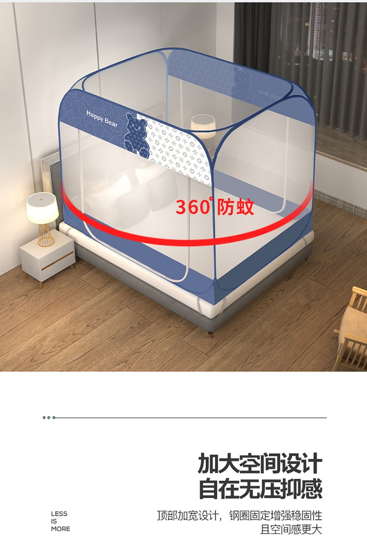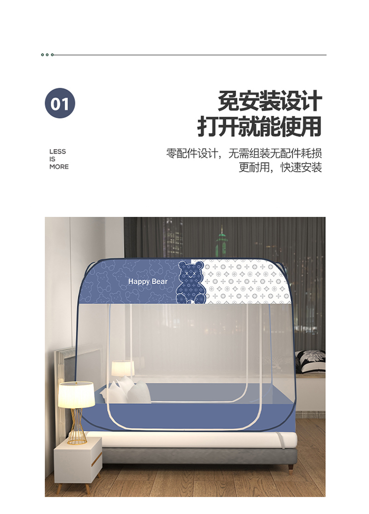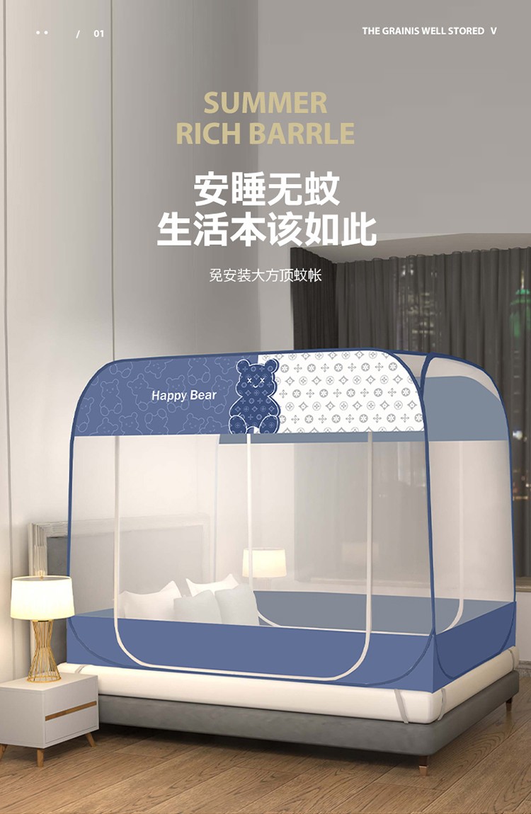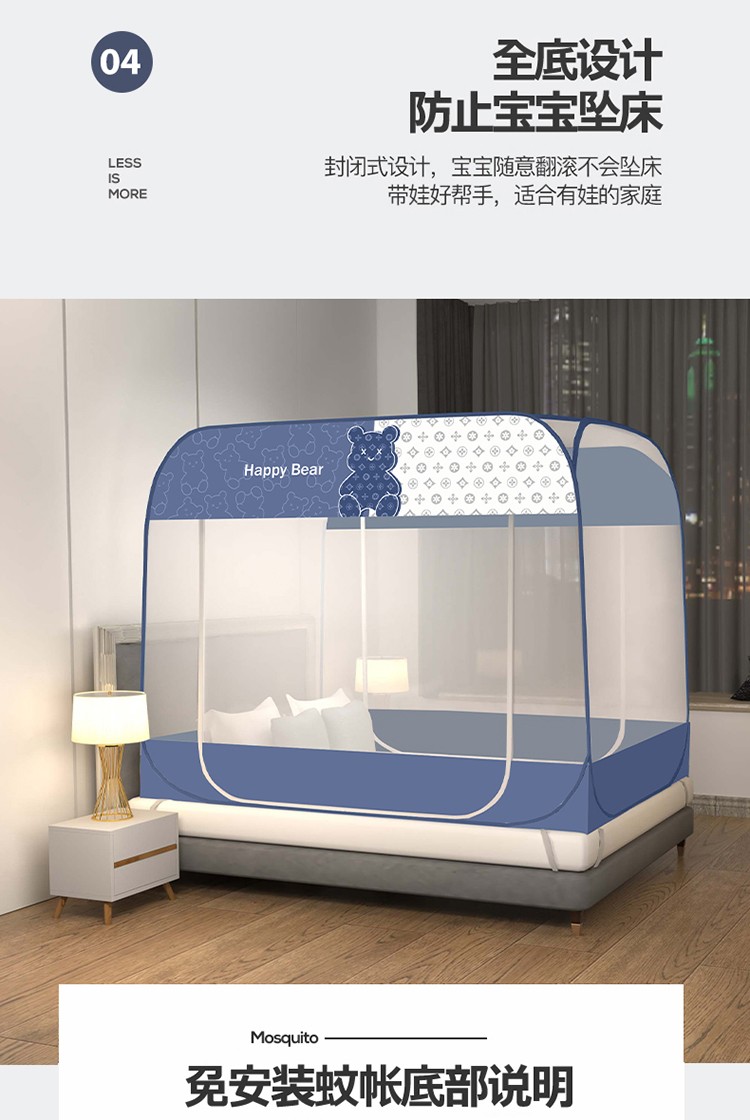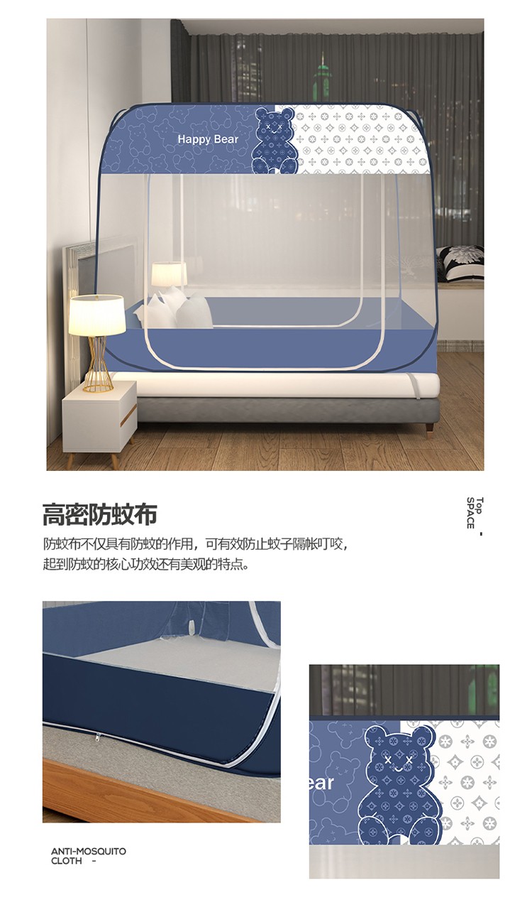 商品名称:佳梦家纺 2023新款印花时尚款免安装蒙古包蚊帐 芭宝熊布三角