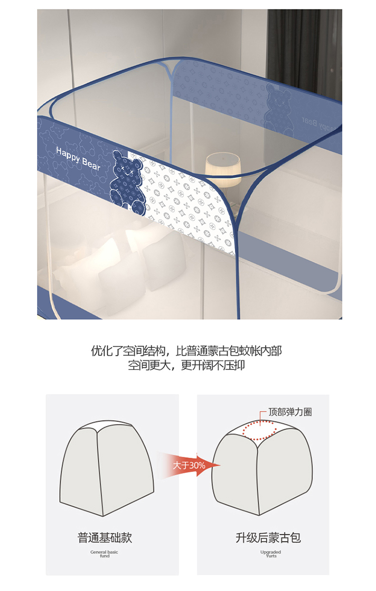 佳梦家纺 2023新款印花时尚款免安装蒙古包蚊帐 芭宝熊布三角