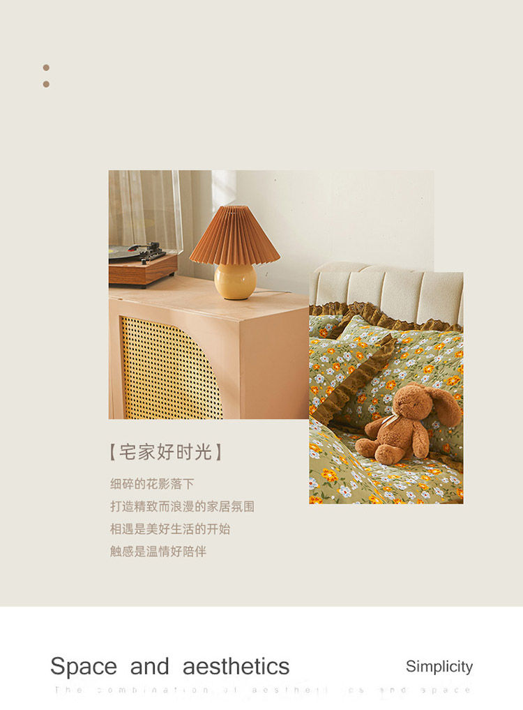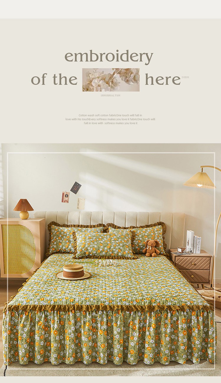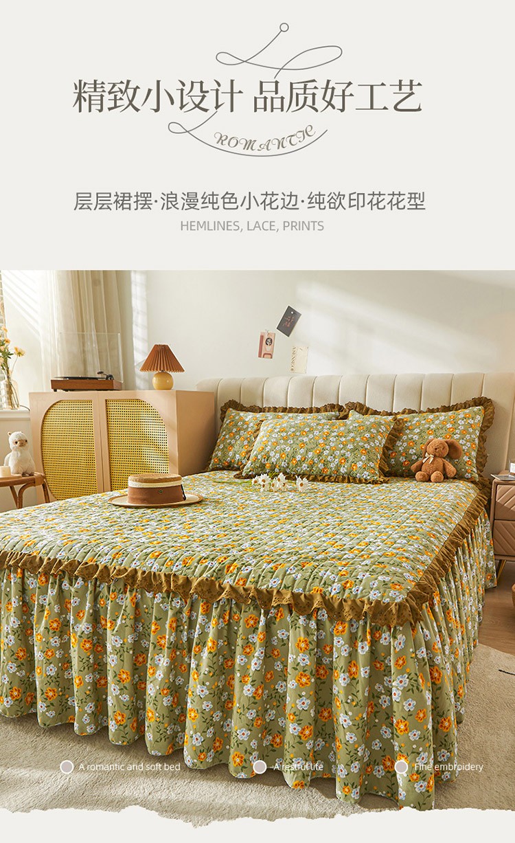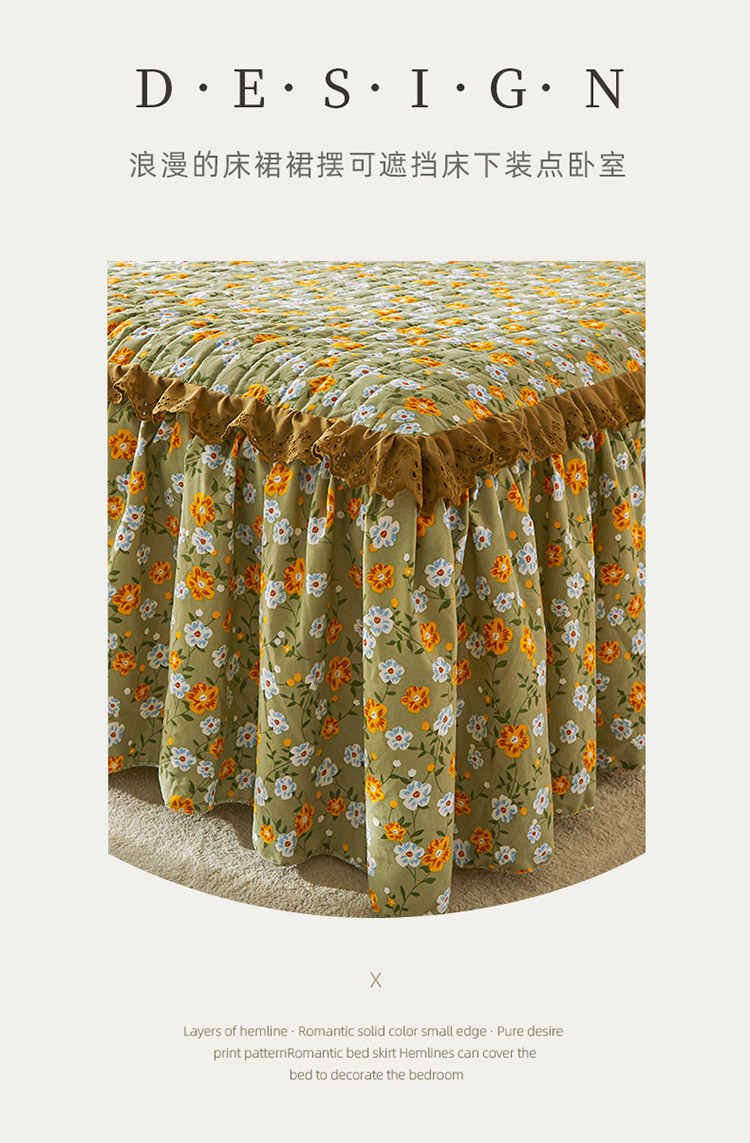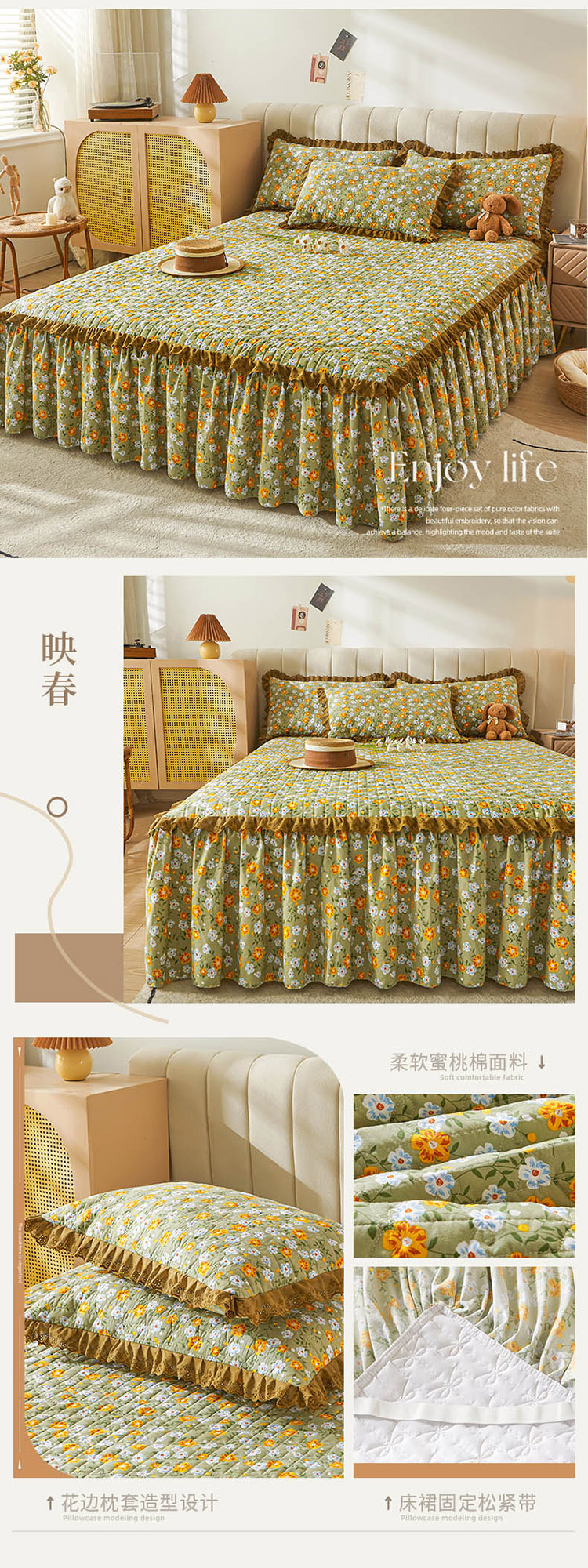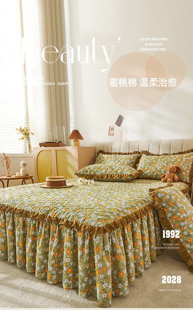 恋尚 2023新款蜜桃棉印花夹棉床裙三件套 映春