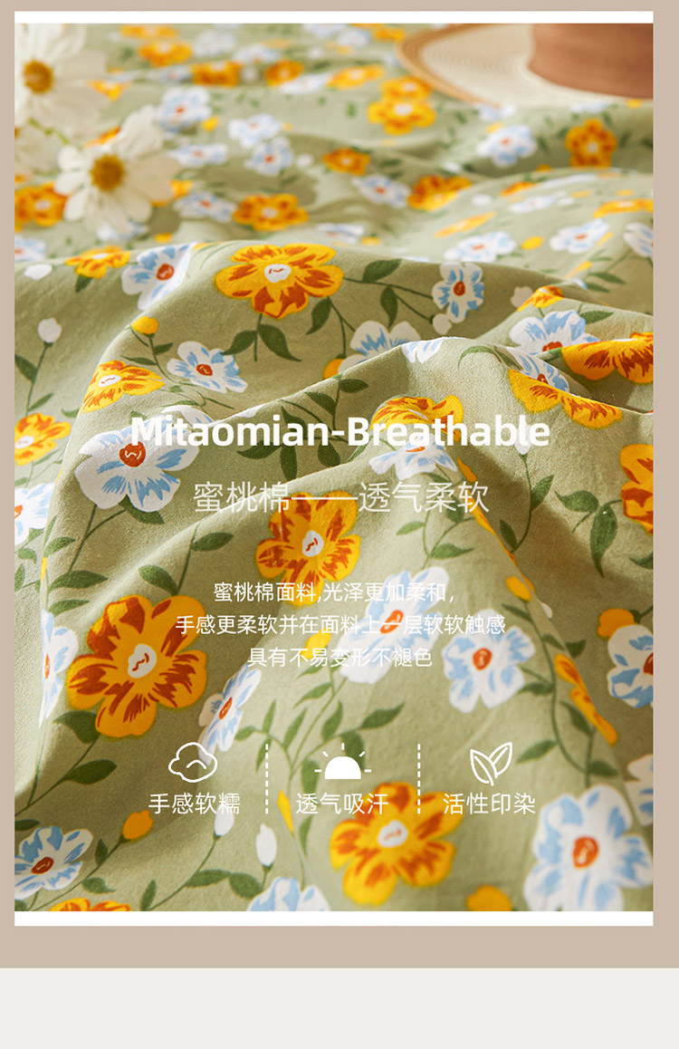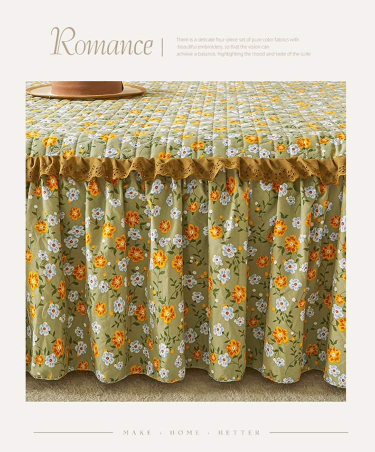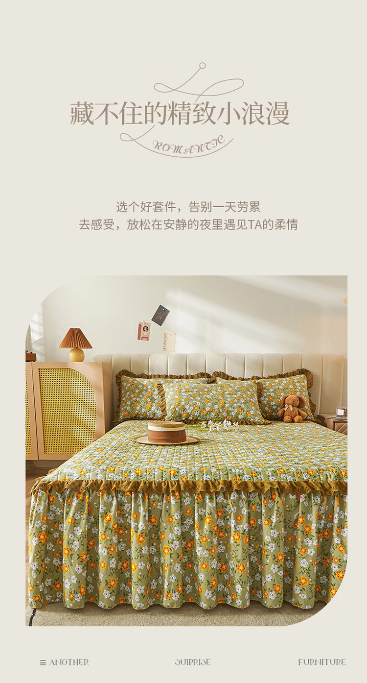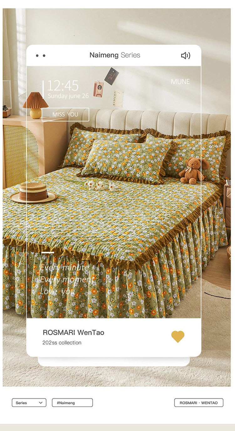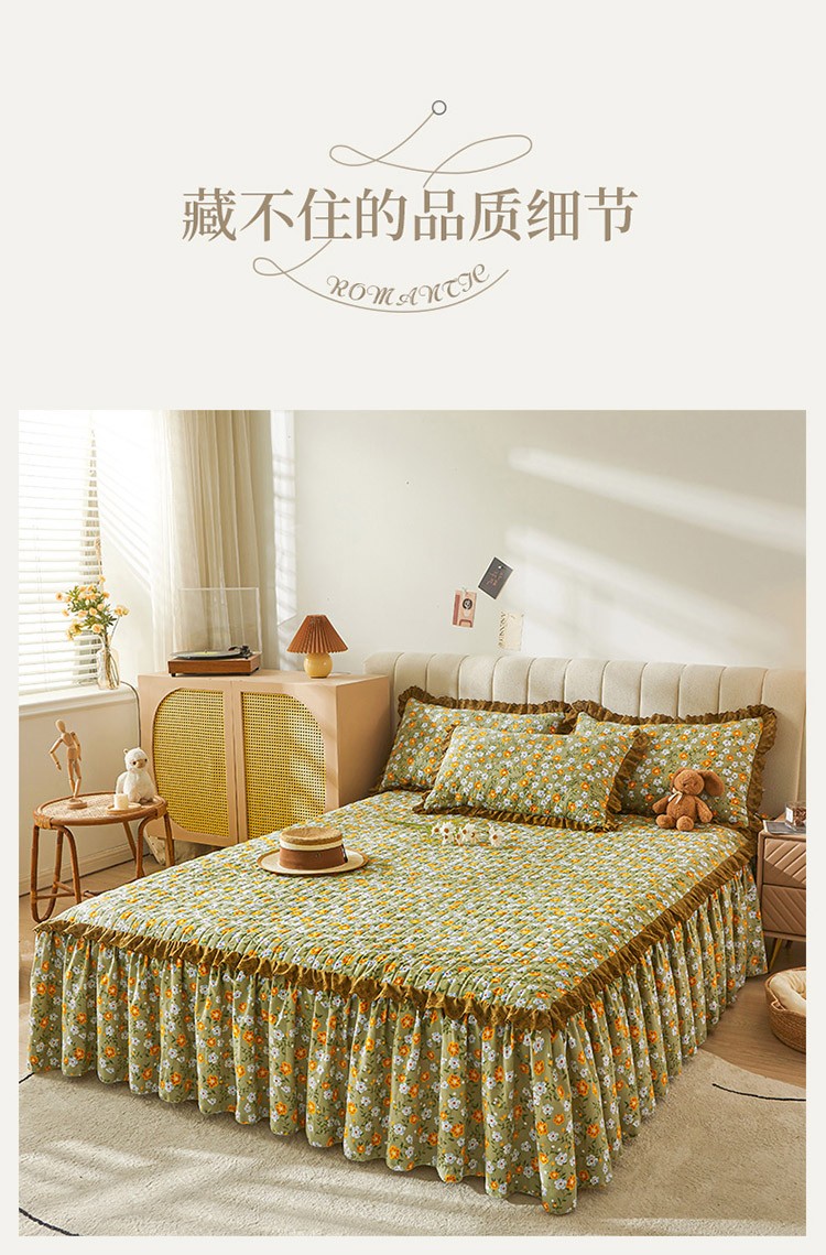 • 91家纺网 家纺一手货源 找家纺 恋尚 2023新款蜜桃棉印花夹棉床裙三件套 映春