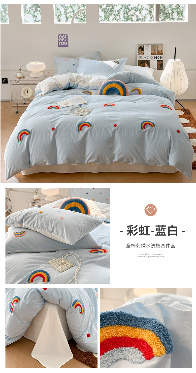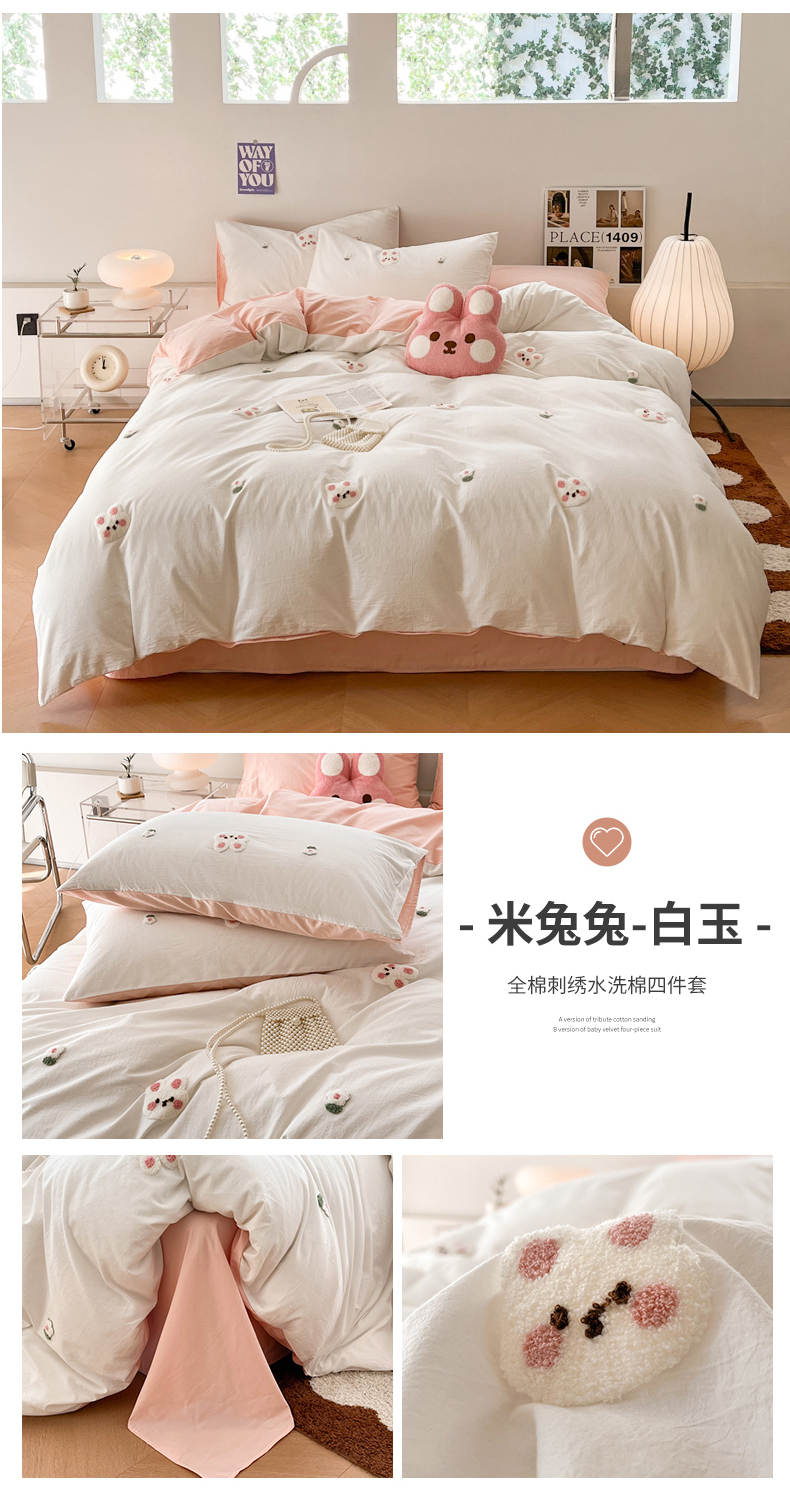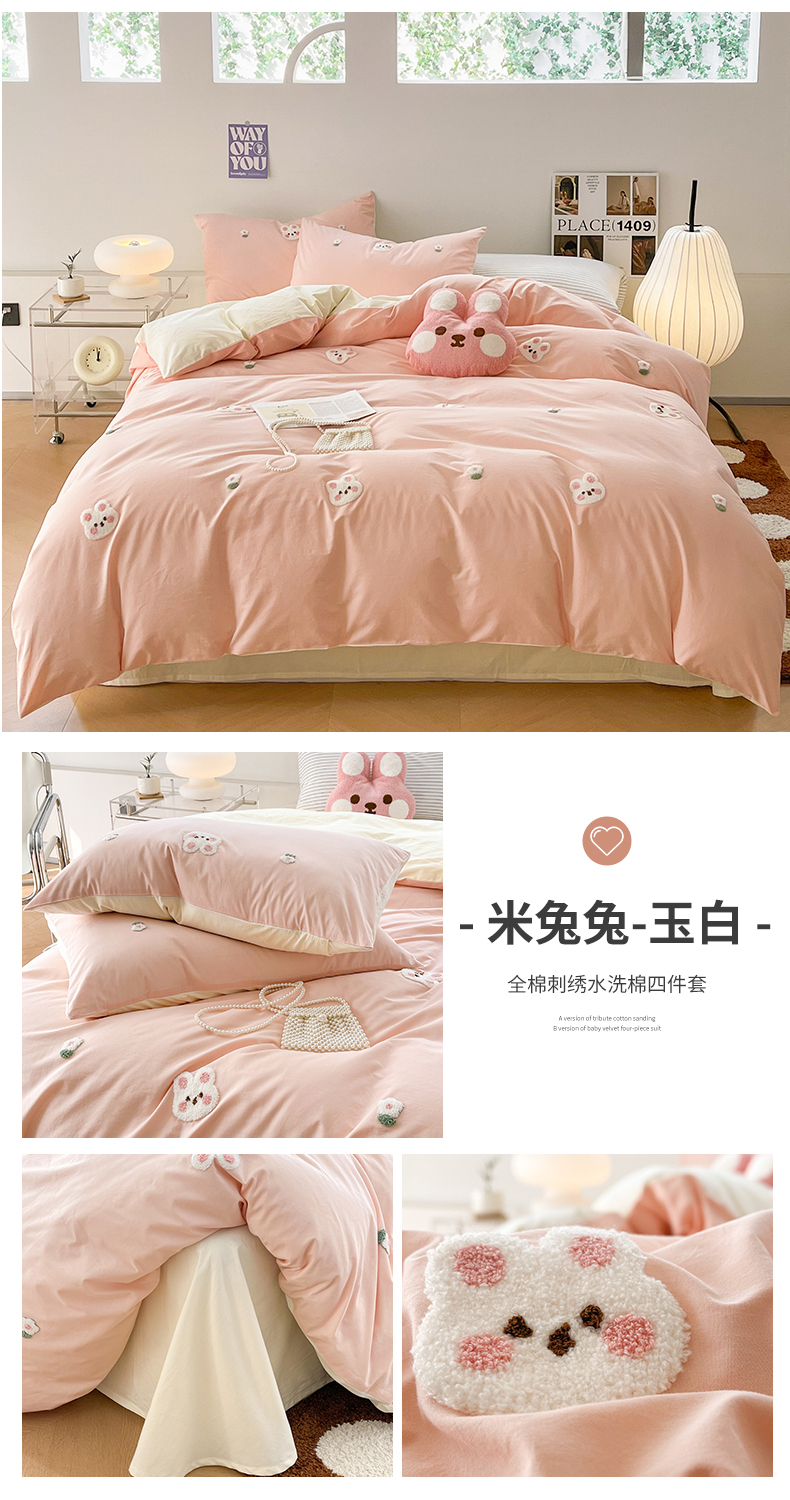 (总)慕尚家纺 2025新款豆豆绒刺绣四件套,大耳狗 白蓝,玫瑰 白粉