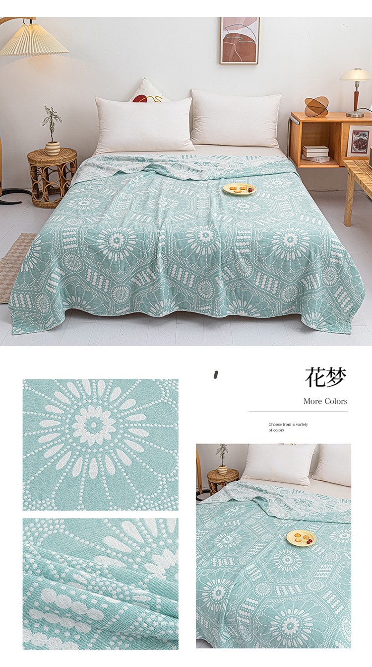 商品名称:卡奥 2024款花系全棉水洗三层纱毛巾被盖毯毛毯 花梦