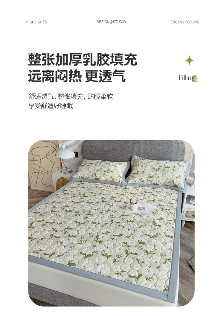 慕尚家纺 2025新款加厚印花乳胶席凉感丝乳胶凉席 花季