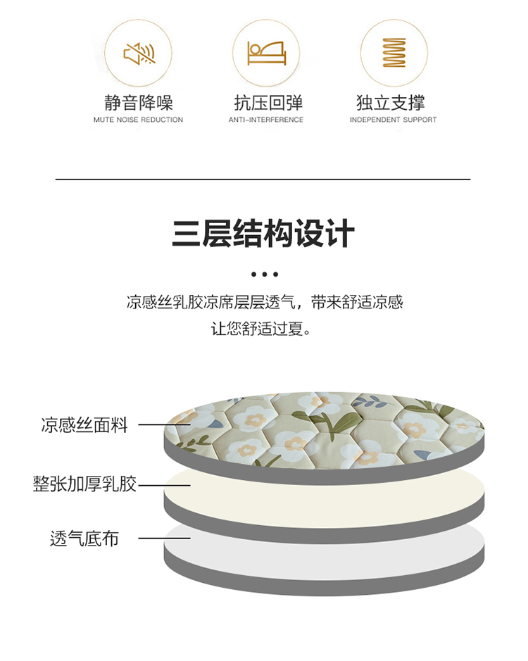 商品名称:慕尚家纺 2025新款加厚印花乳胶席凉感丝乳胶凉席 花季