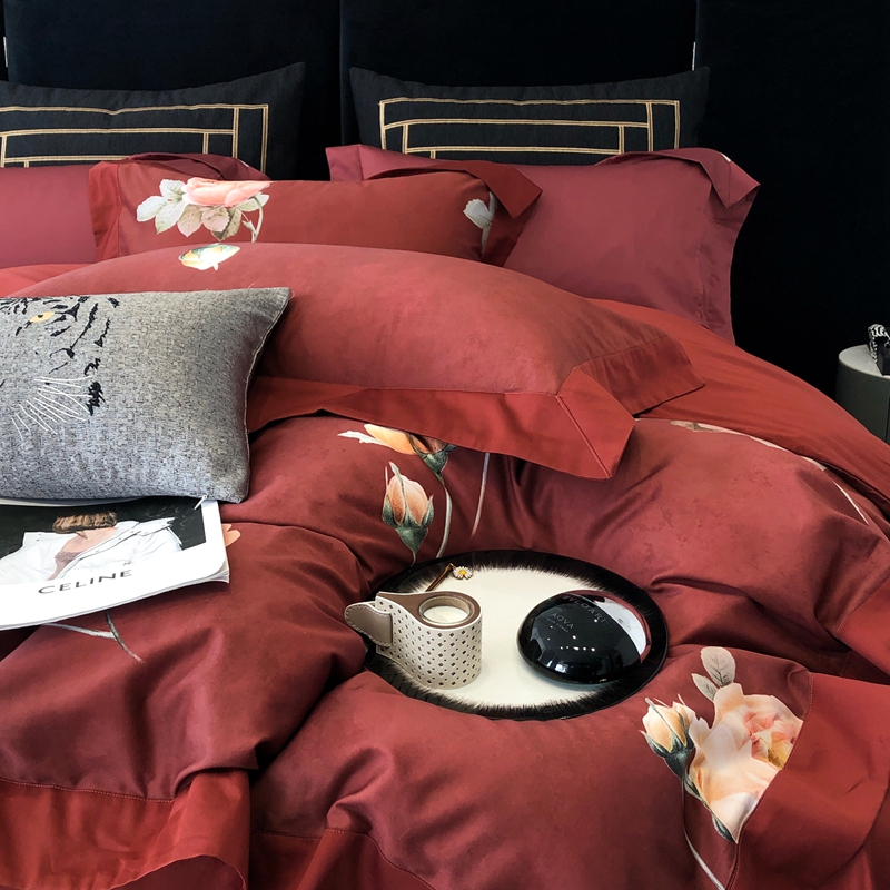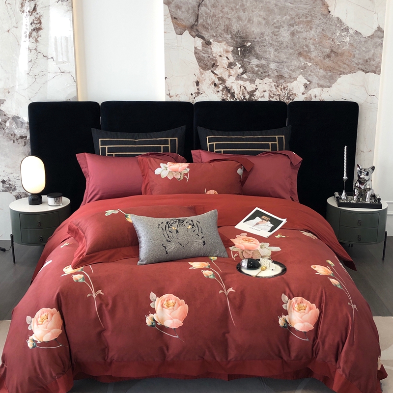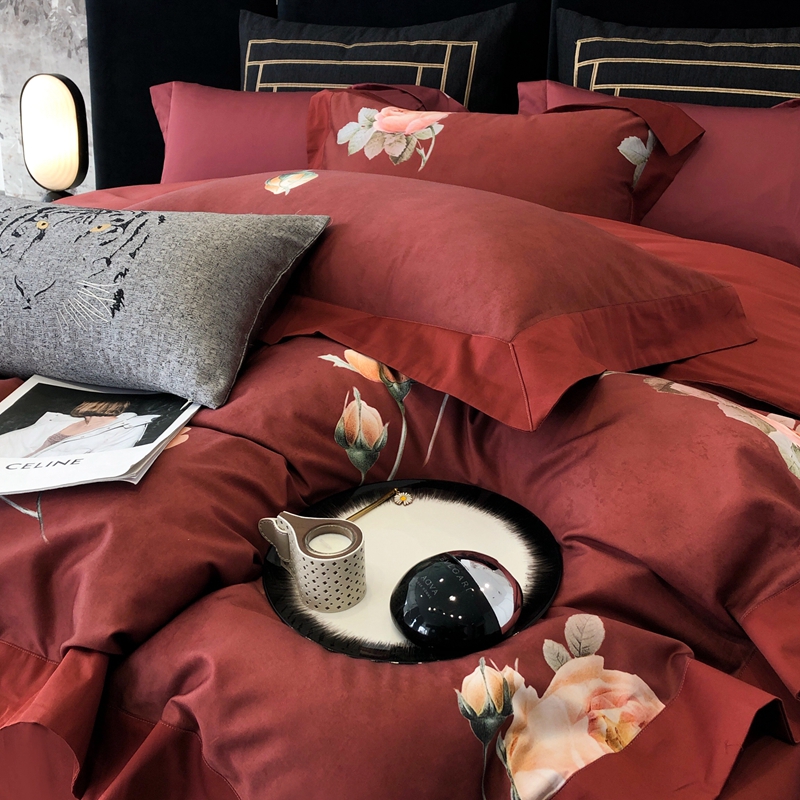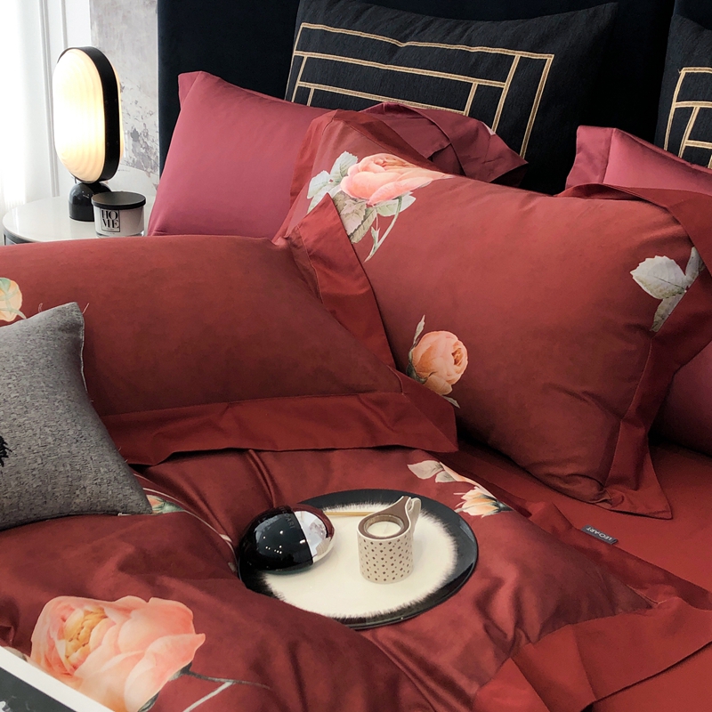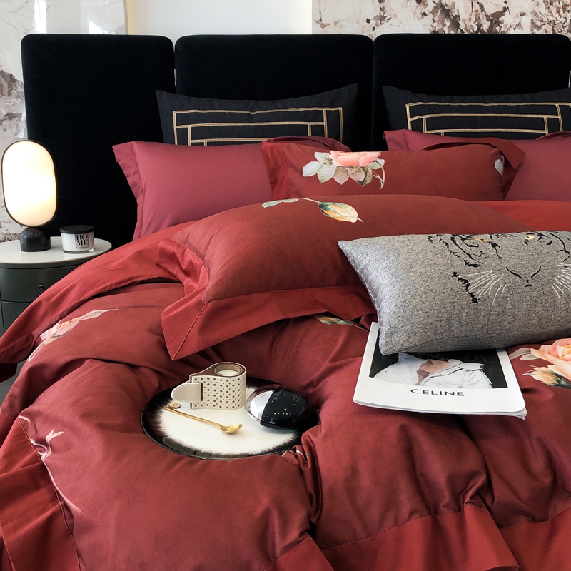 (总)涞澳家纺 2026新款全棉纯棉色织提花(婚庆)四件套,赤韵花影,绯花简语,吉庆红韵,轻红漫花,朱砂暖眠