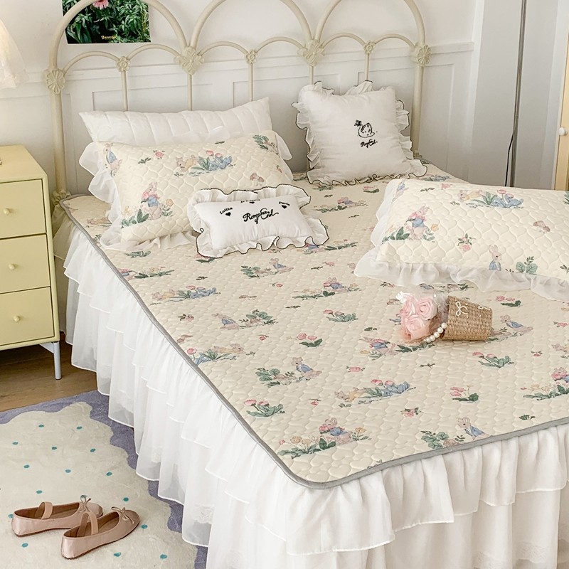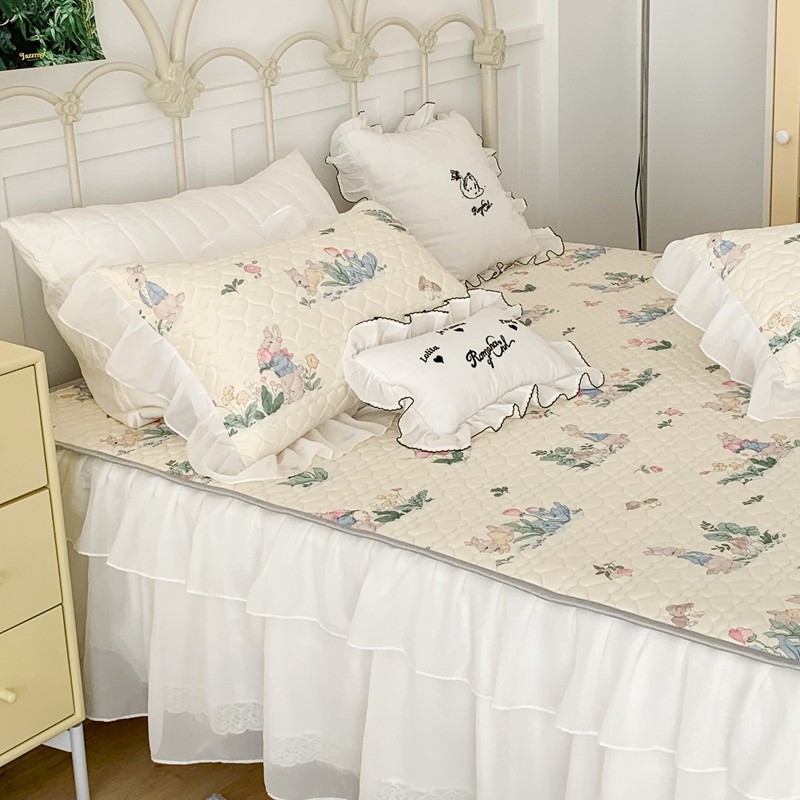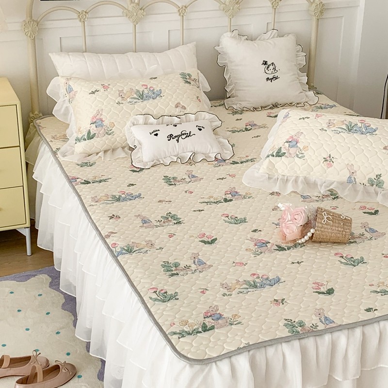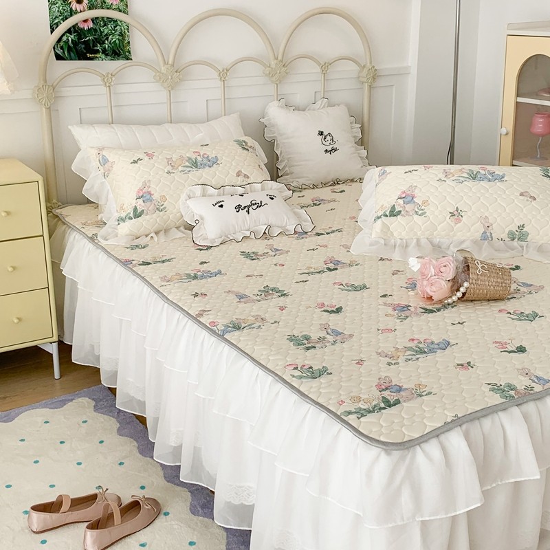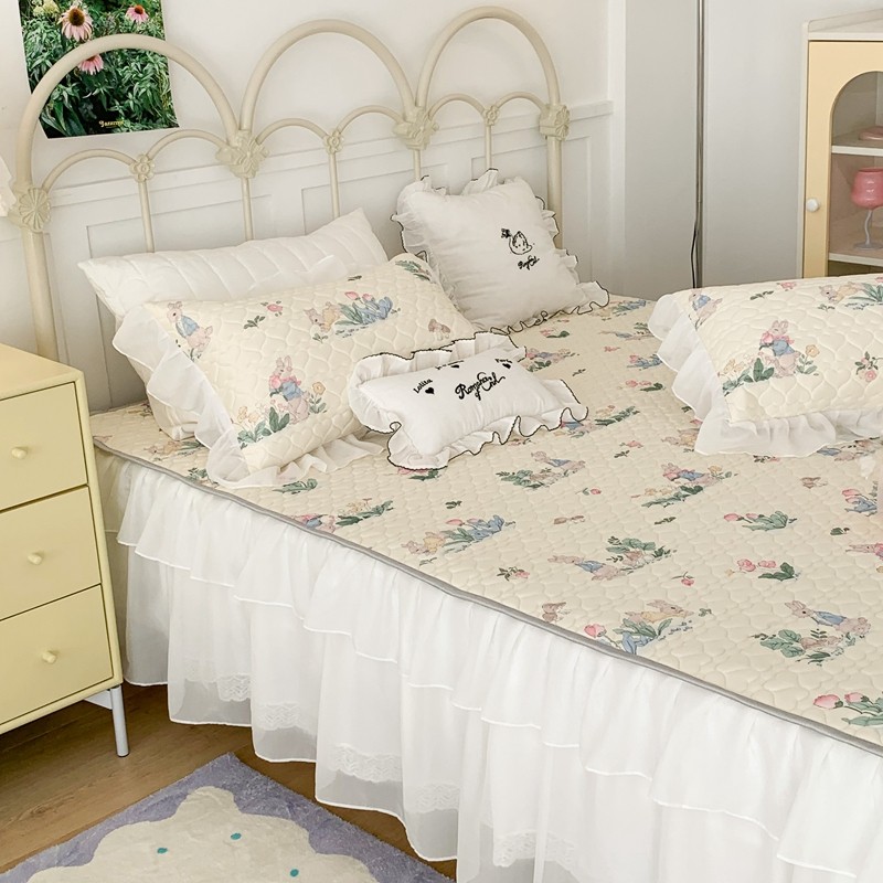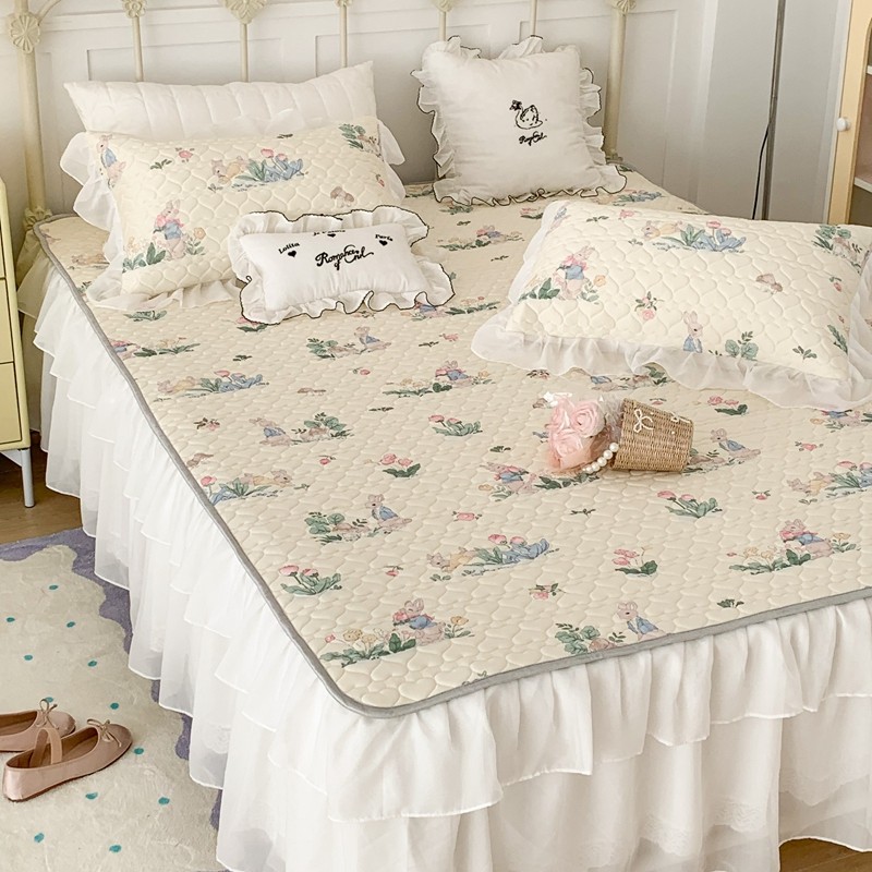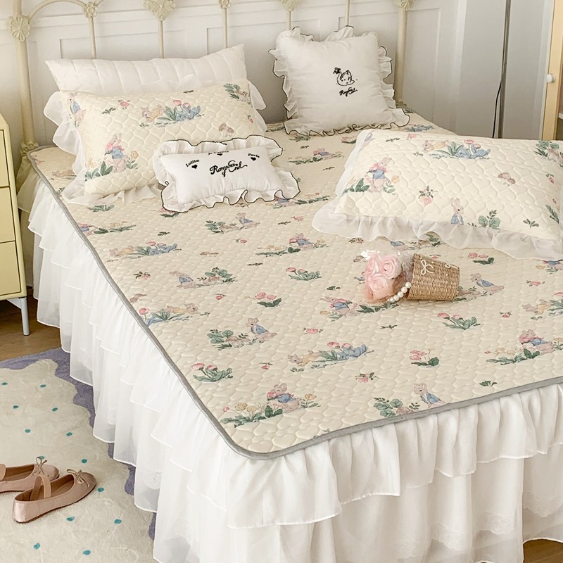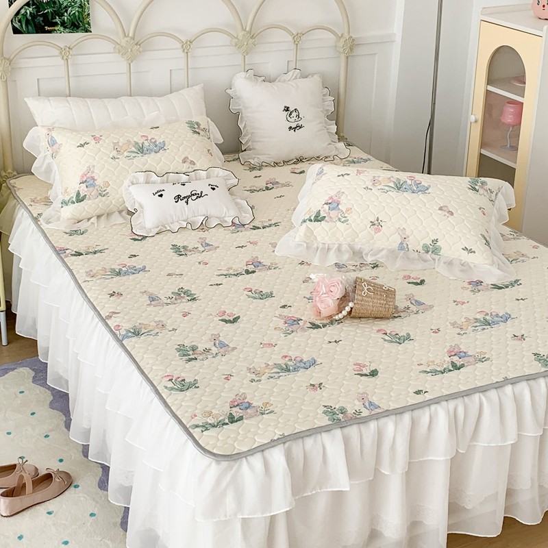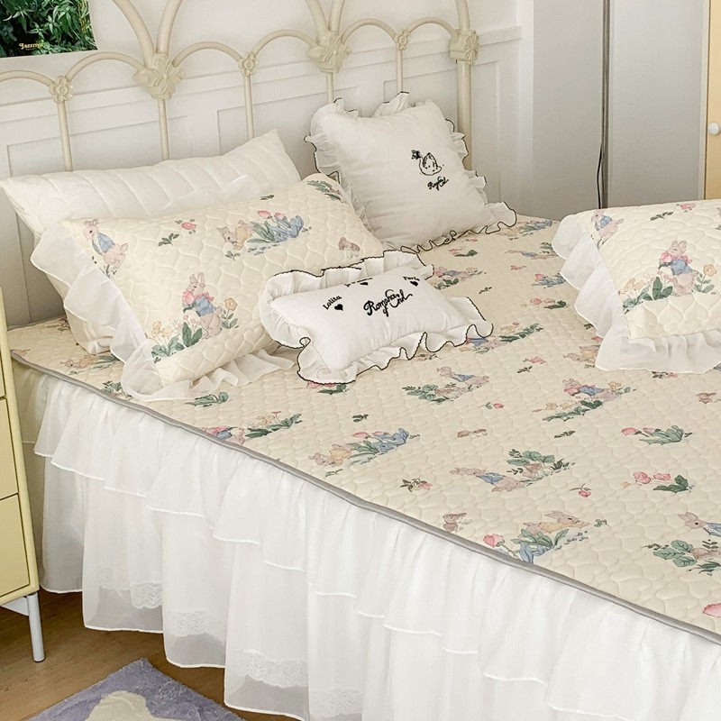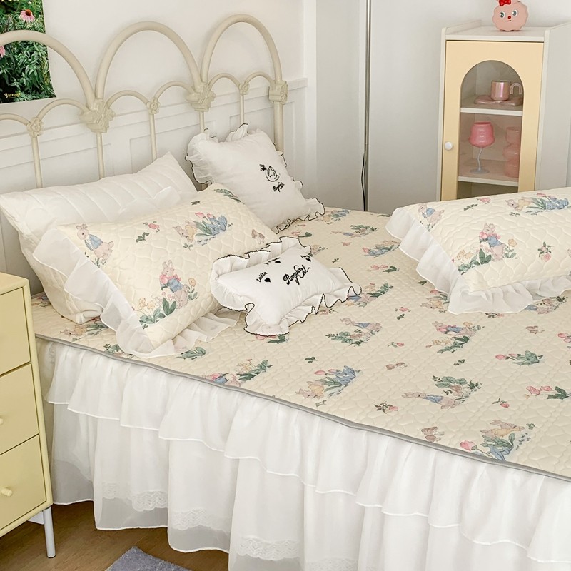 昔可 2023新款第二批双层床裙乳胶三件套 可爱小清新风 花丛小兔