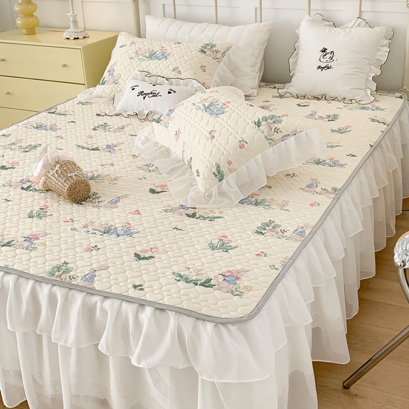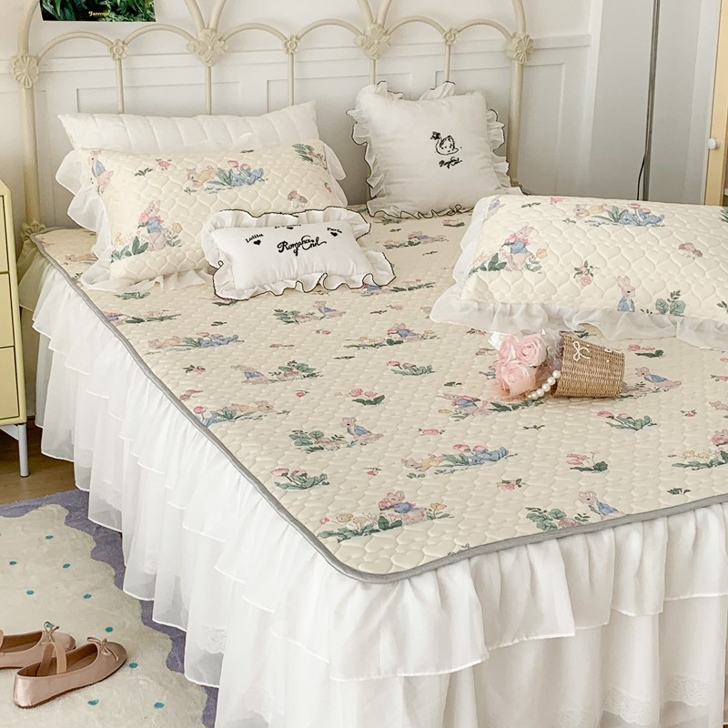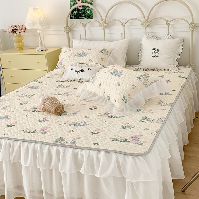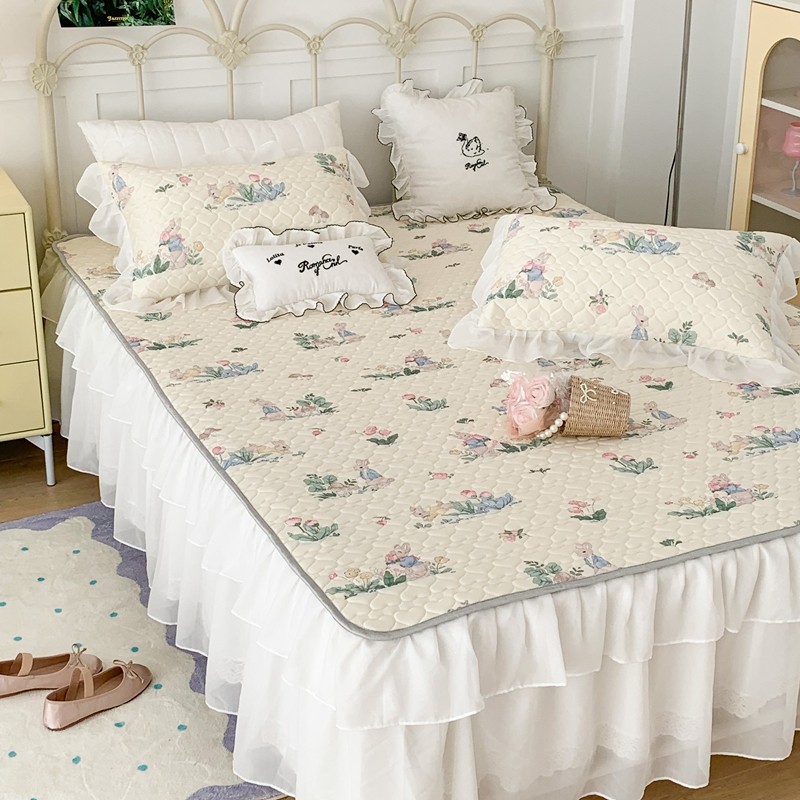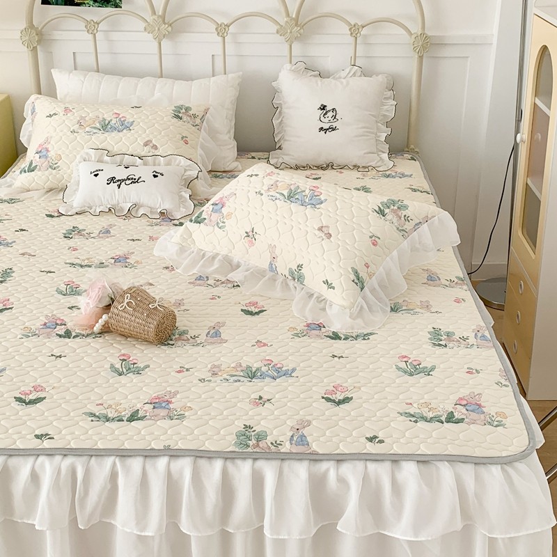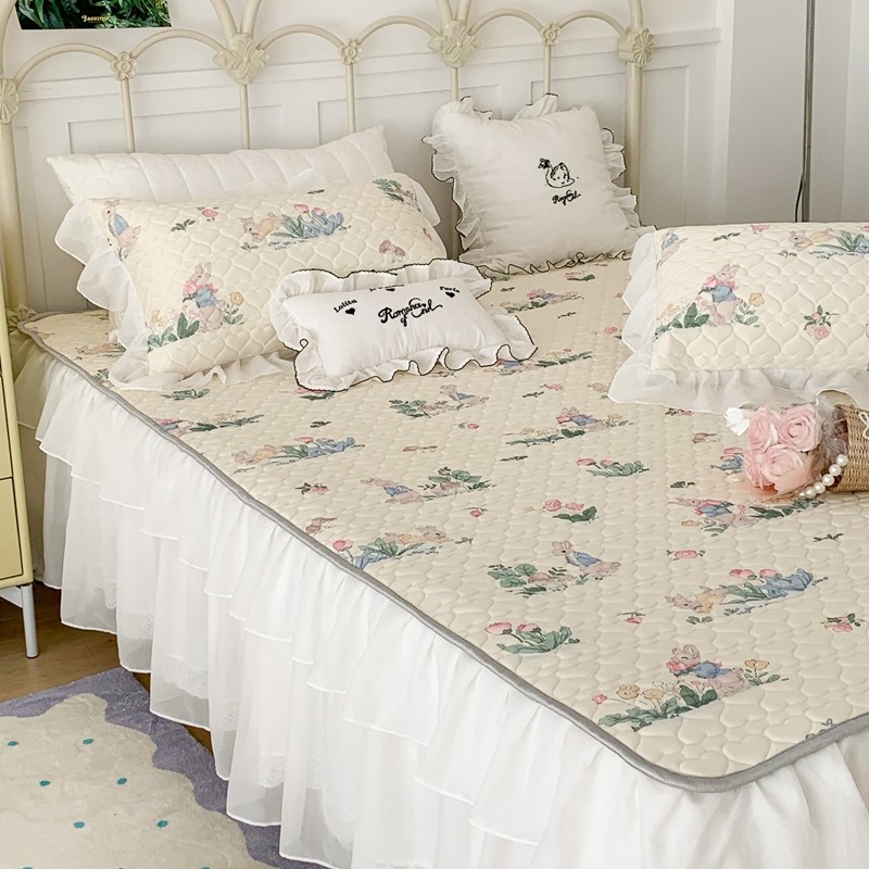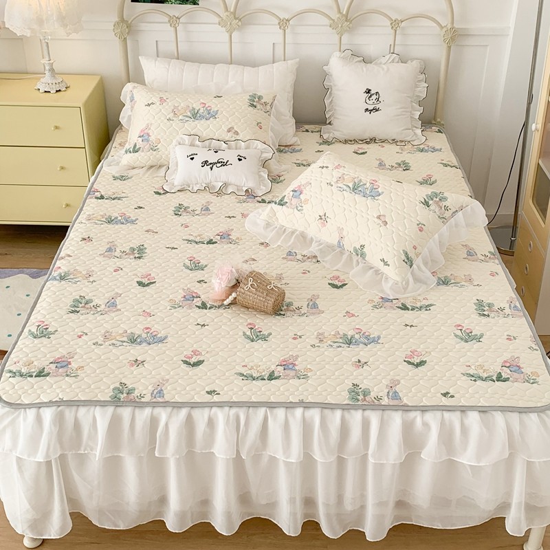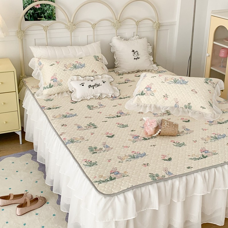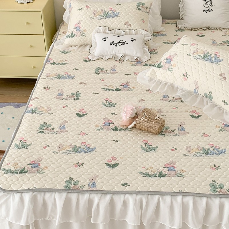 昔可 2023新款第二批双层床裙乳胶三件套 可爱小清新风 花丛小兔
