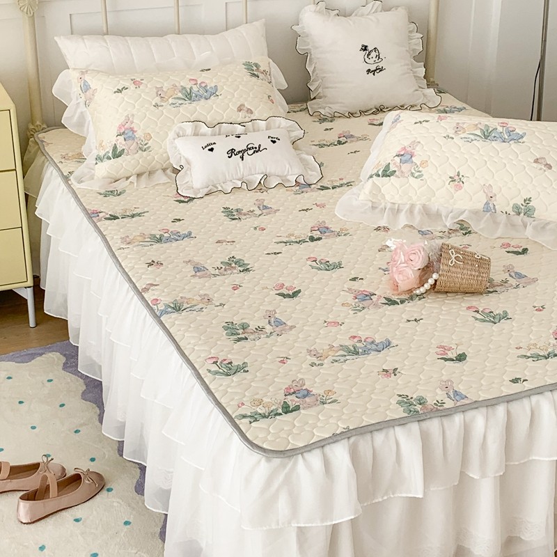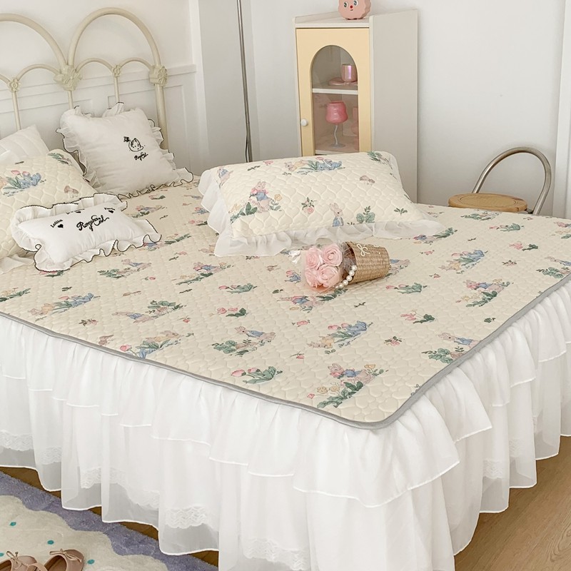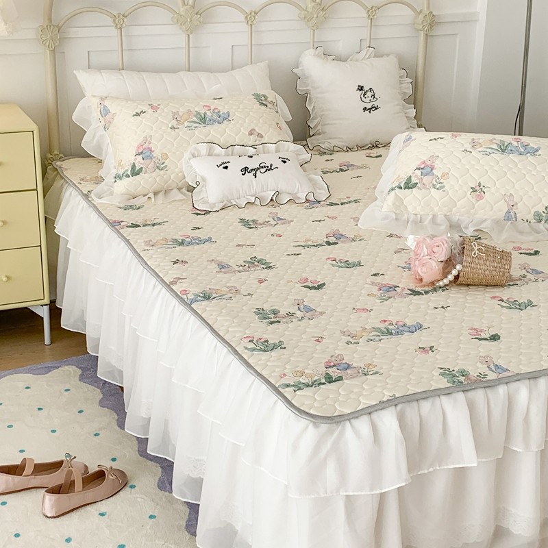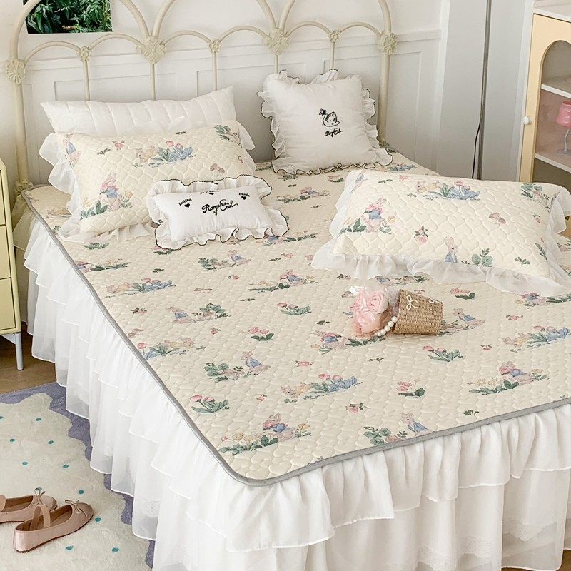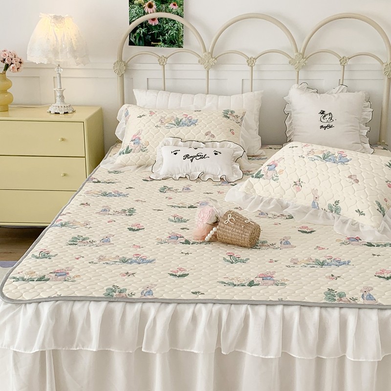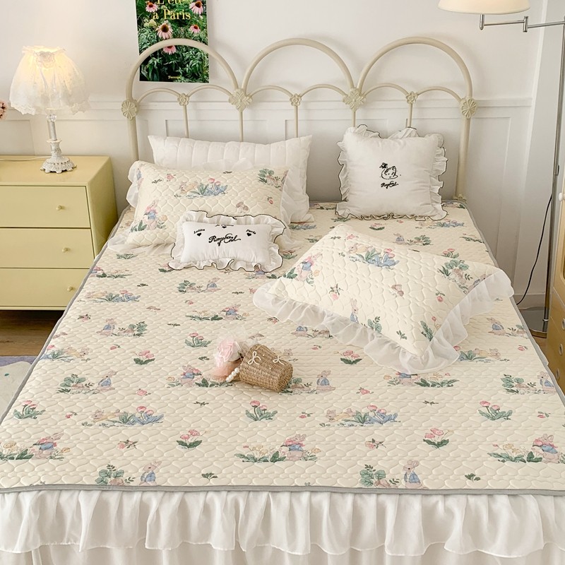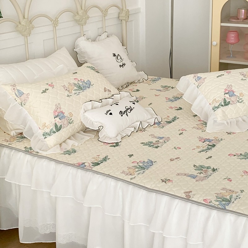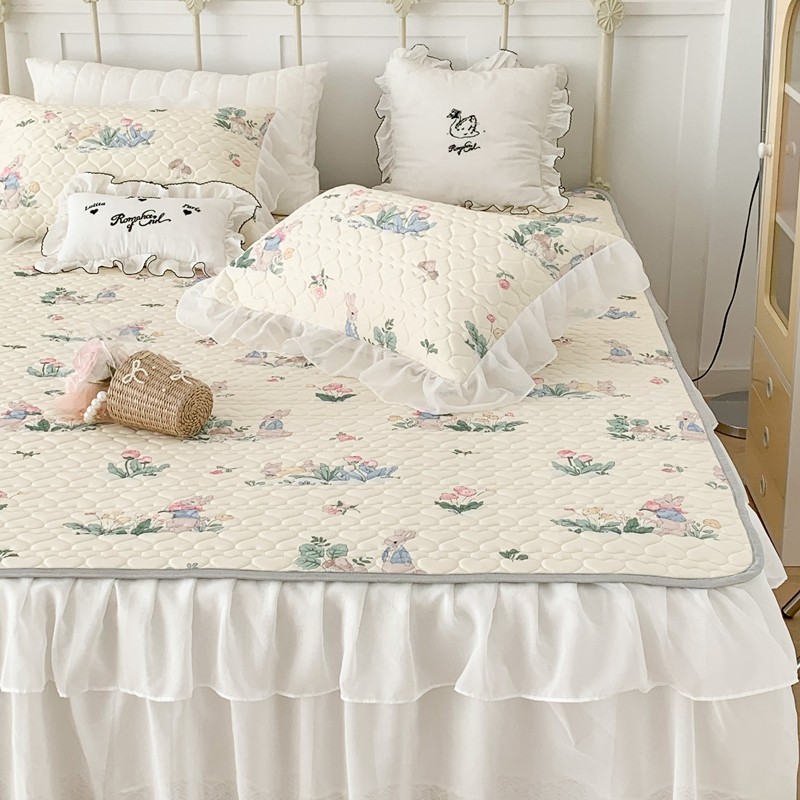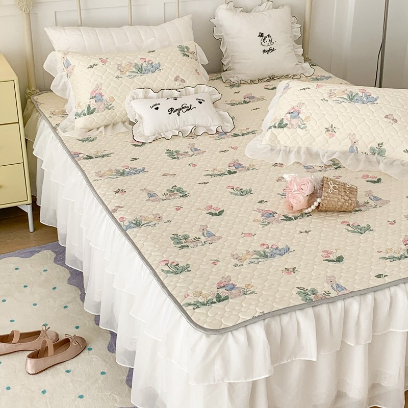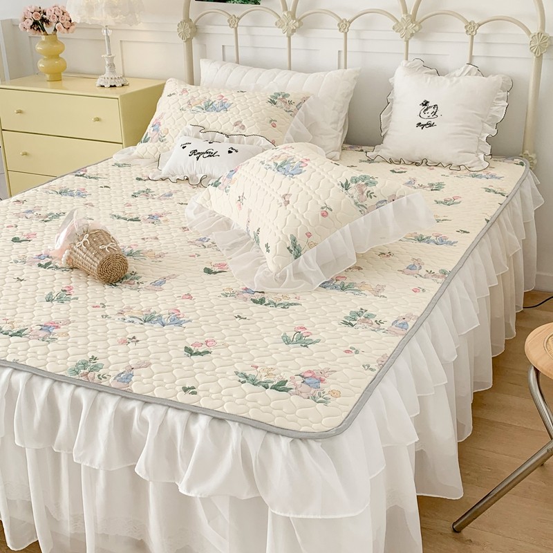 昔可 2023新款第二批双层床裙乳胶三件套 可爱小清新风 花丛小兔