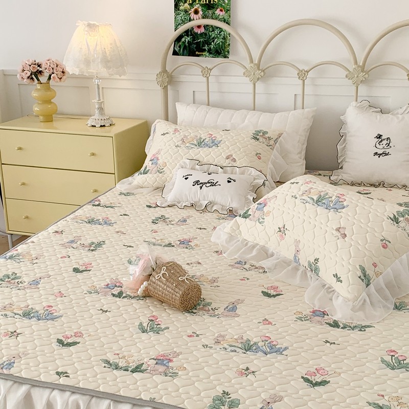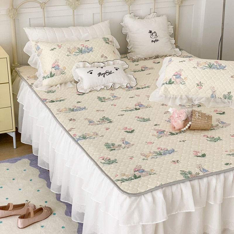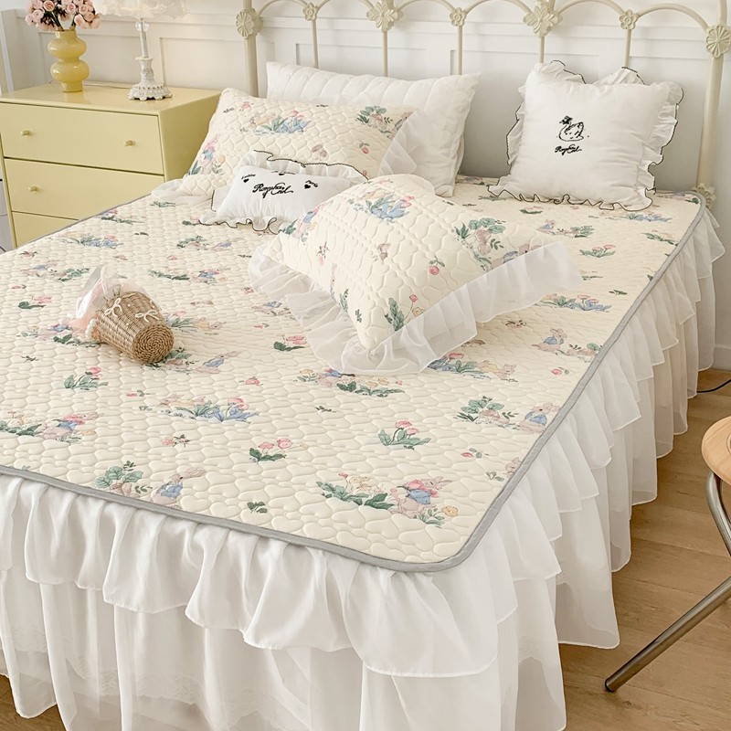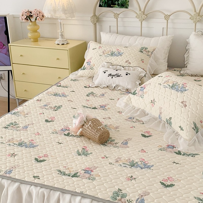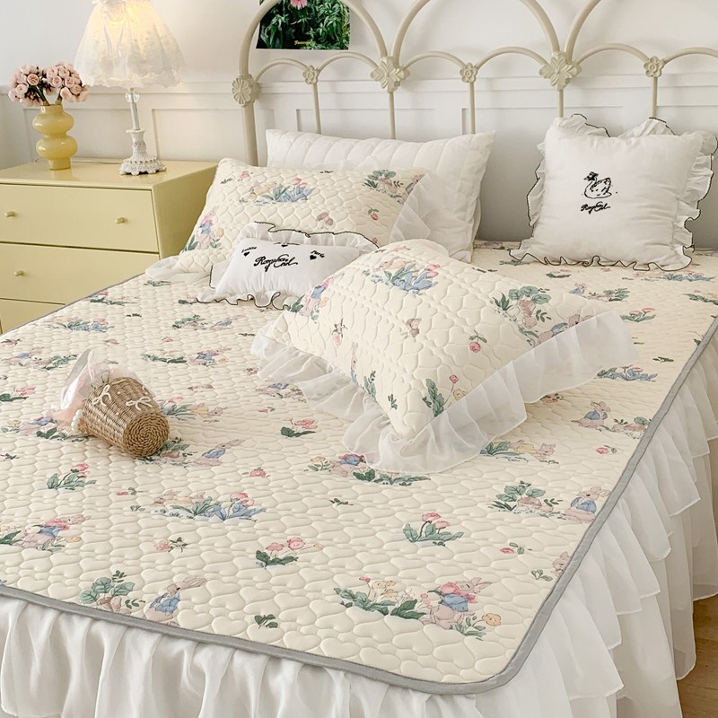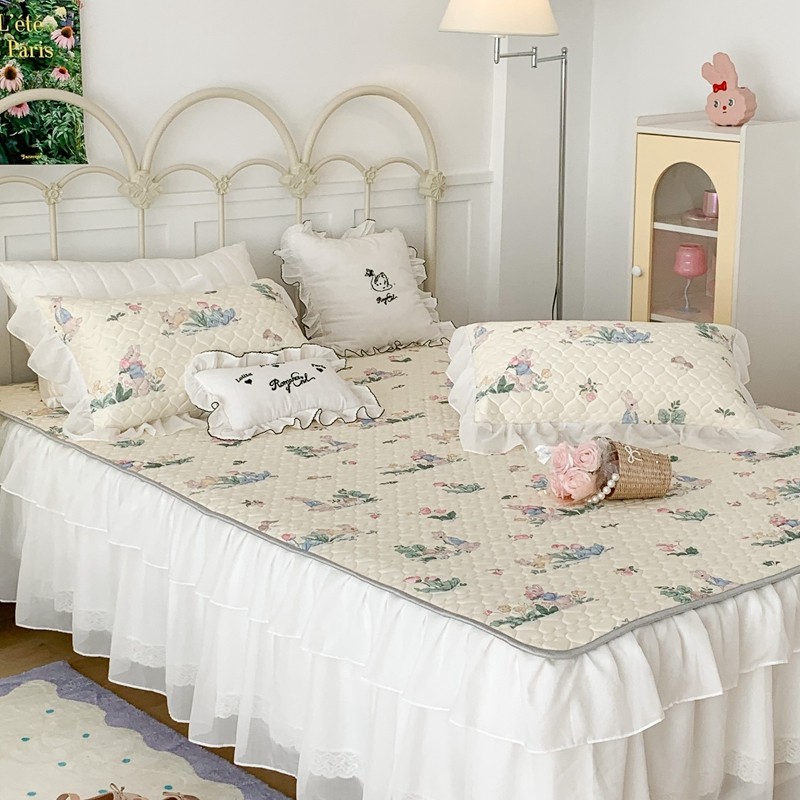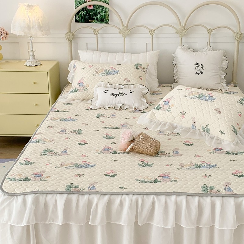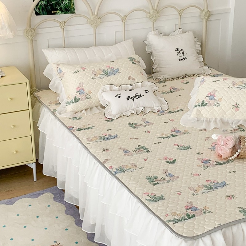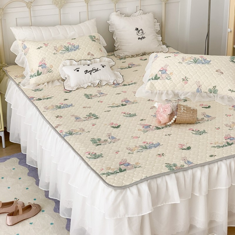 昔可 2023新款第二批双层床裙乳胶三件套 可爱小清新风 花丛小兔
