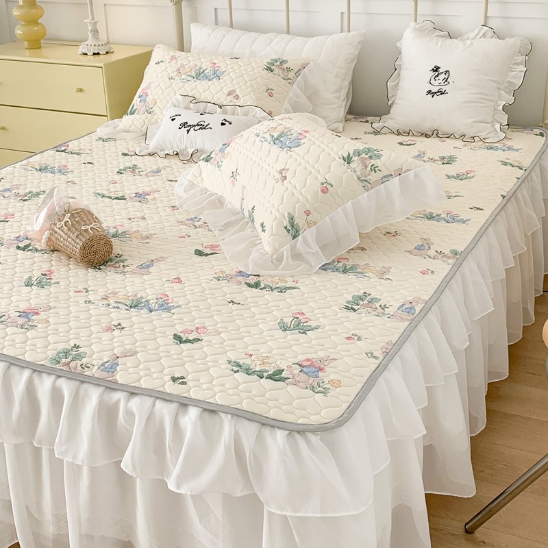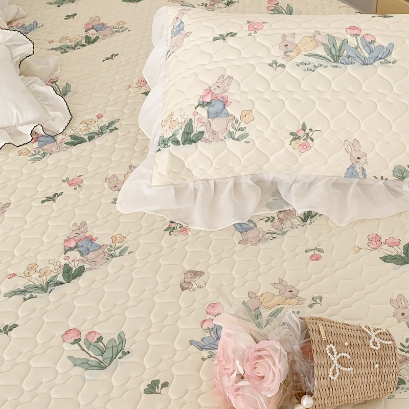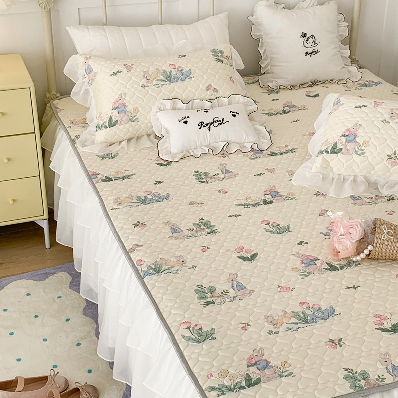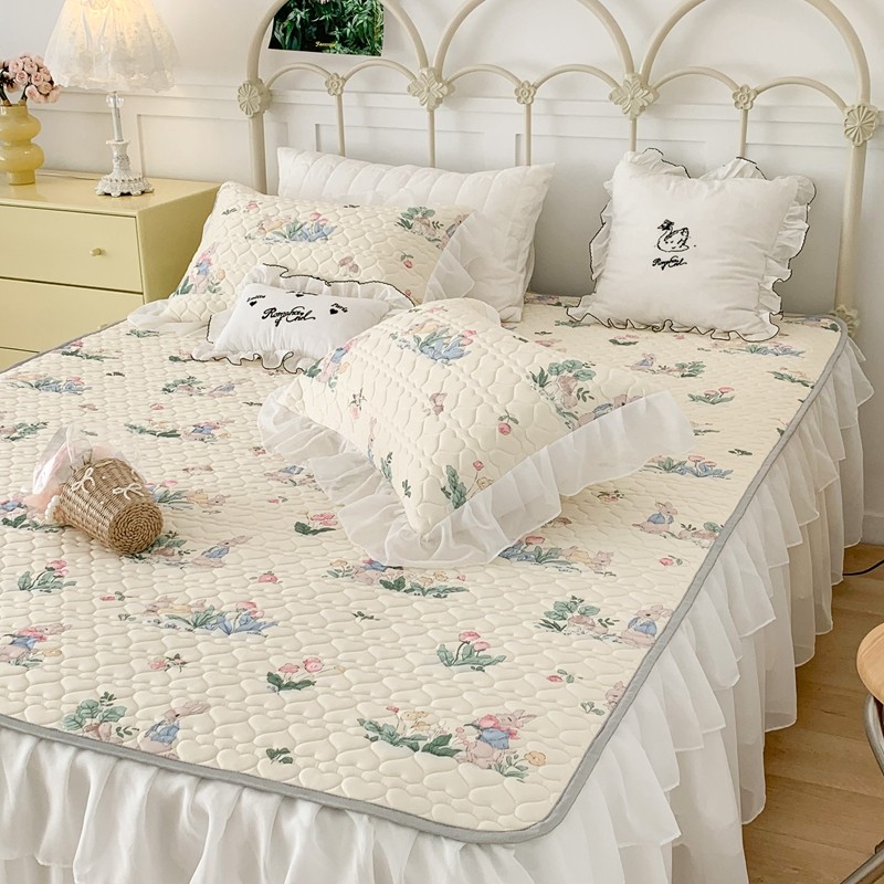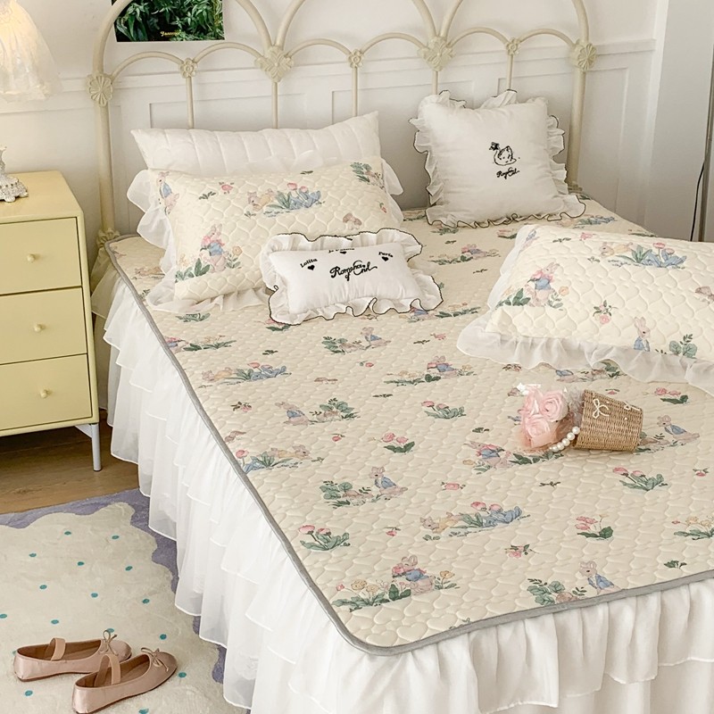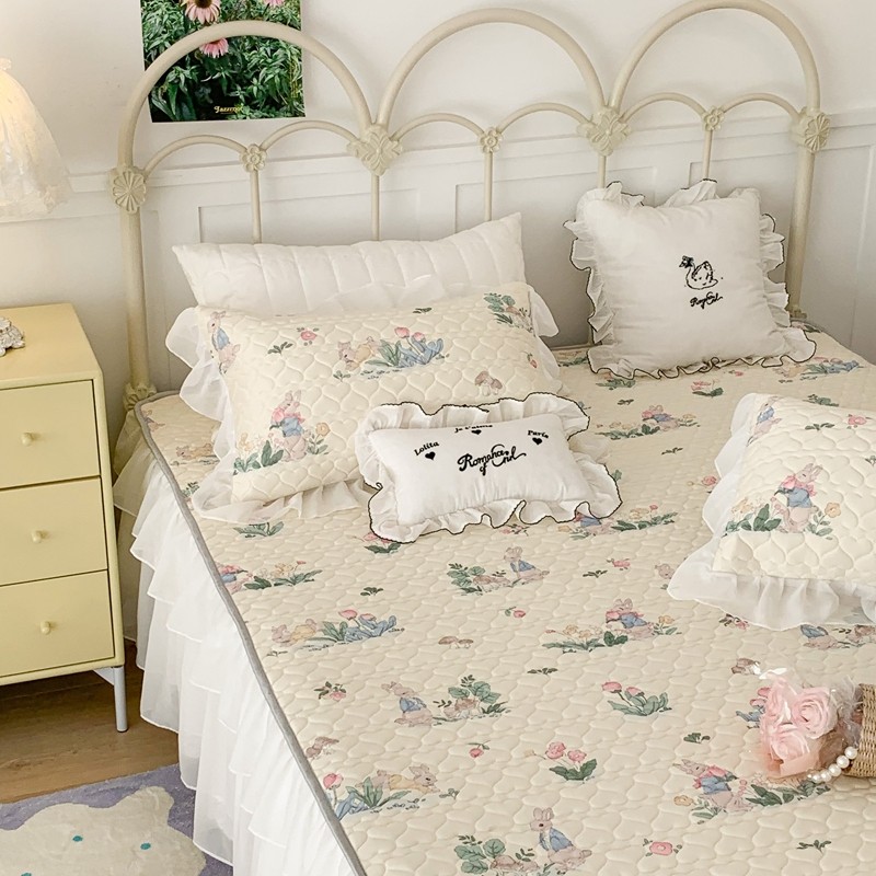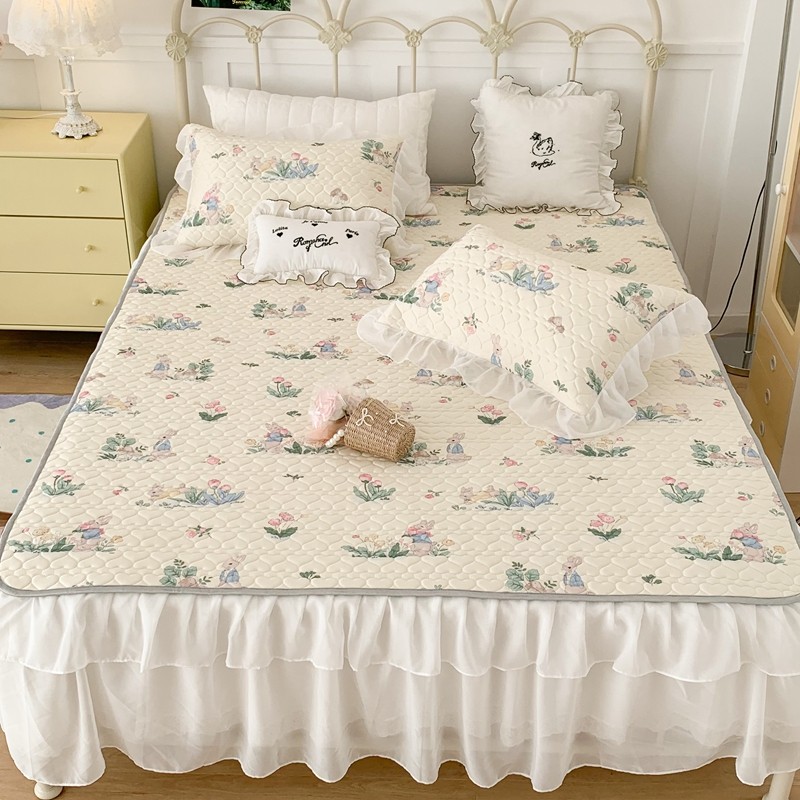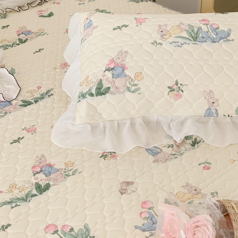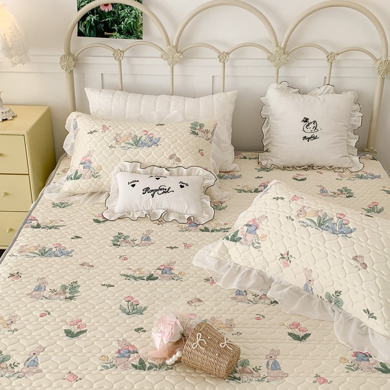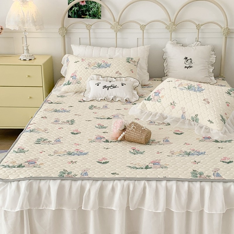 昔可 2023新款第二批双层床裙乳胶三件套 可爱小清新风 花丛小兔