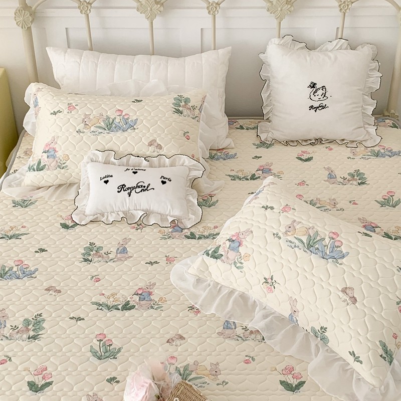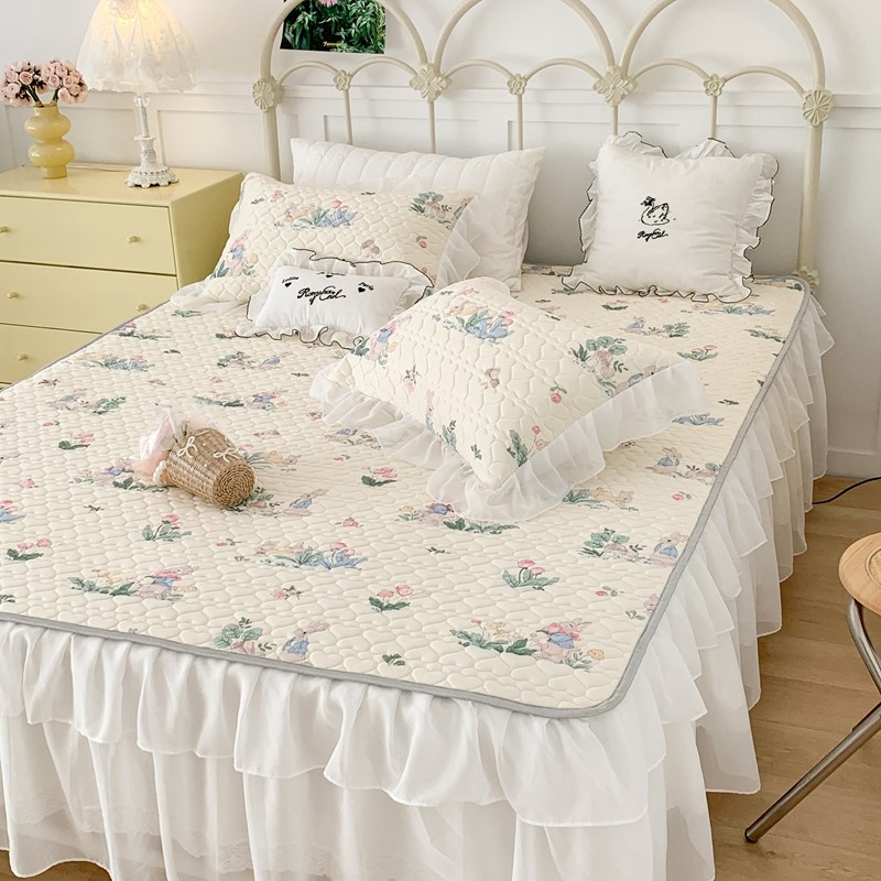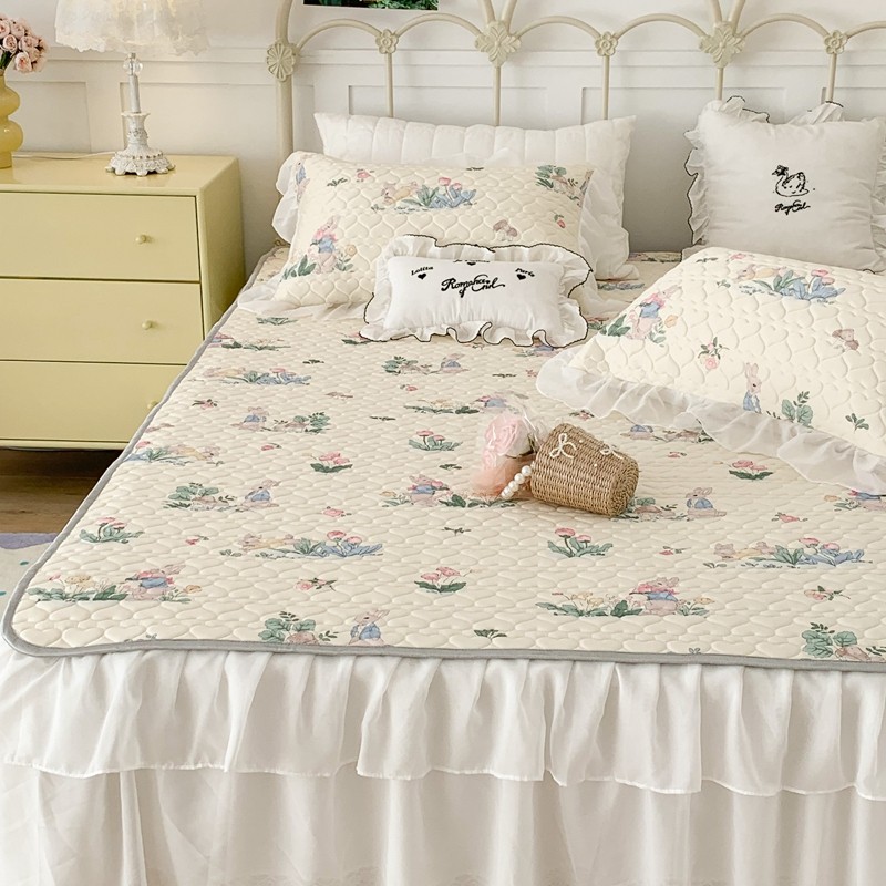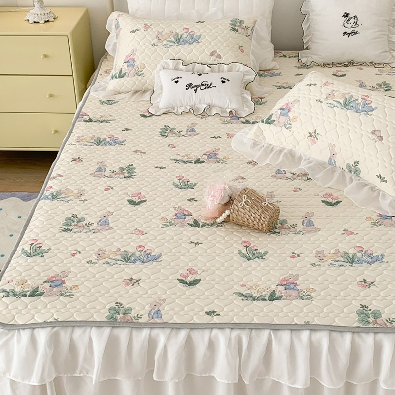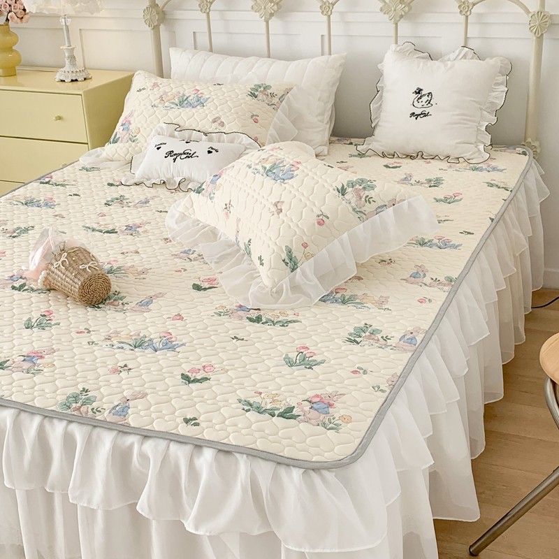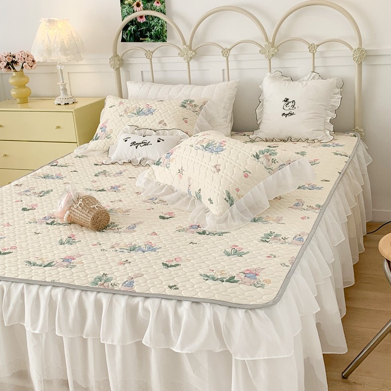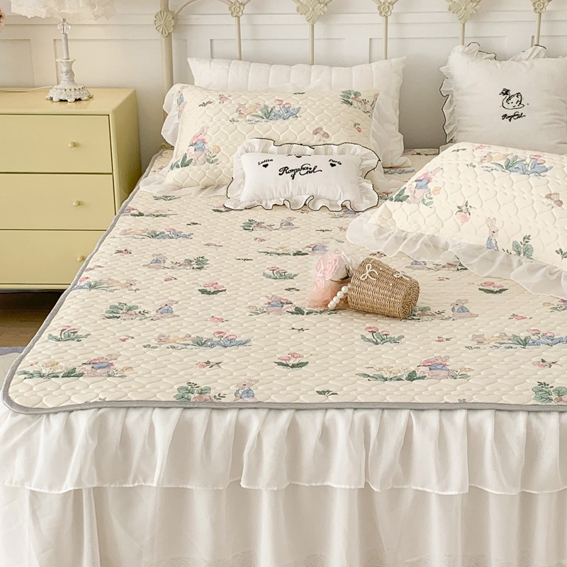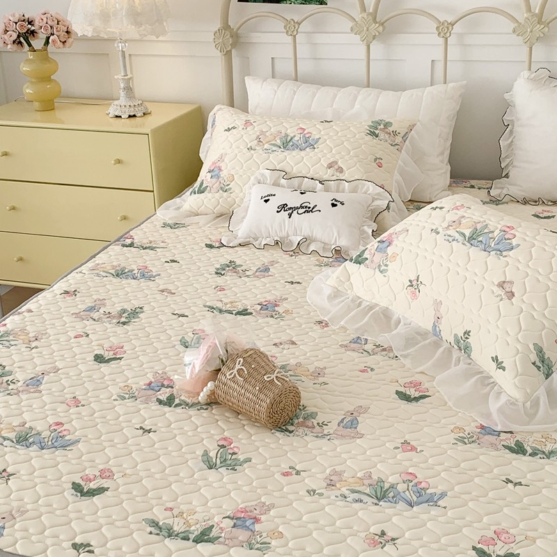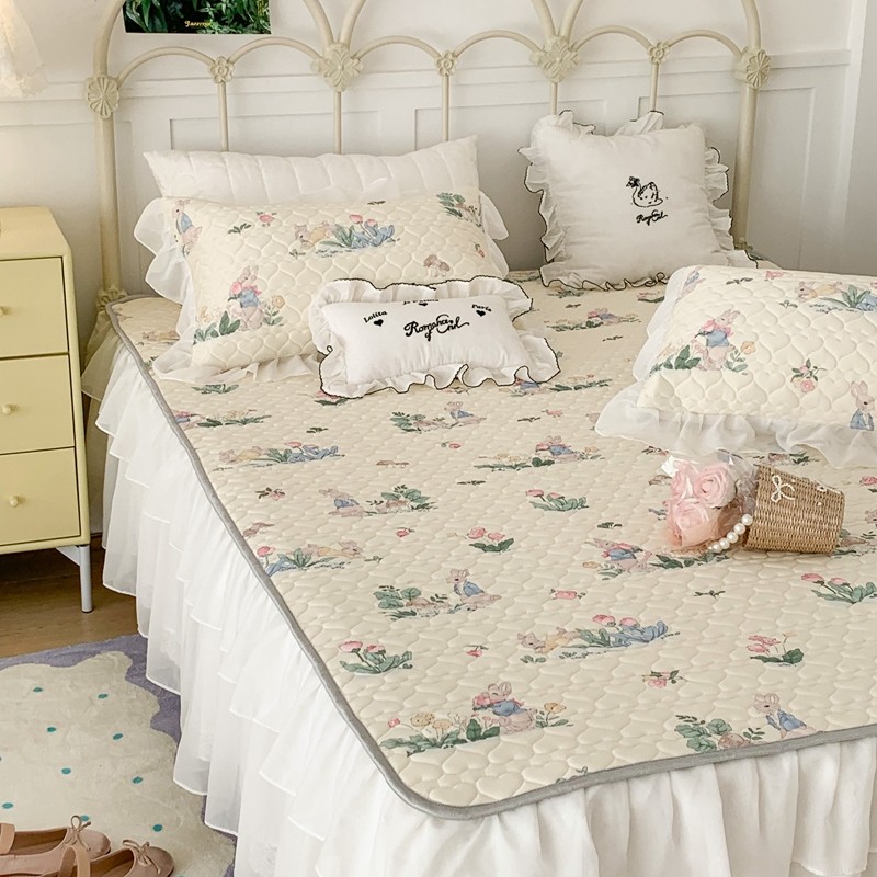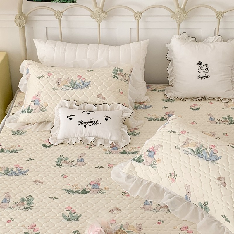 昔可 2023新款第二批双层床裙乳胶三件套 可爱小清新风 花丛小兔