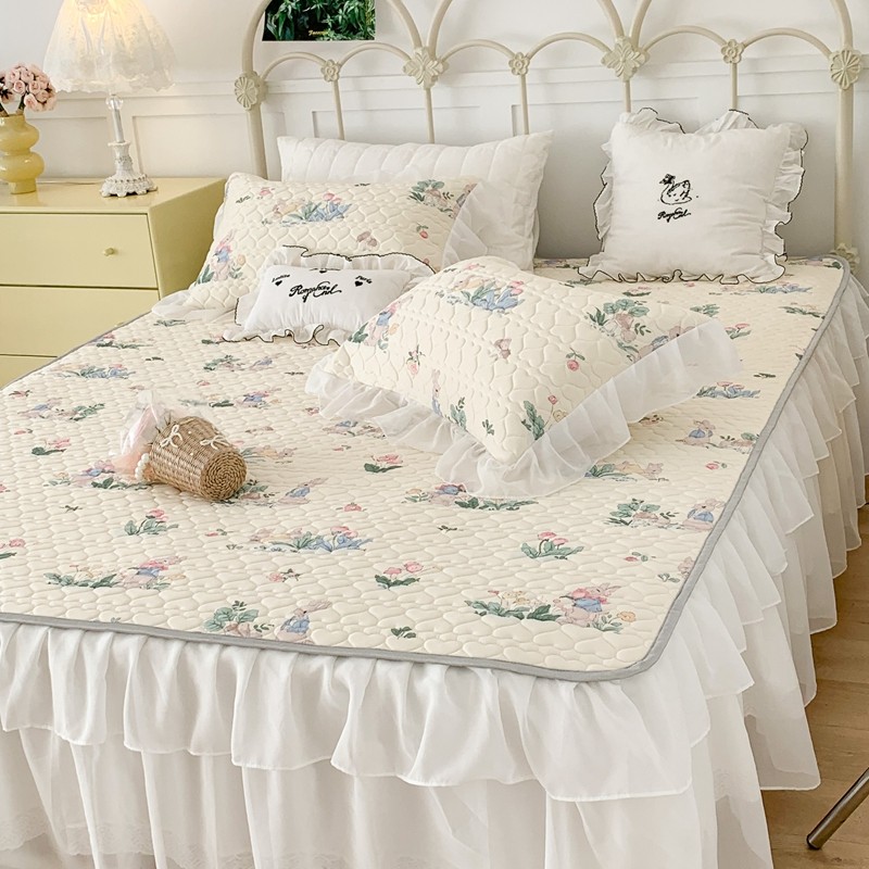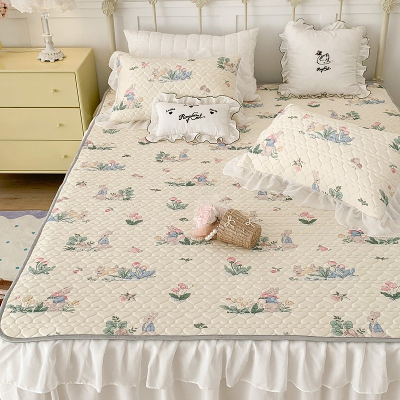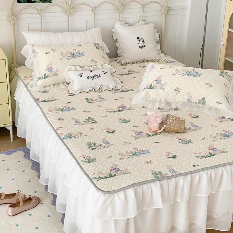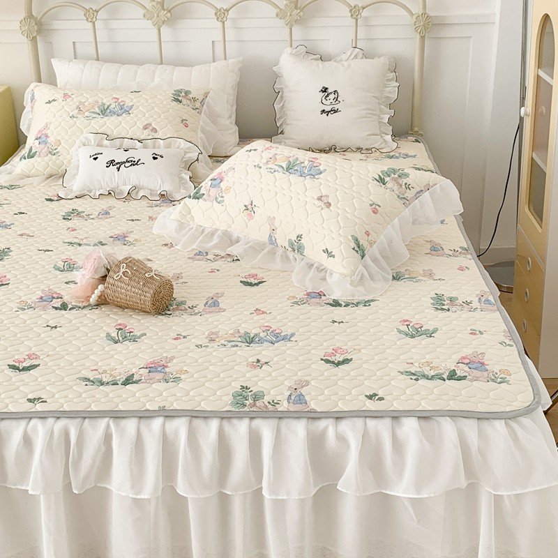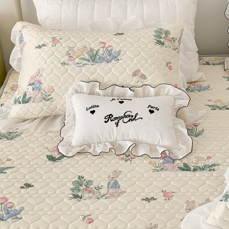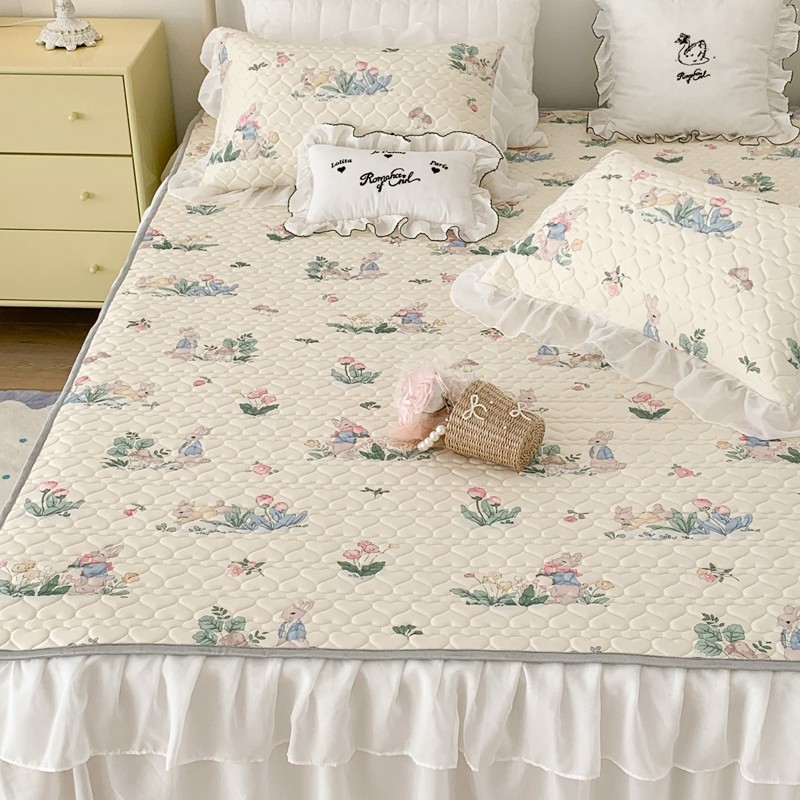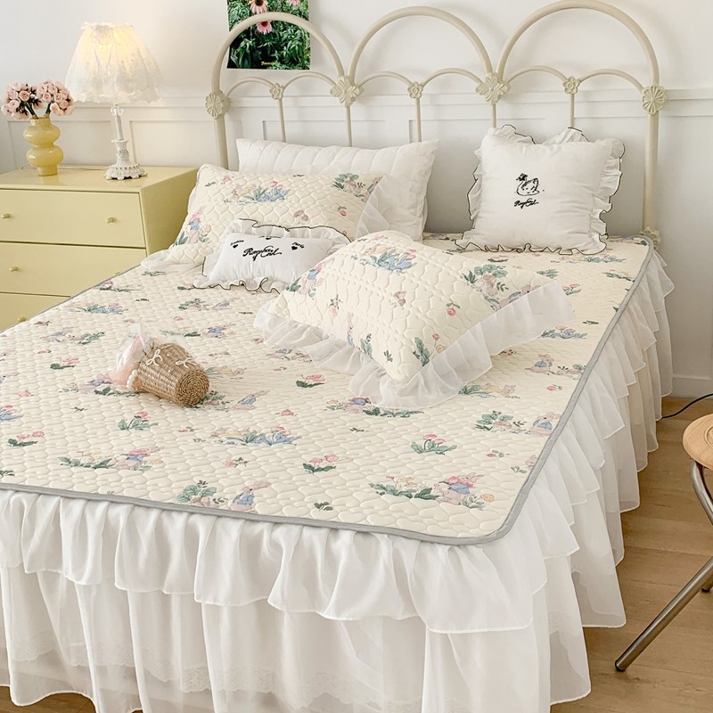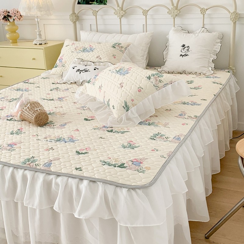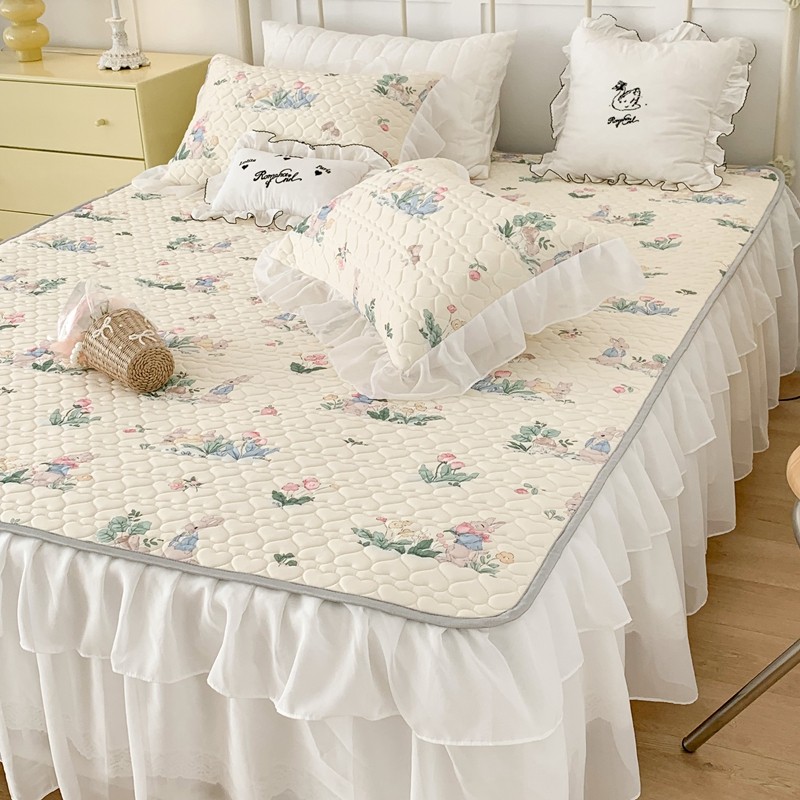 昔可 2023新款第二批双层床裙乳胶三件套 可爱小清新风 花丛小兔