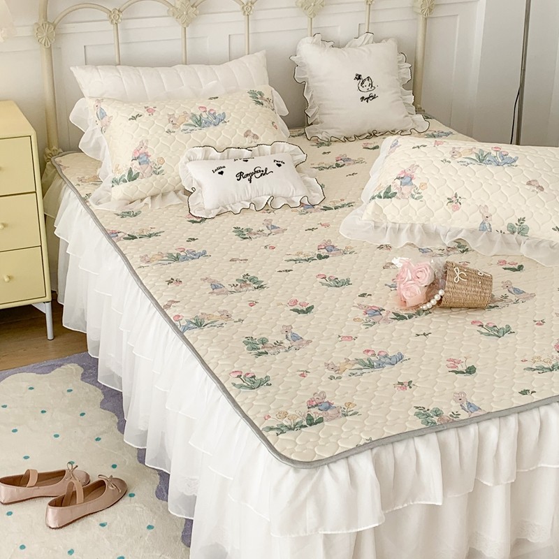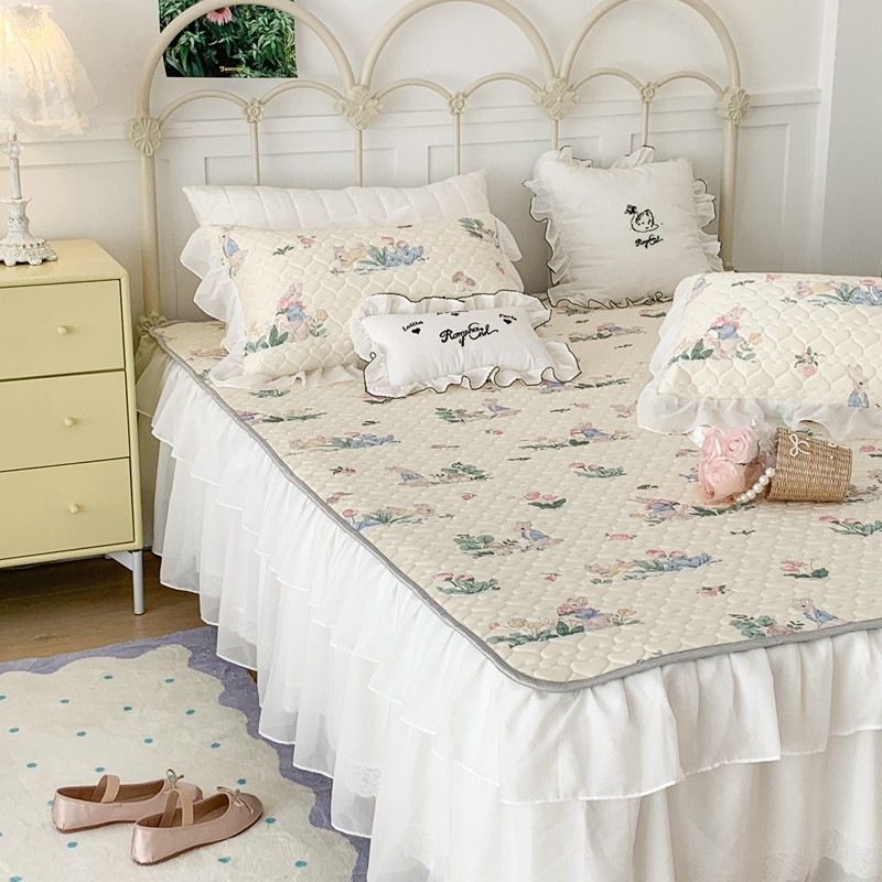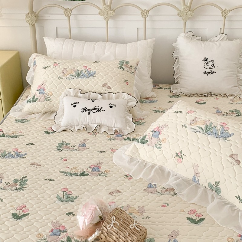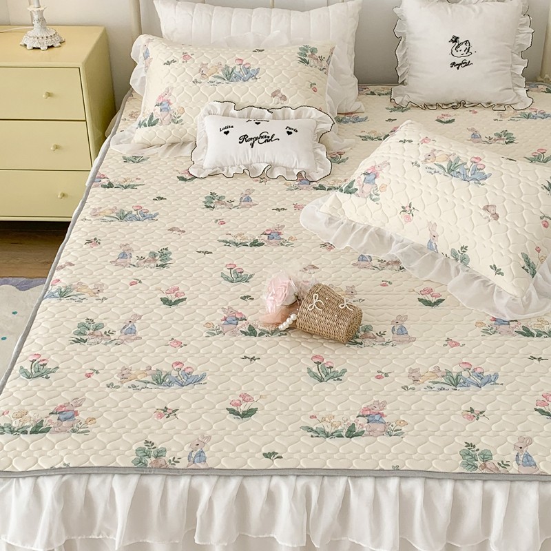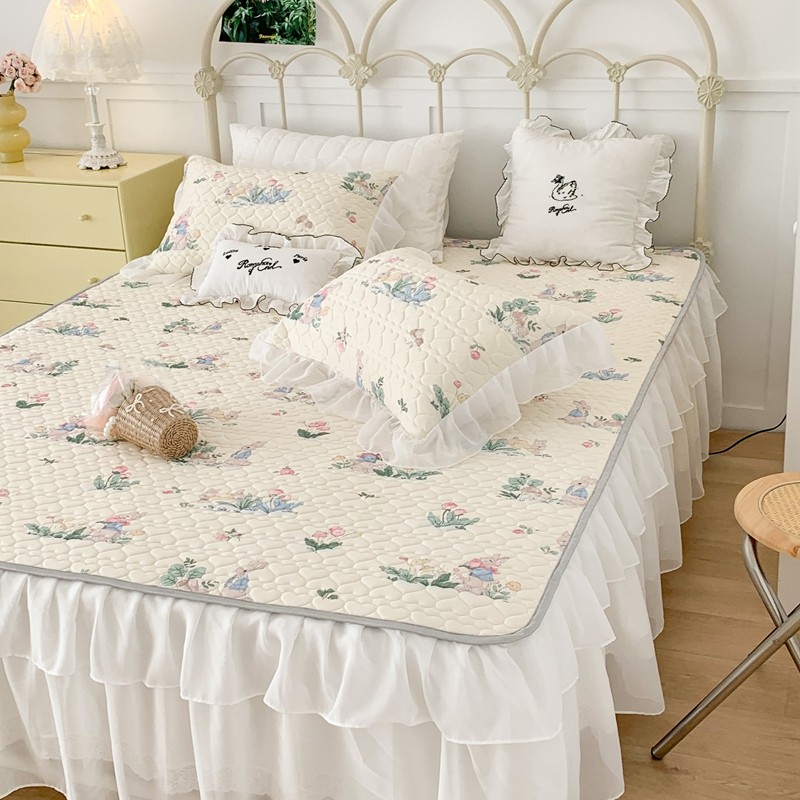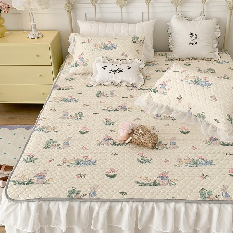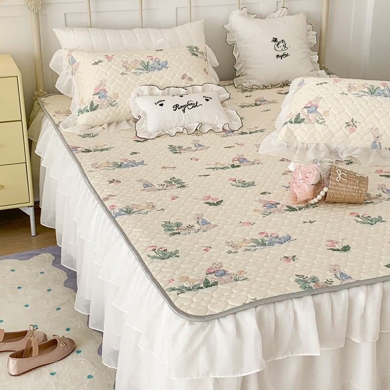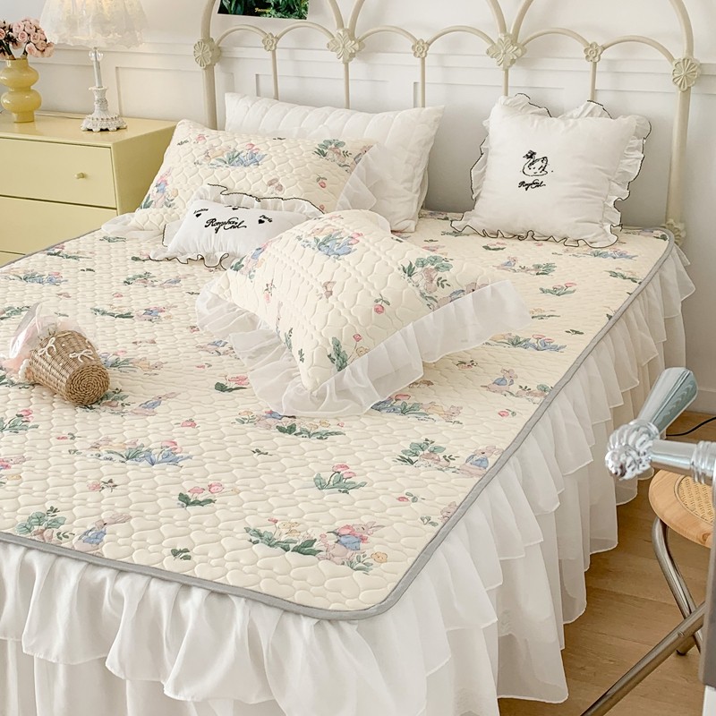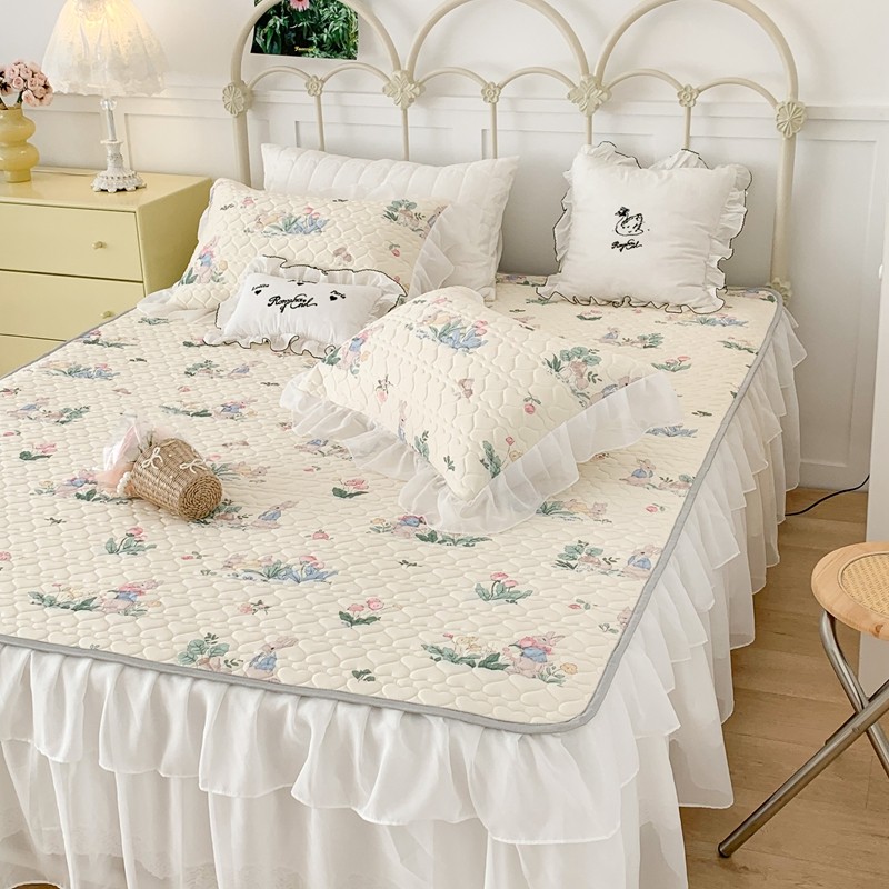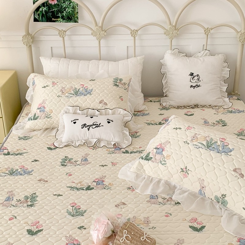昔可 2023新款第二批双层床裙乳胶三件套 可爱小清新风 花丛小兔