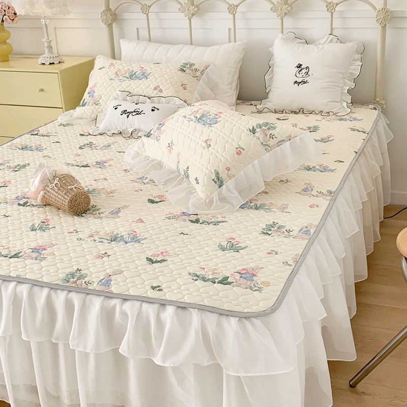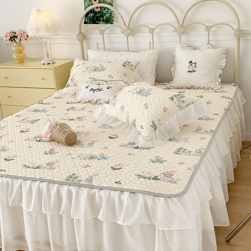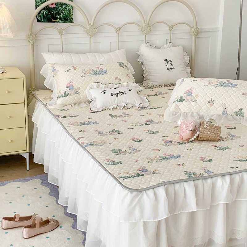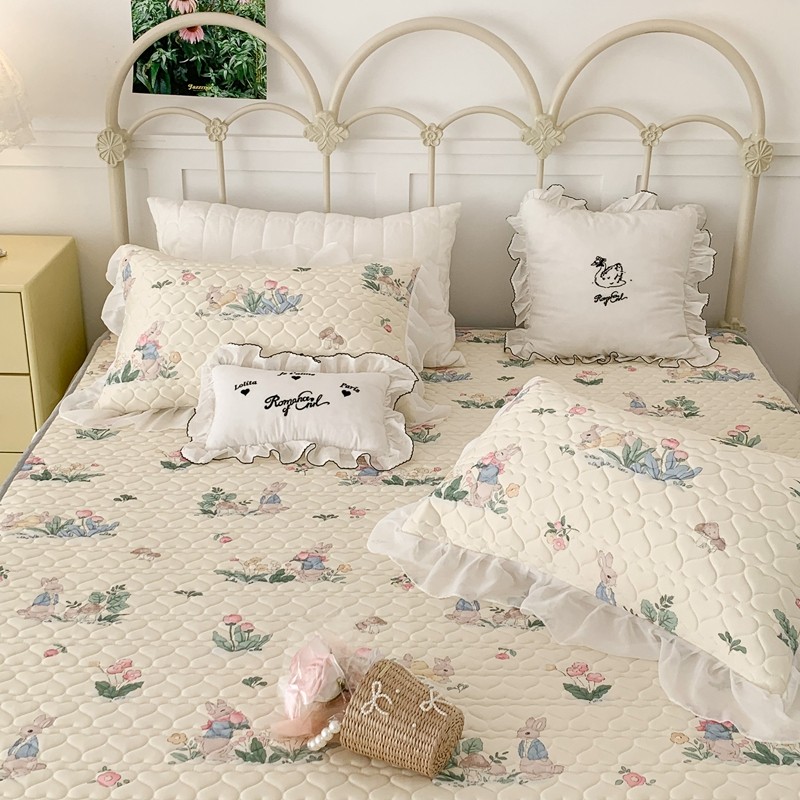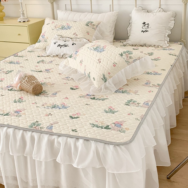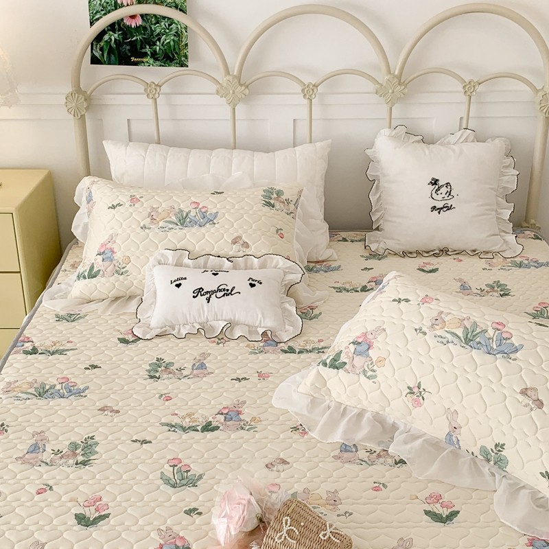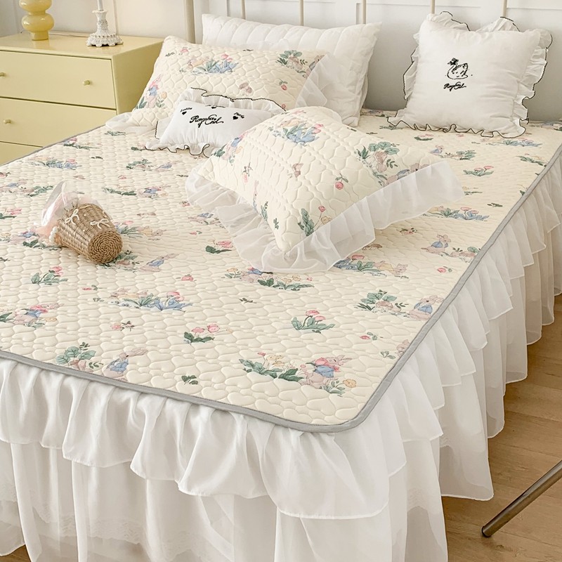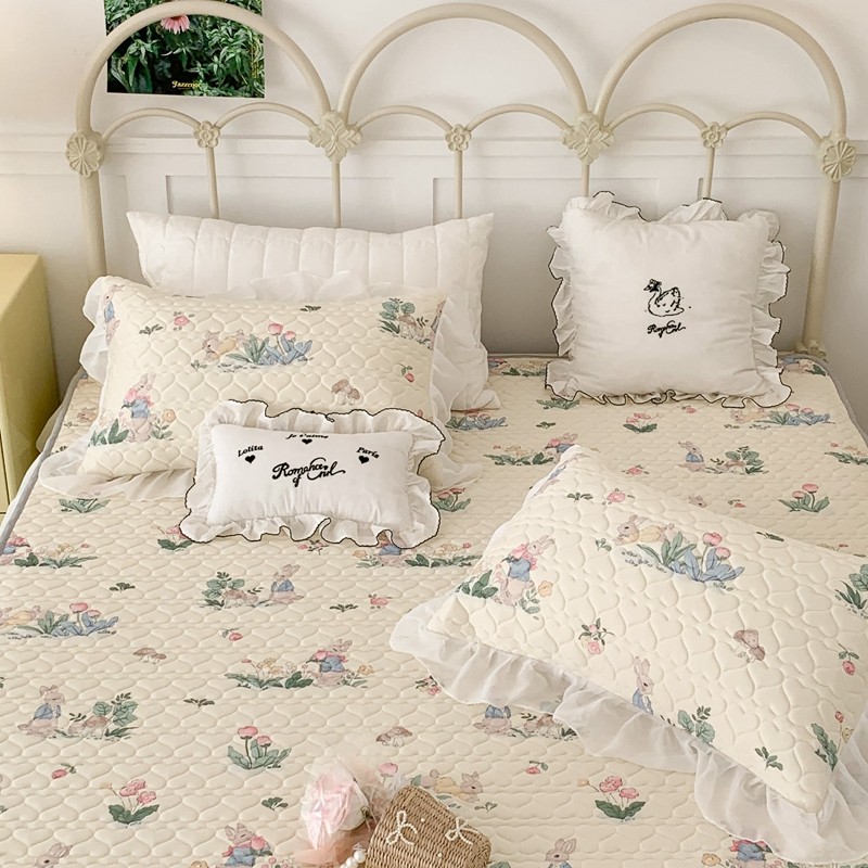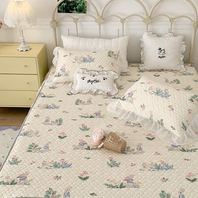 昔可 2023新款第二批双层床裙乳胶三件套 可爱小清新风 花丛小兔