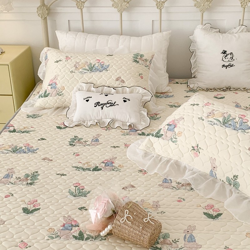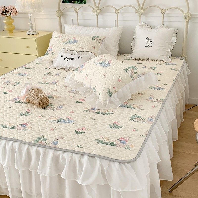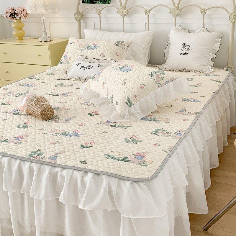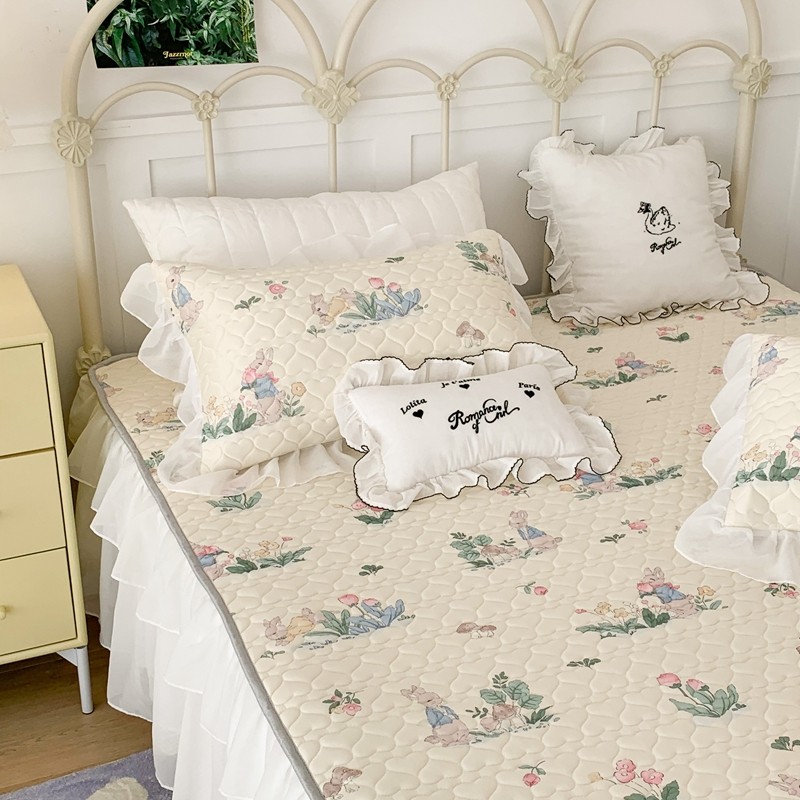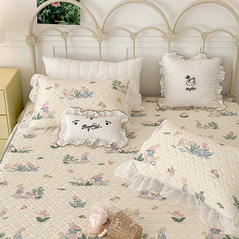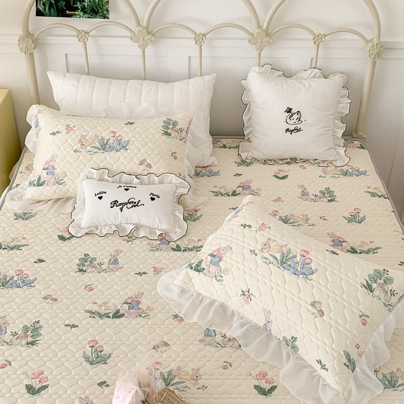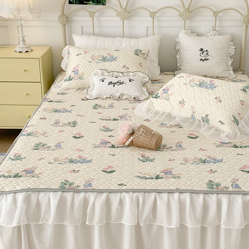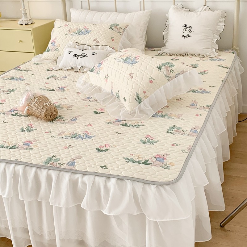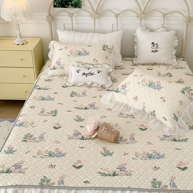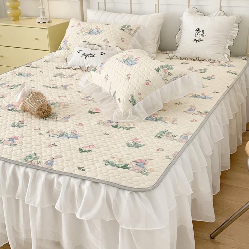 昔可 2023新款第二批双层床裙乳胶三件套 可爱小清新风 花丛小兔