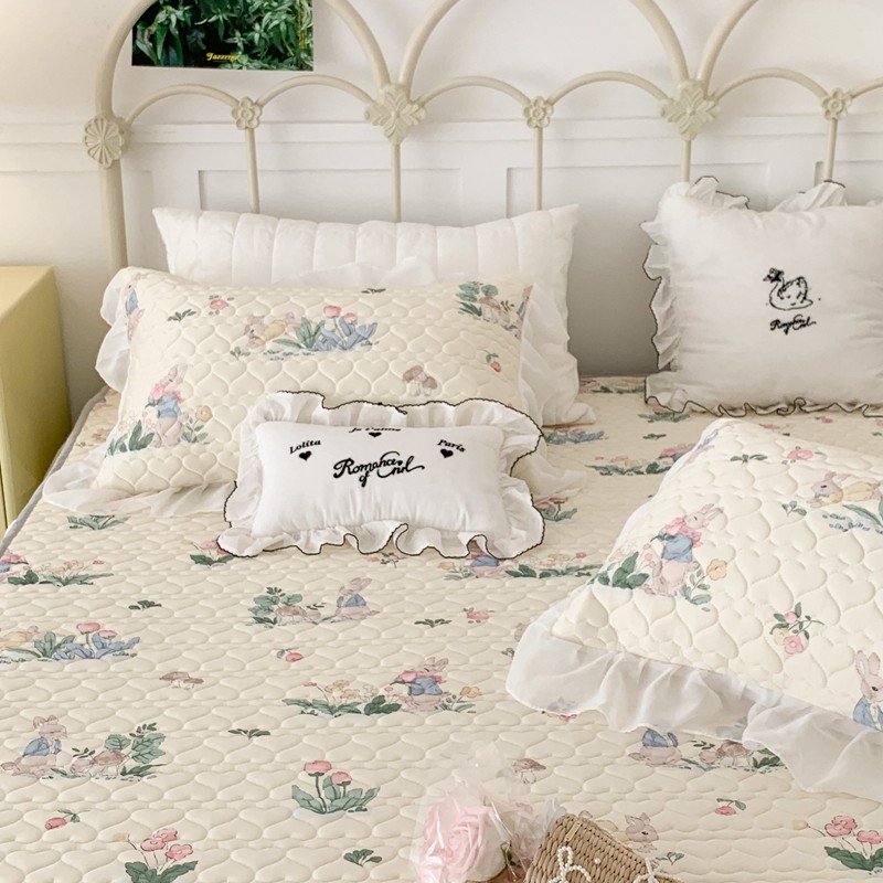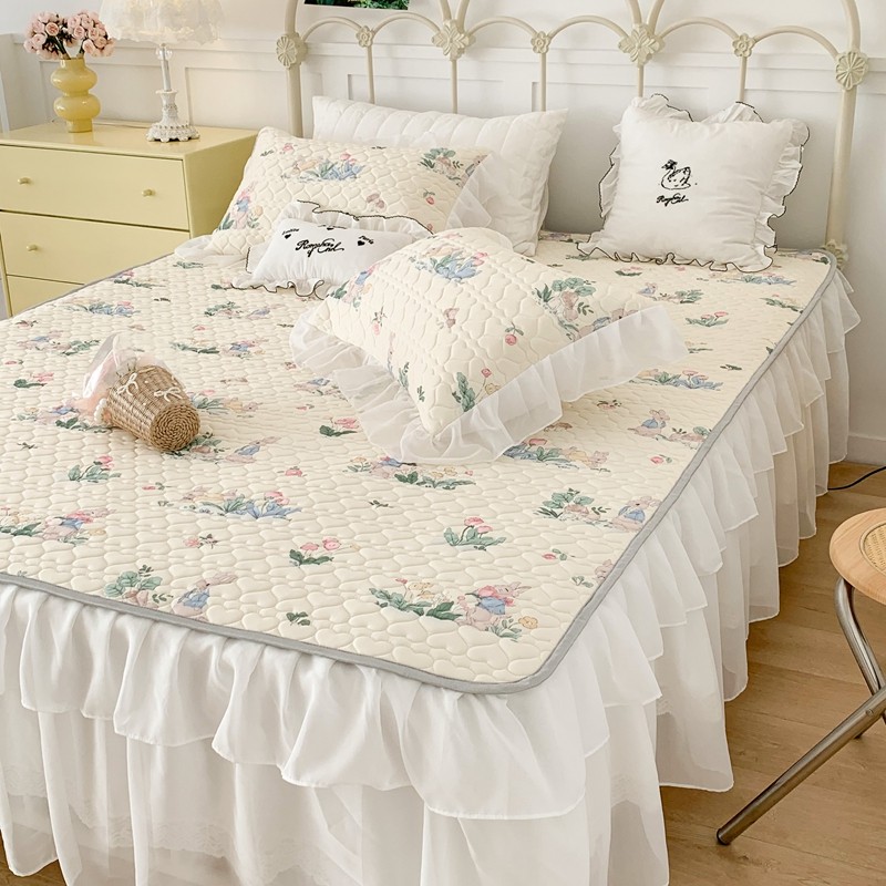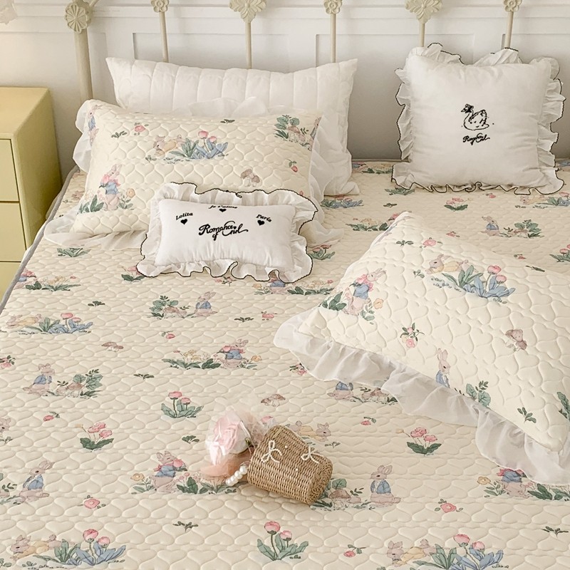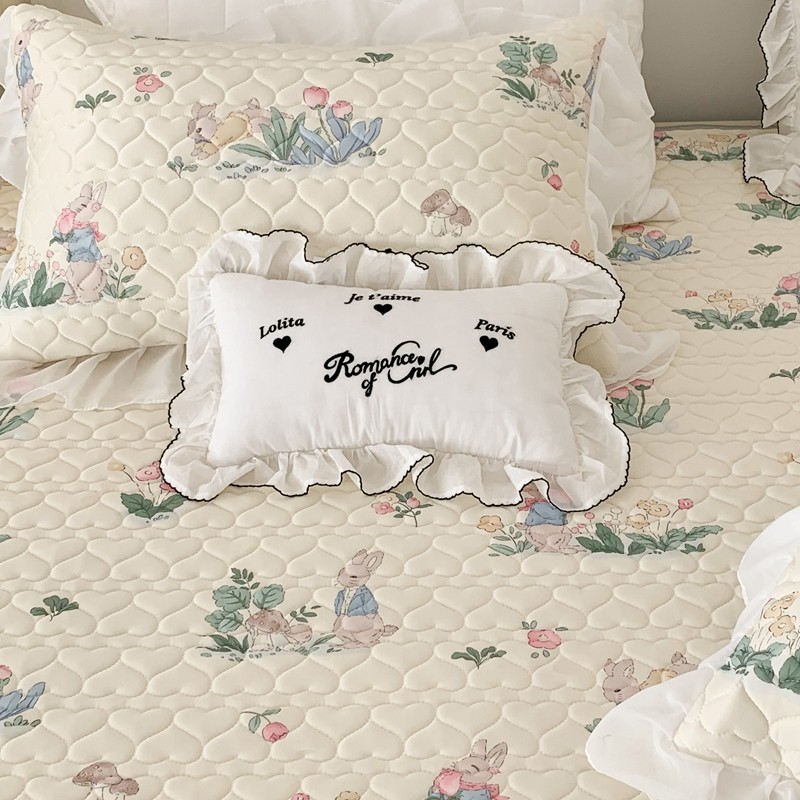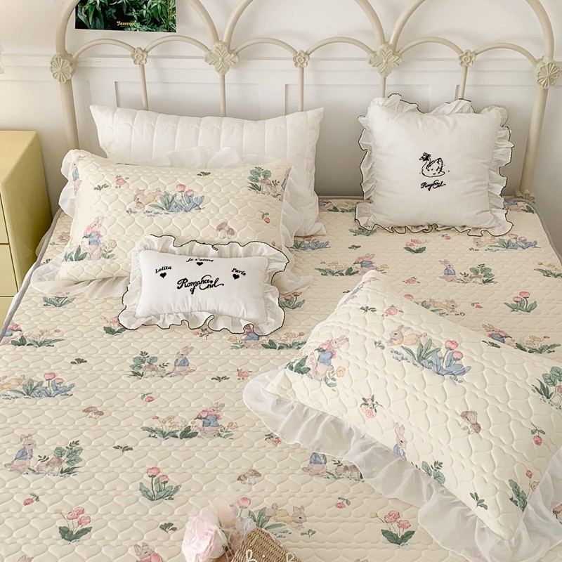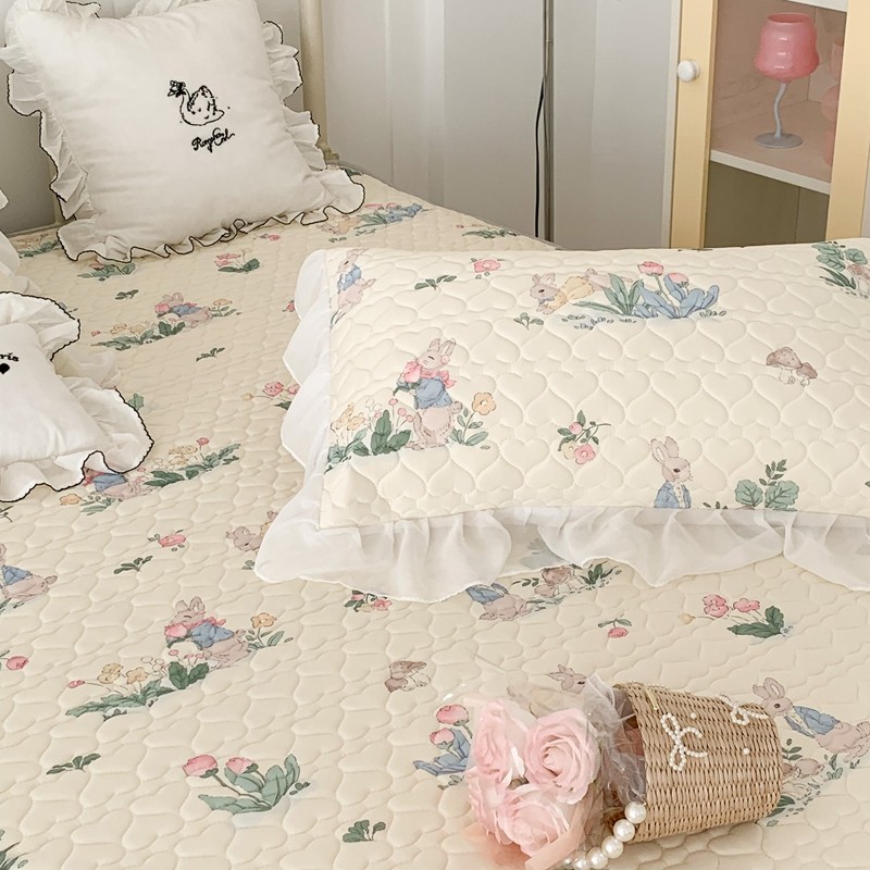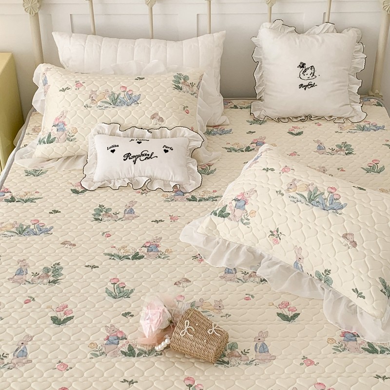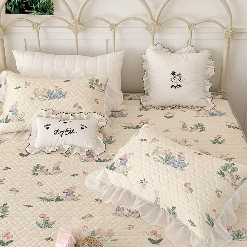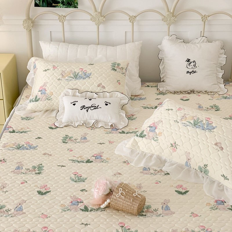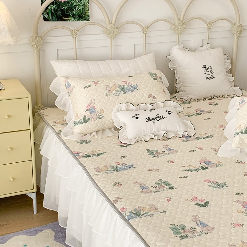 昔可 2023新款第二批双层床裙乳胶三件套 可爱小清新风 花丛小兔