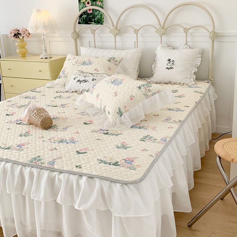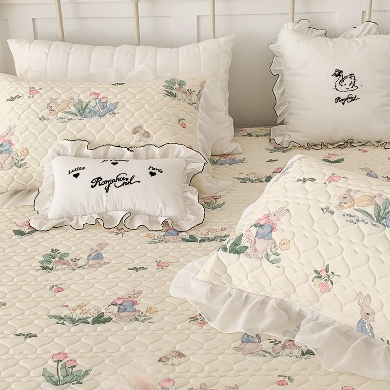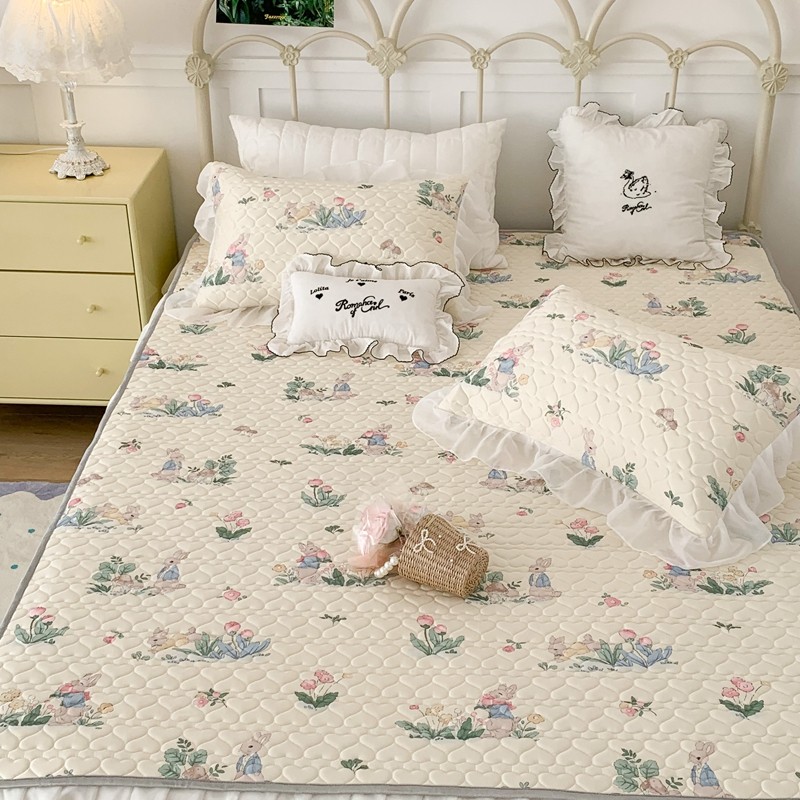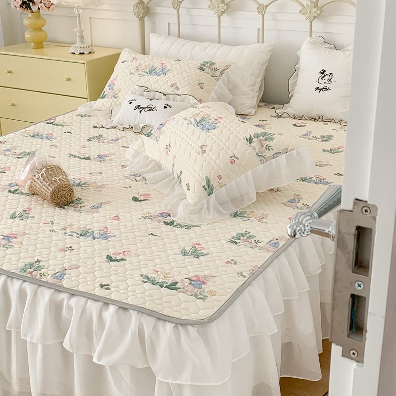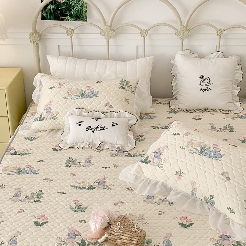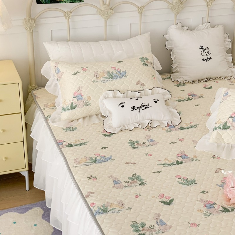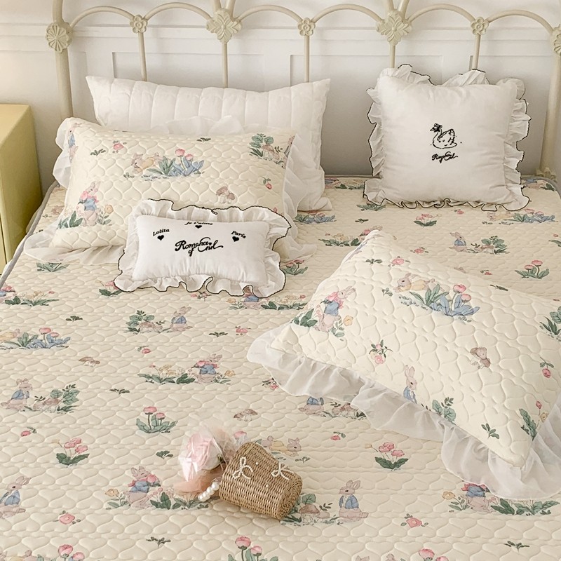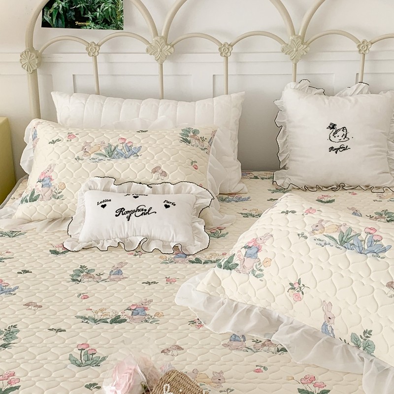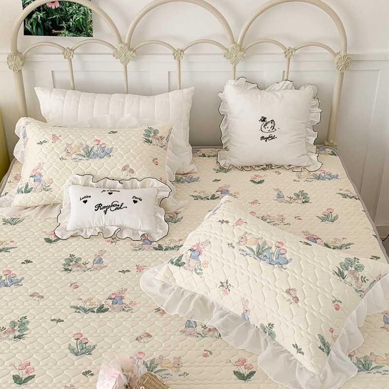 昔可 2023新款第二批双层床裙乳胶三件套 可爱小清新风 花丛小兔