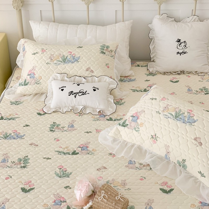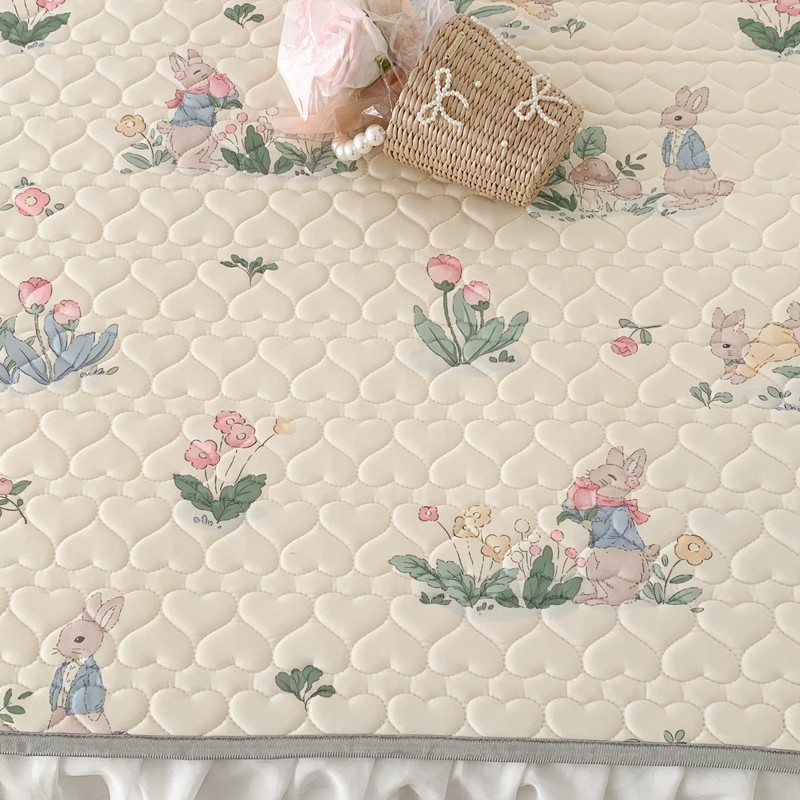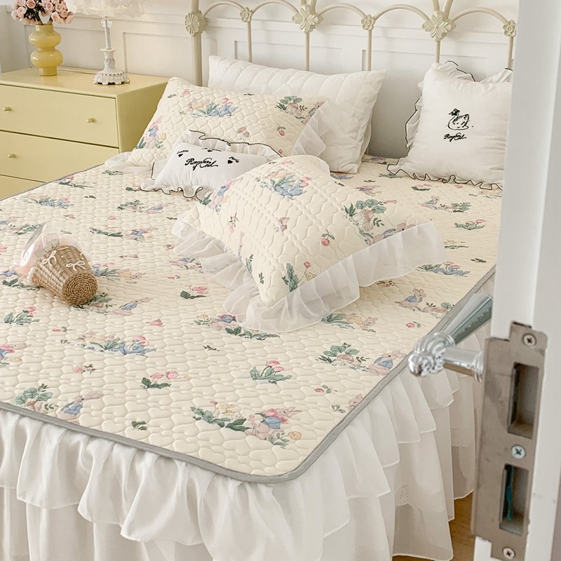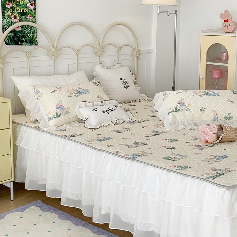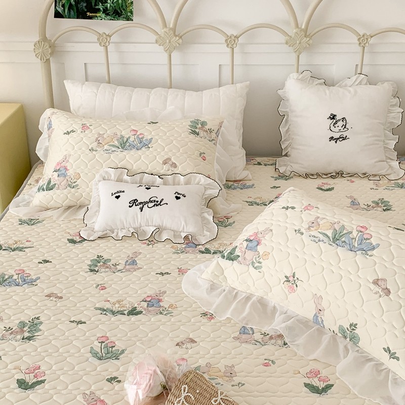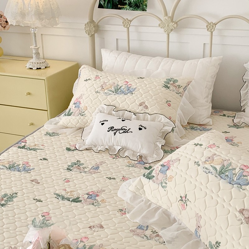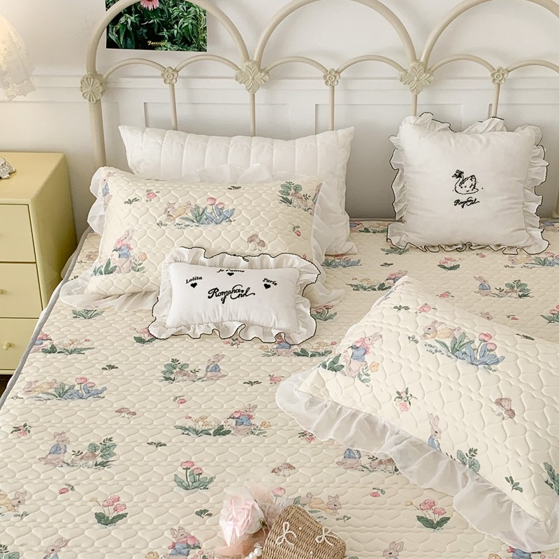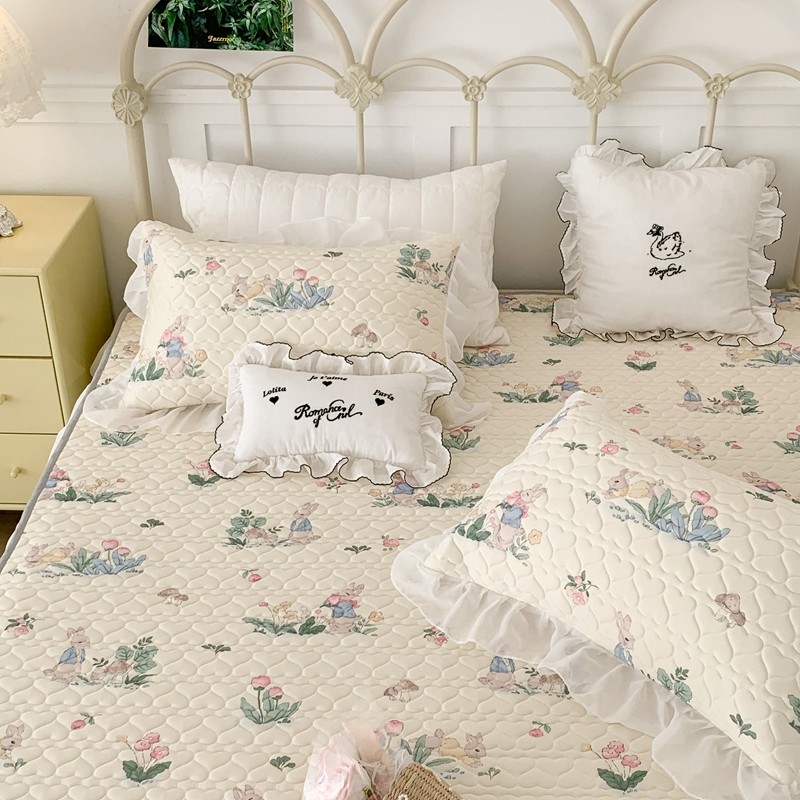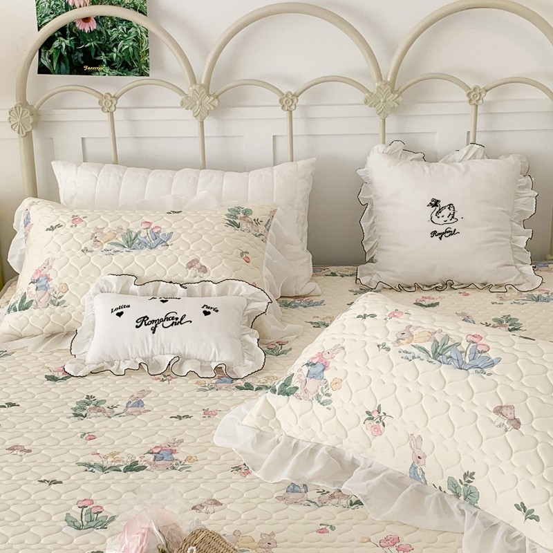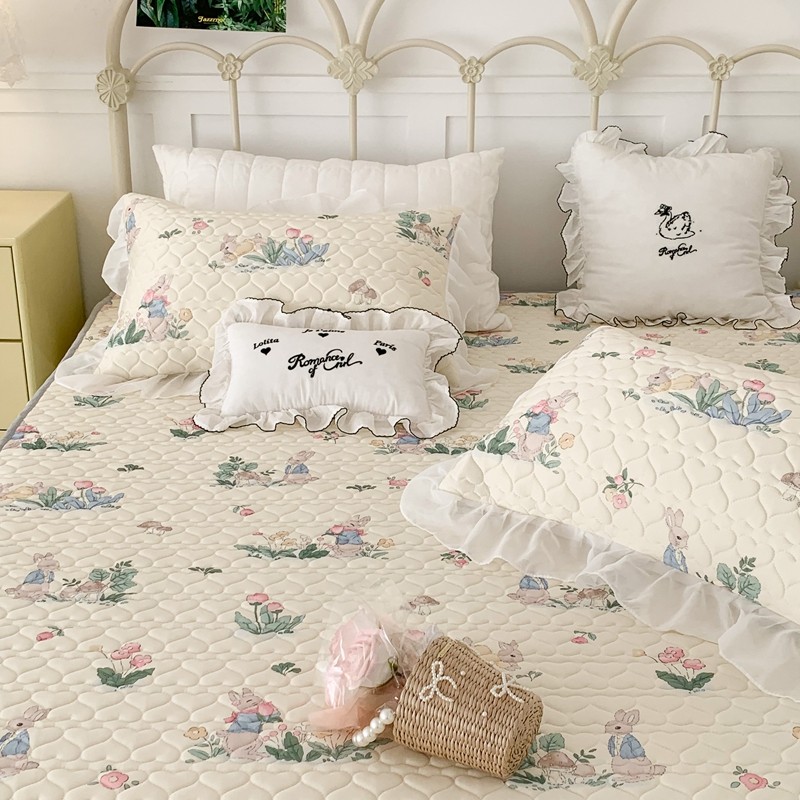 昔可 2023新款第二批双层床裙乳胶三件套 可爱小清新风 花丛小兔