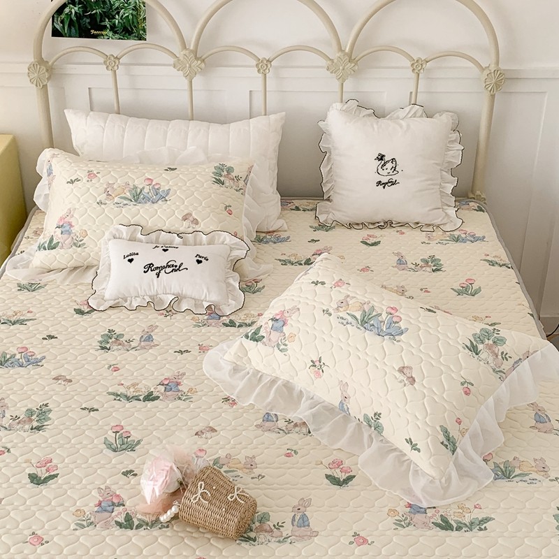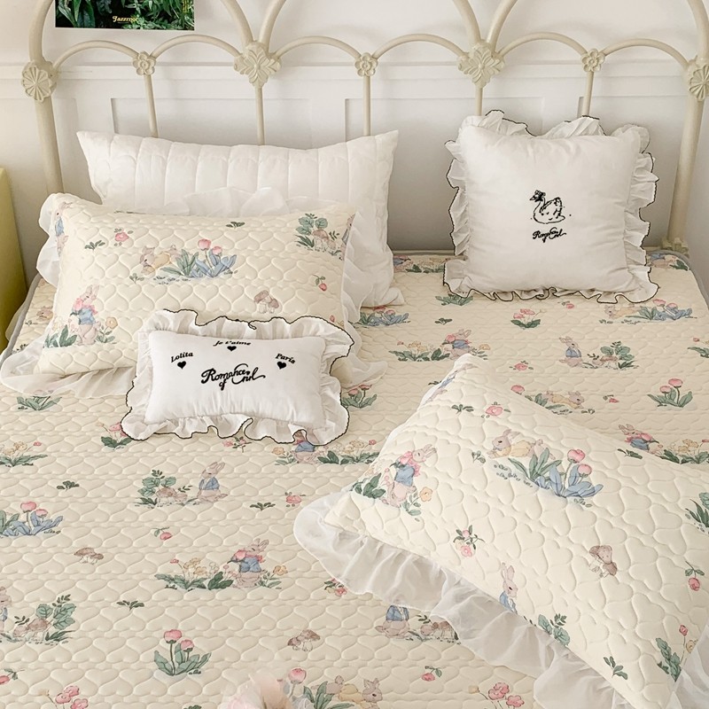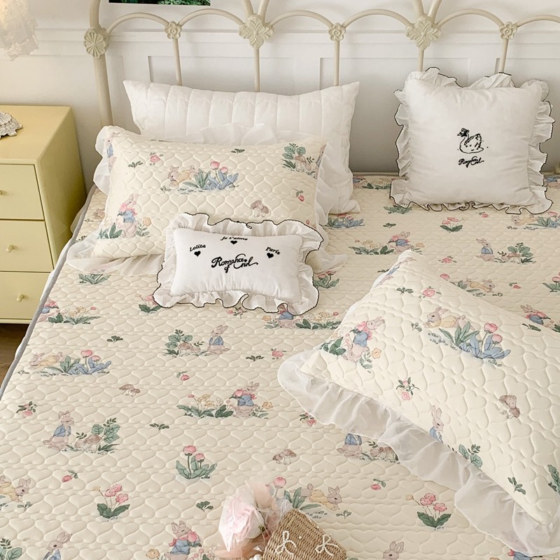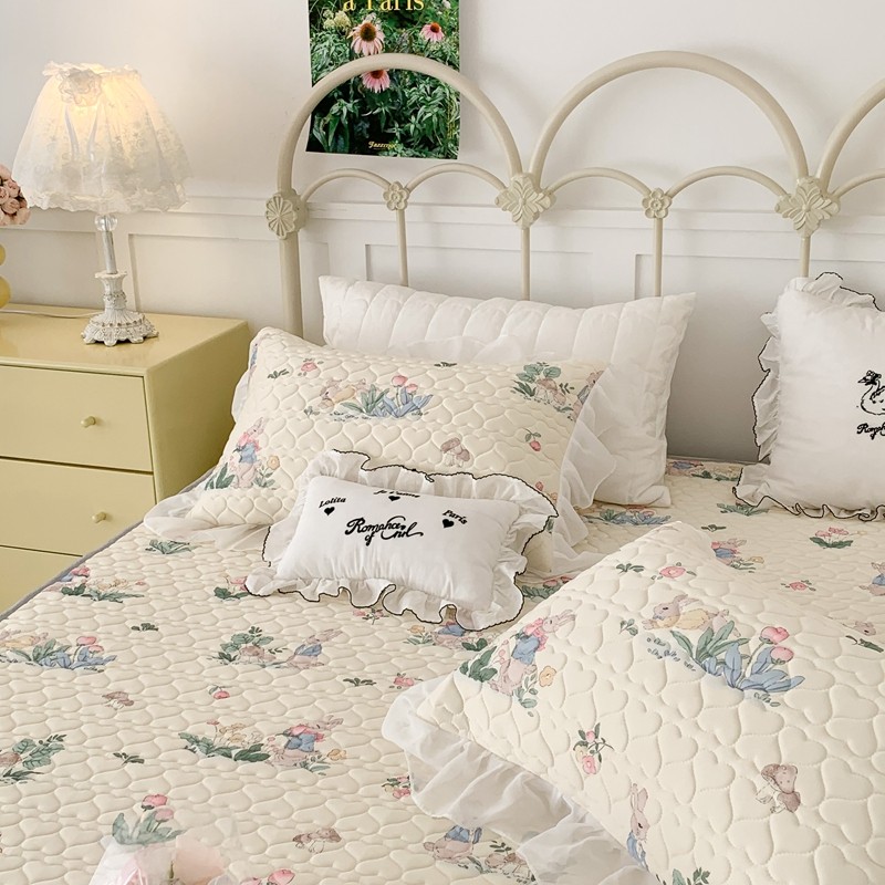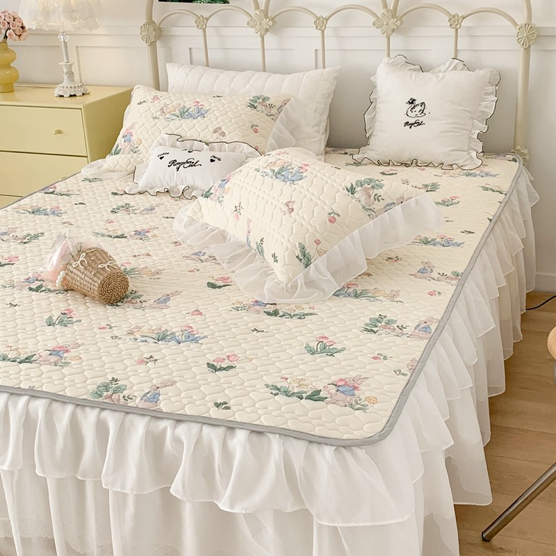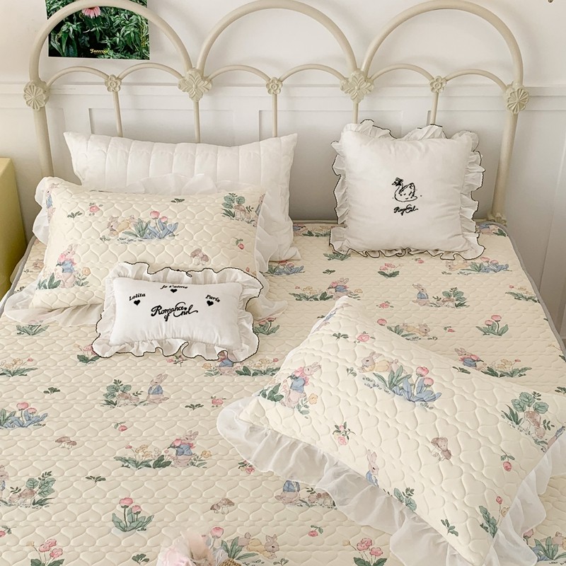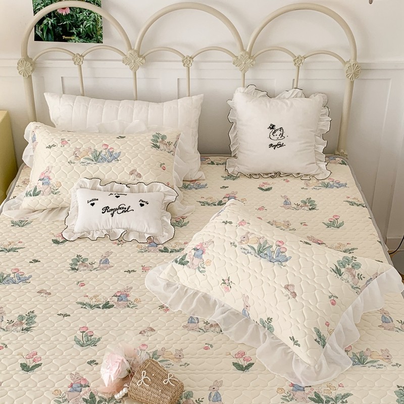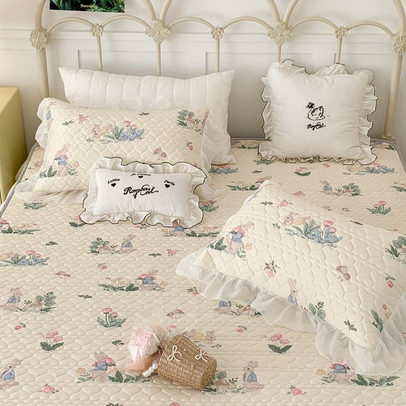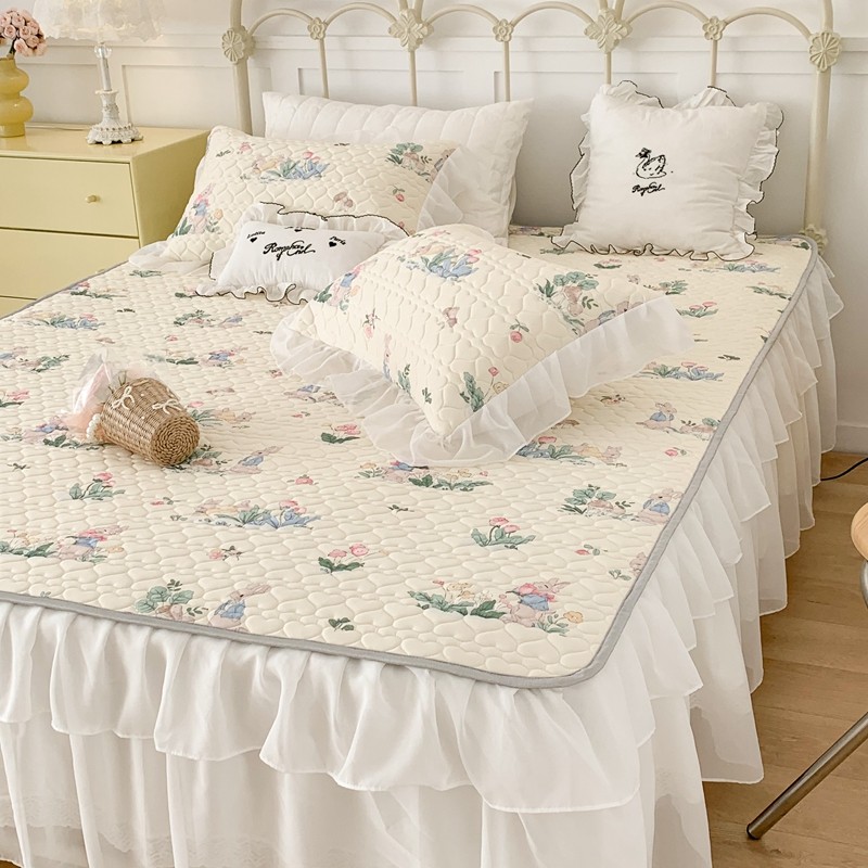 昔可 2023新款第二批双层床裙乳胶三件套 可爱小清新风 花丛小兔