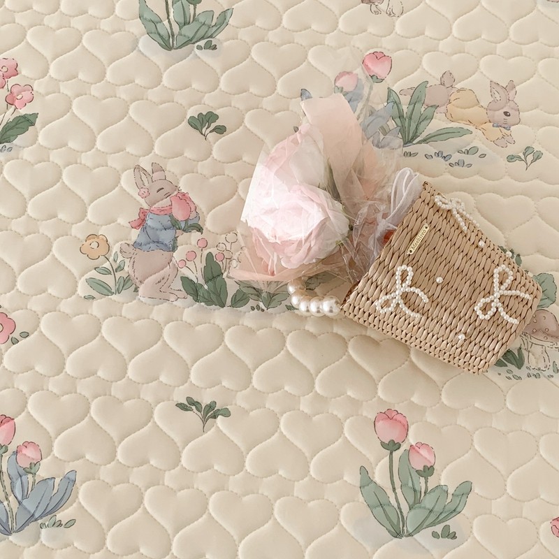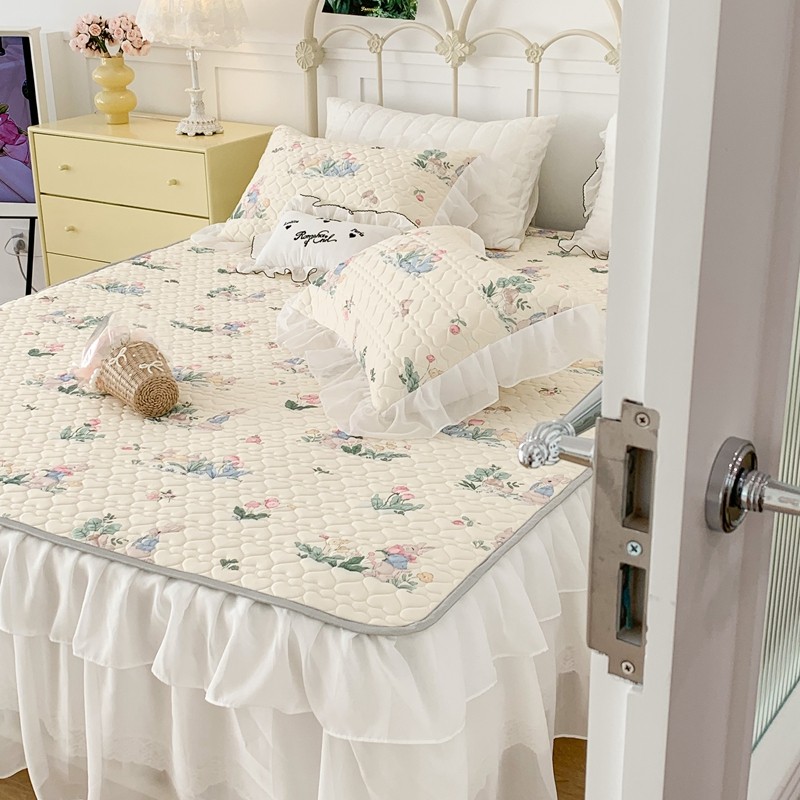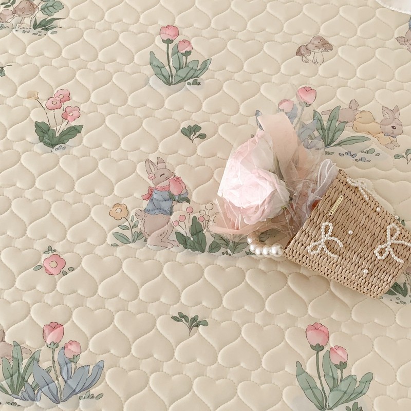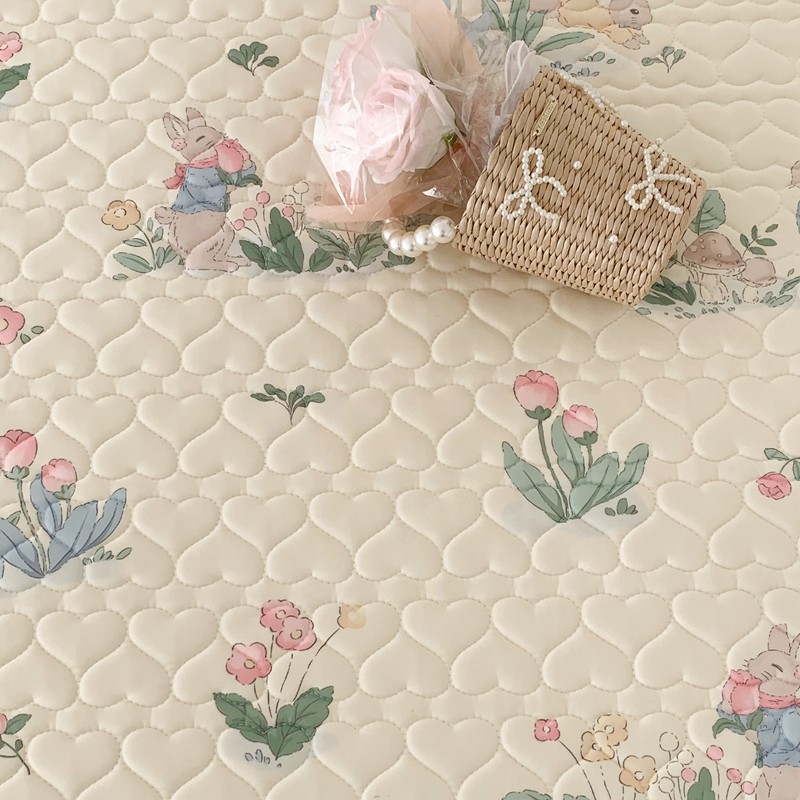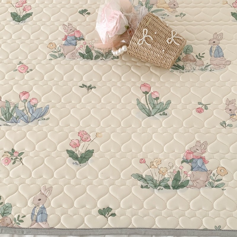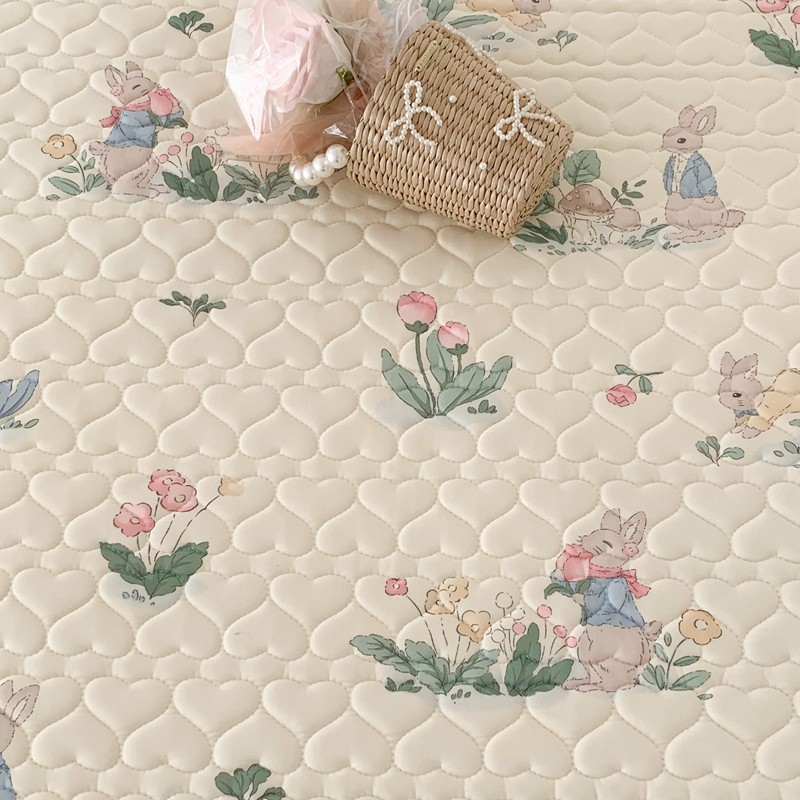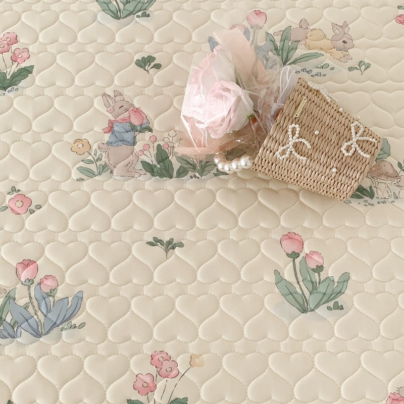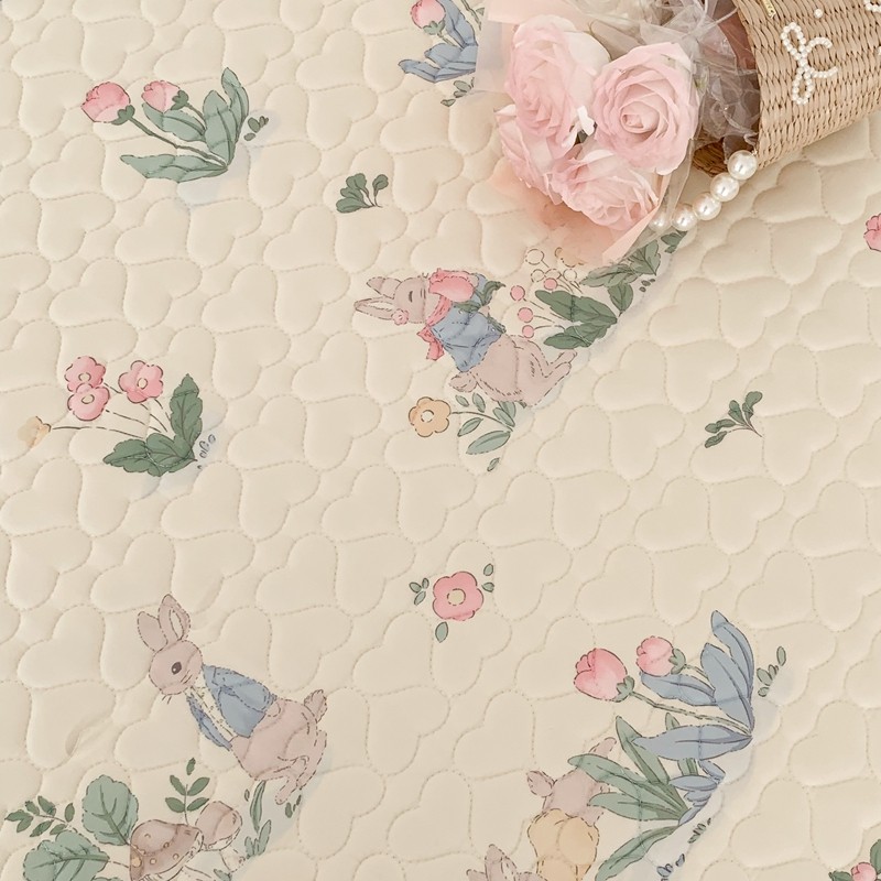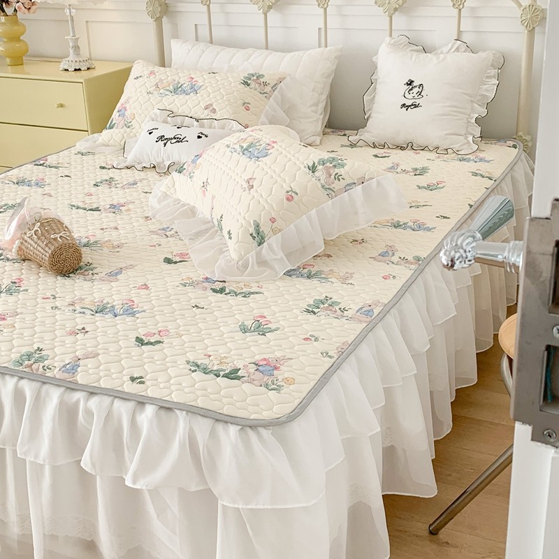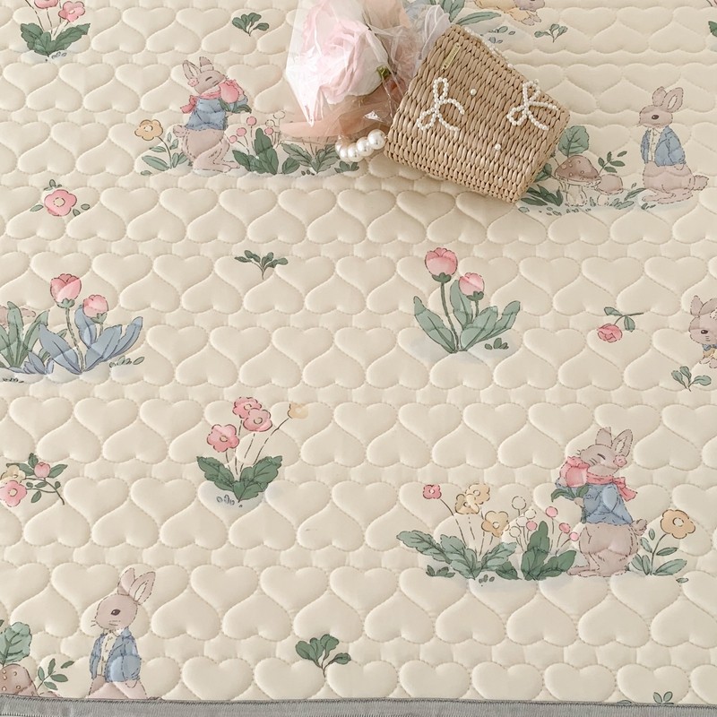 昔可 2023新款第二批双层床裙乳胶三件套 可爱小清新风 花丛小兔