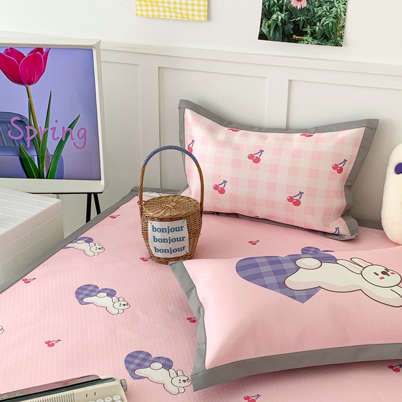 昔可 2023新款凉感海洋丝针织软席三件套 紫爱心兔