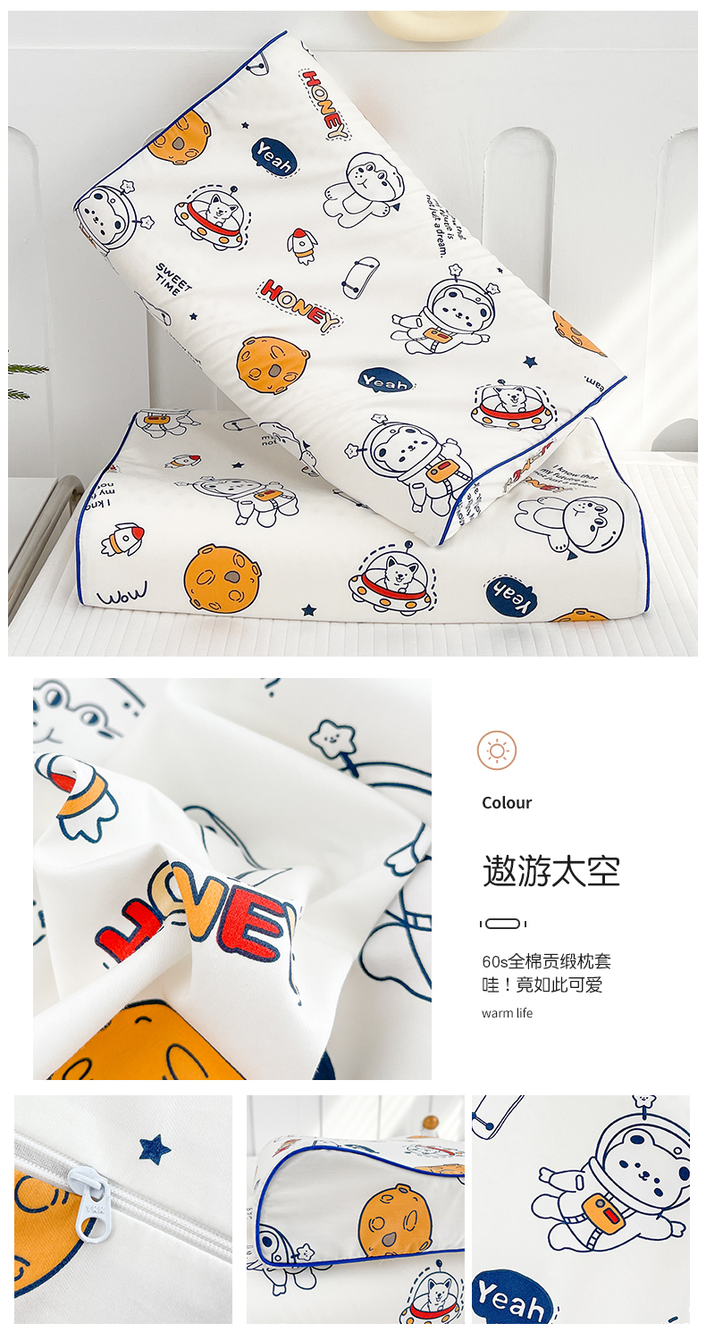 商品名称:良佐生活 2023新款A类60支全棉贡缎乳胶枕枕套 遨游太空