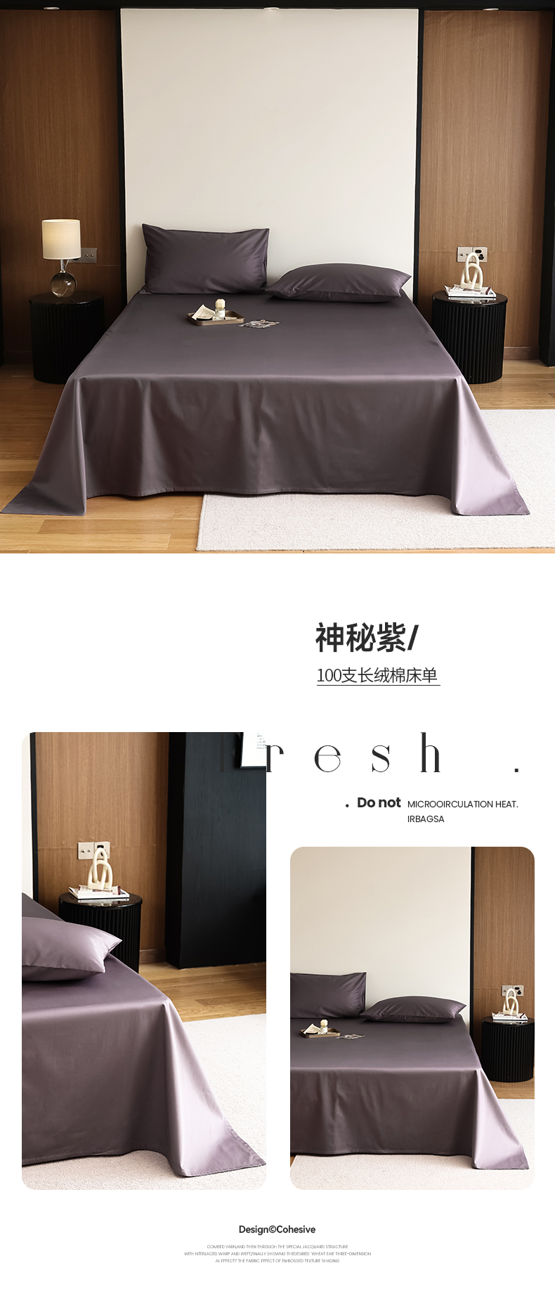 商品名称:寐眠 2023新款100支纯棉长绒棉单床单 神秘紫【床单】