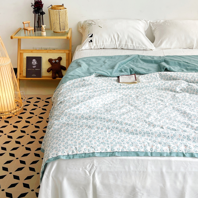 蓝庭云小棉天丝棉凉感小清新夏凉被卡通可机洗亲肤空调被双人被 翠果果,翠果果