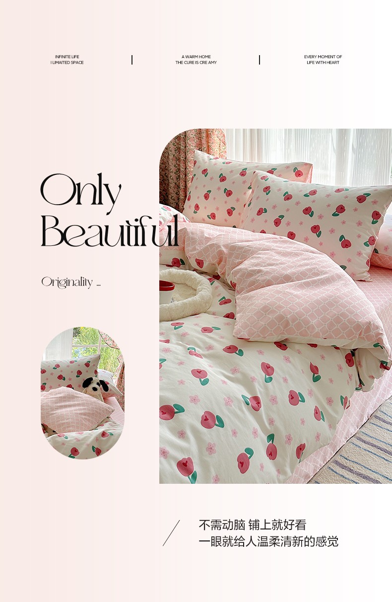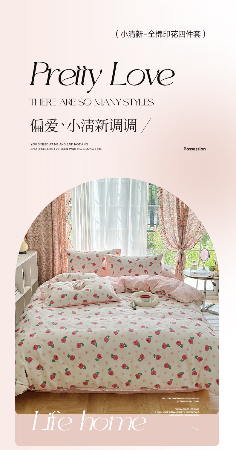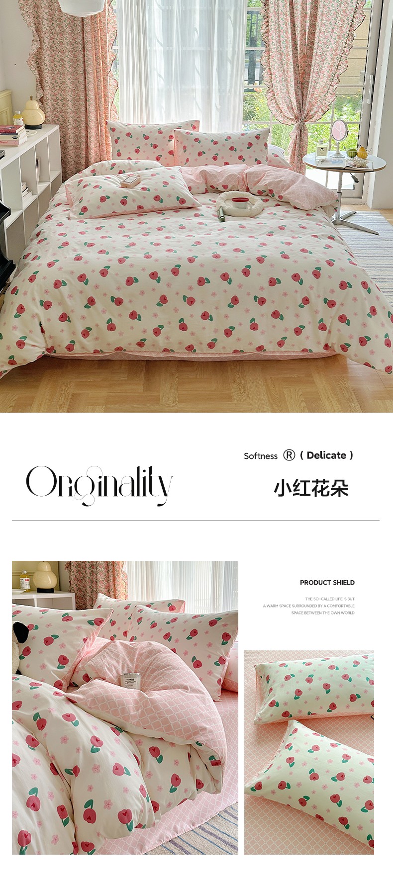 商品名称:雅居纺 2023新款13070全棉印花四件套 小红花朵