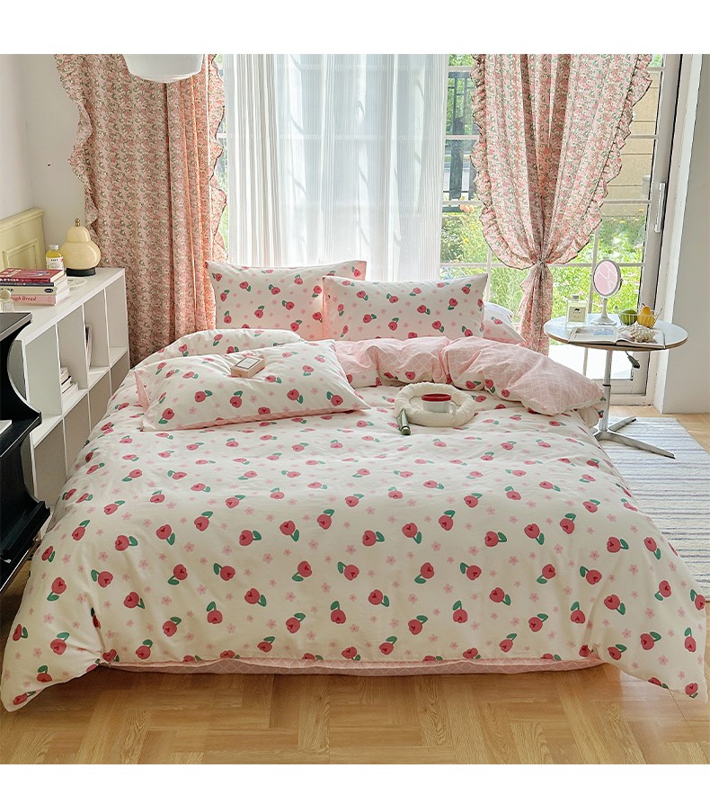 雅居纺 2023新款13070全棉印花四件套 小红花朵