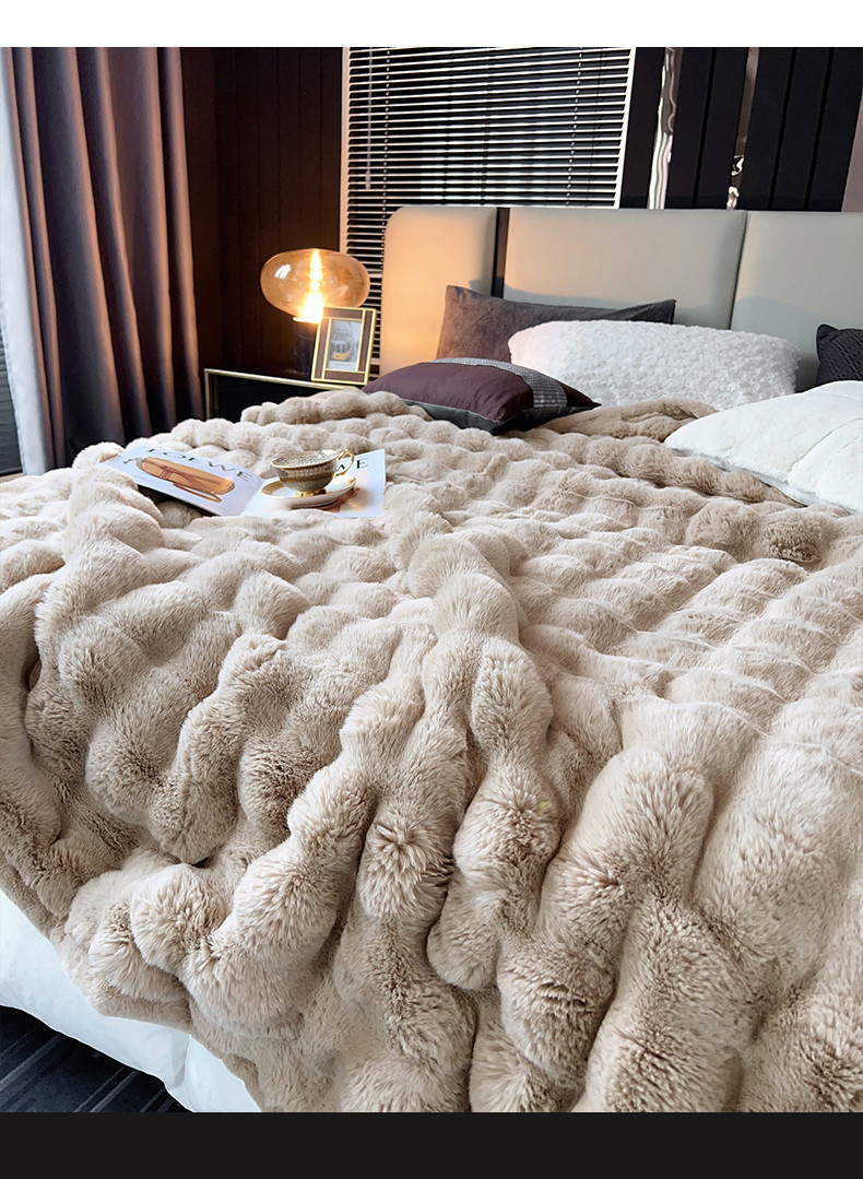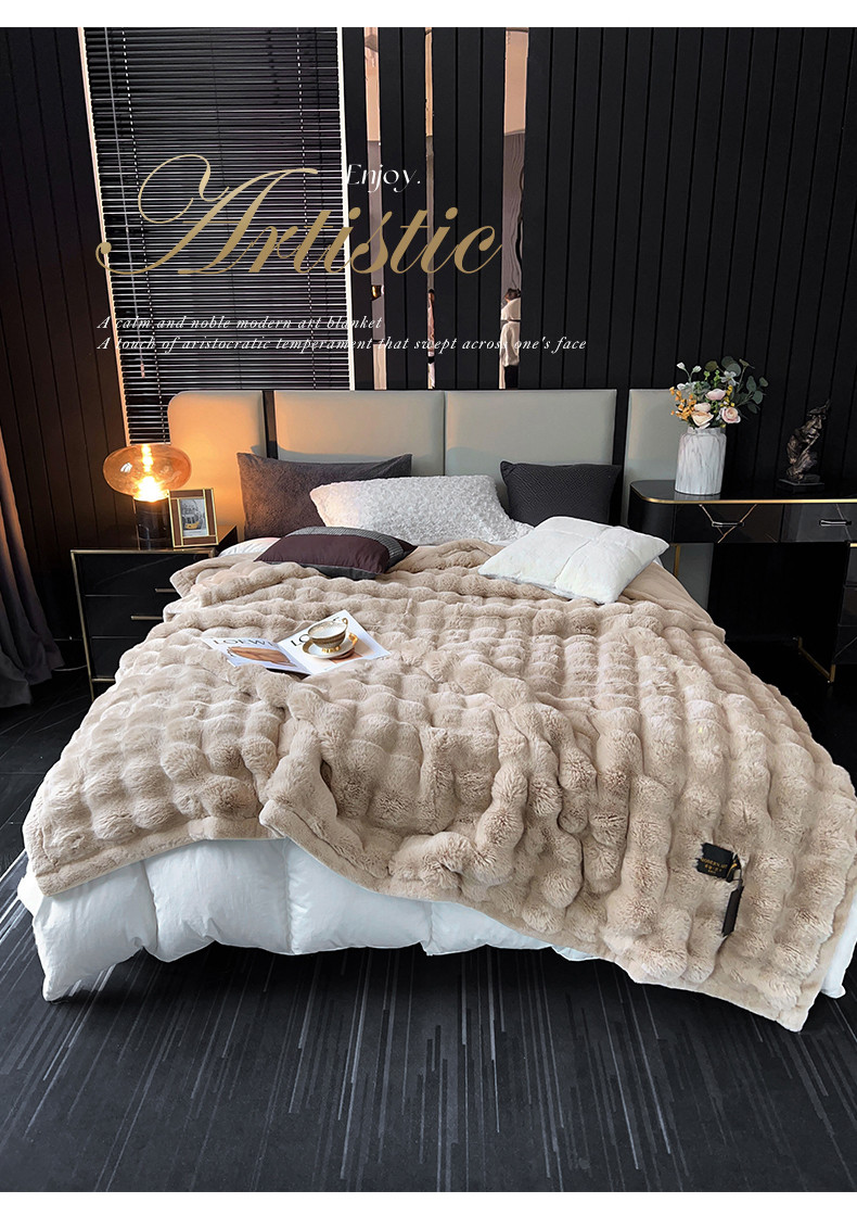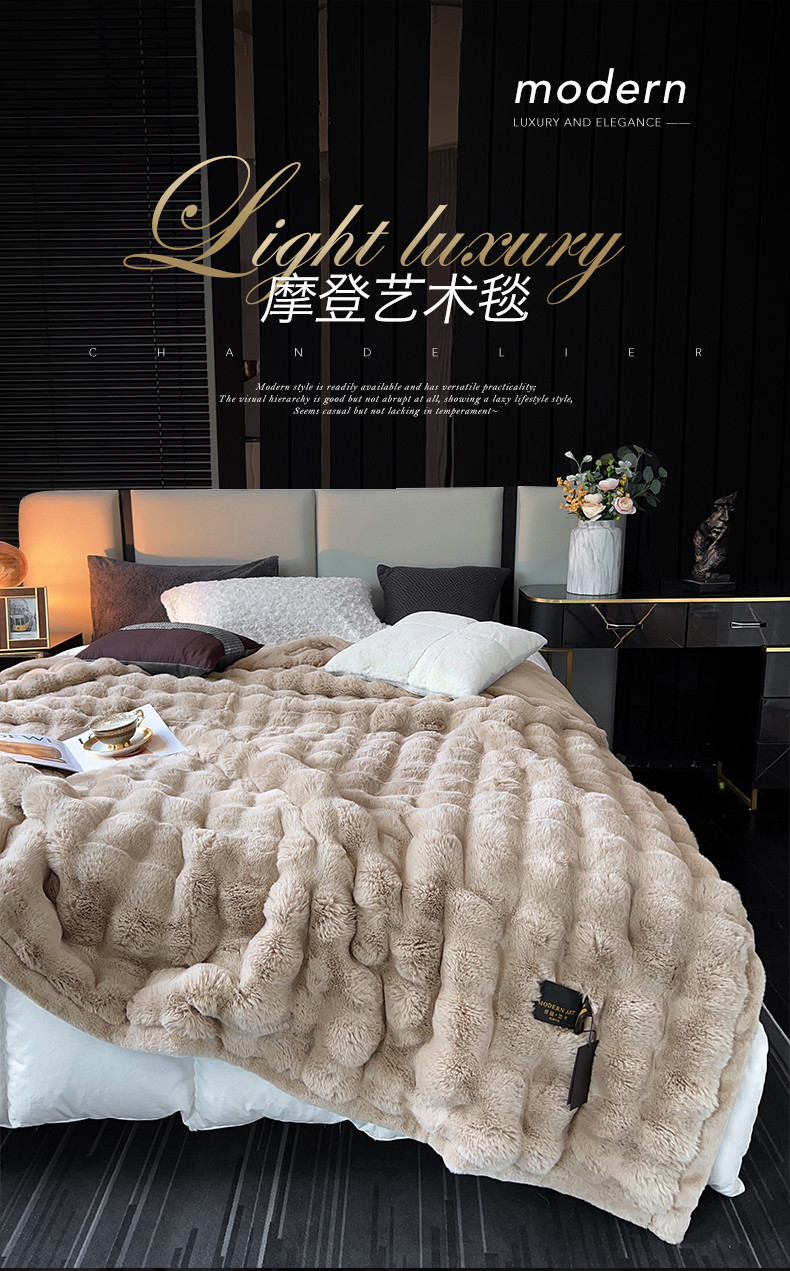 商品名称:凯轩毛毛毯毯子 2024新款仿皮草摩登艺术毛毯毯子 驼色