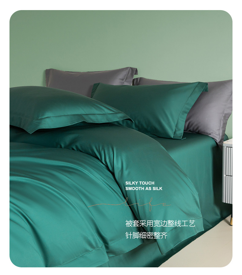 商品名称:艾佳 2025新款50s长绒棉纯色四件套 墨绿