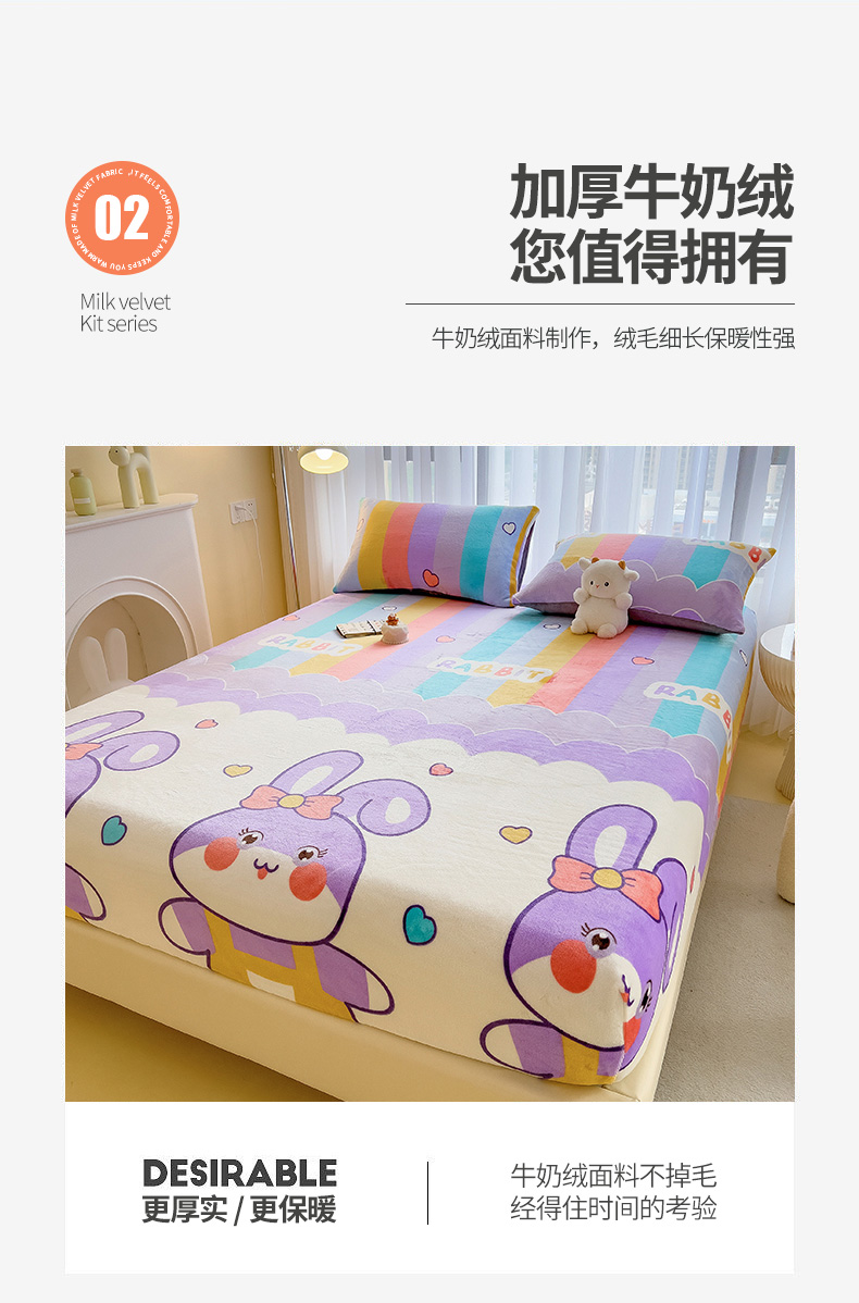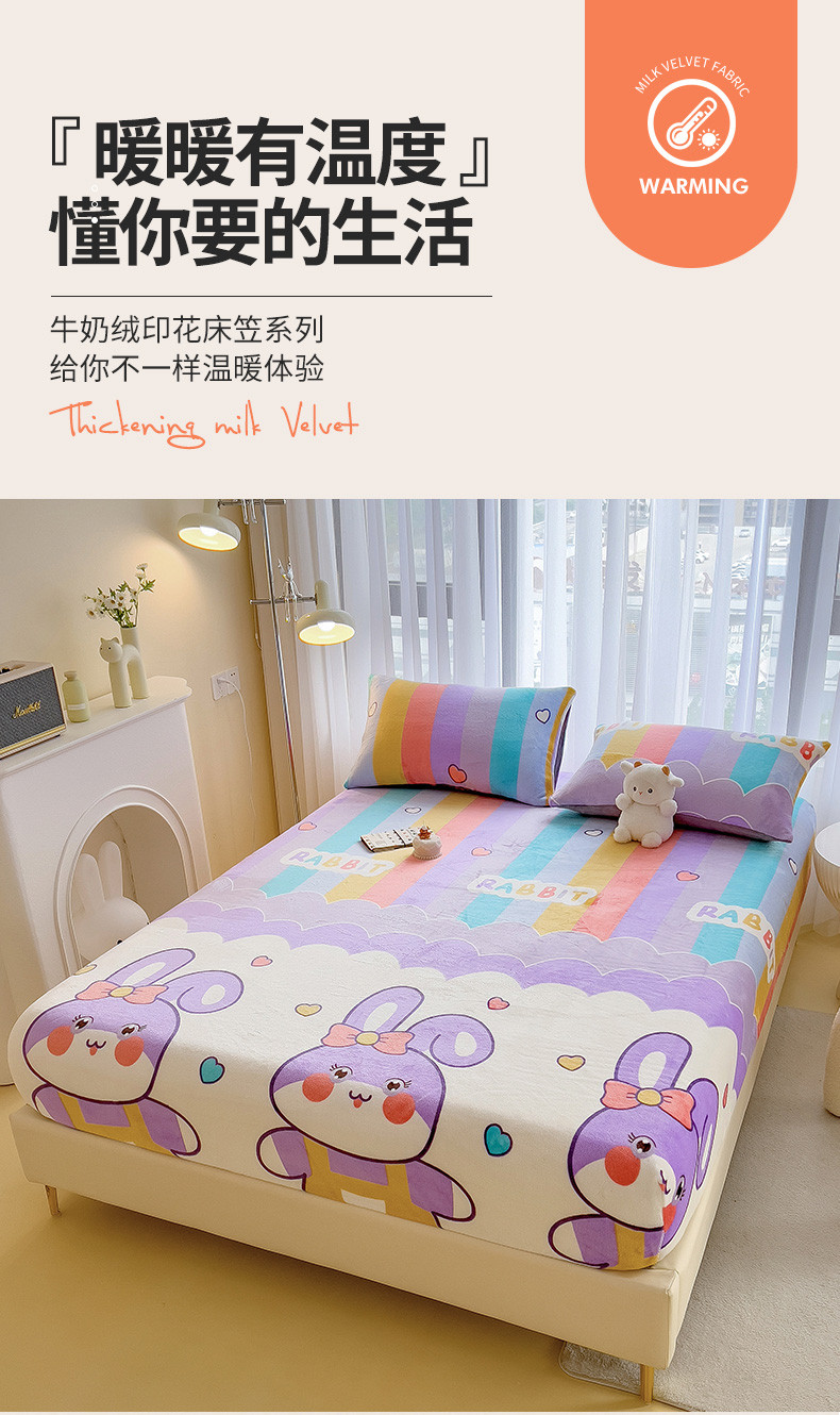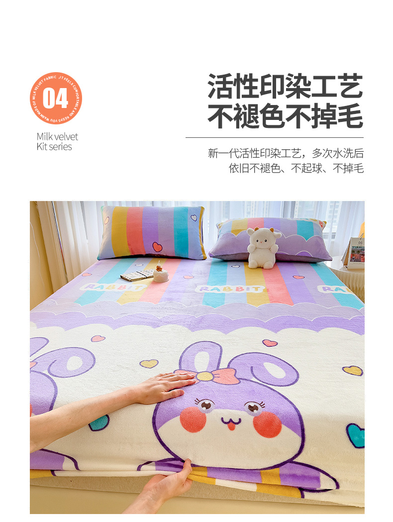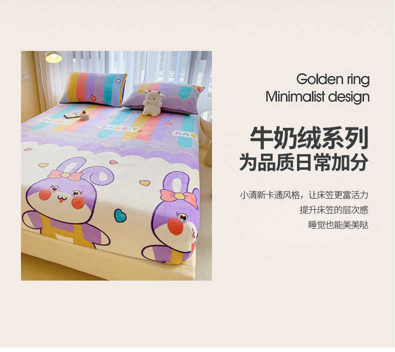 • 91家纺网 家纺一手货源 找家纺 芃成家纺 2023新款牛奶绒印花床笠 可爱兔
