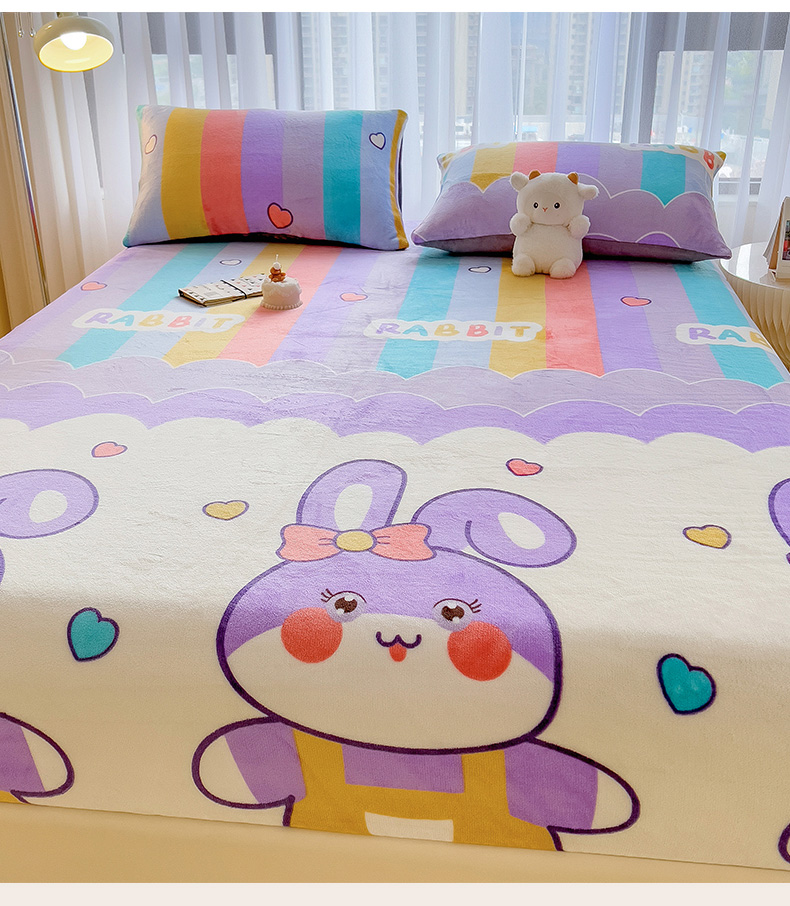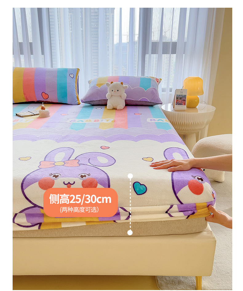 芃成家纺 2023新款牛奶绒印花床笠 可爱兔